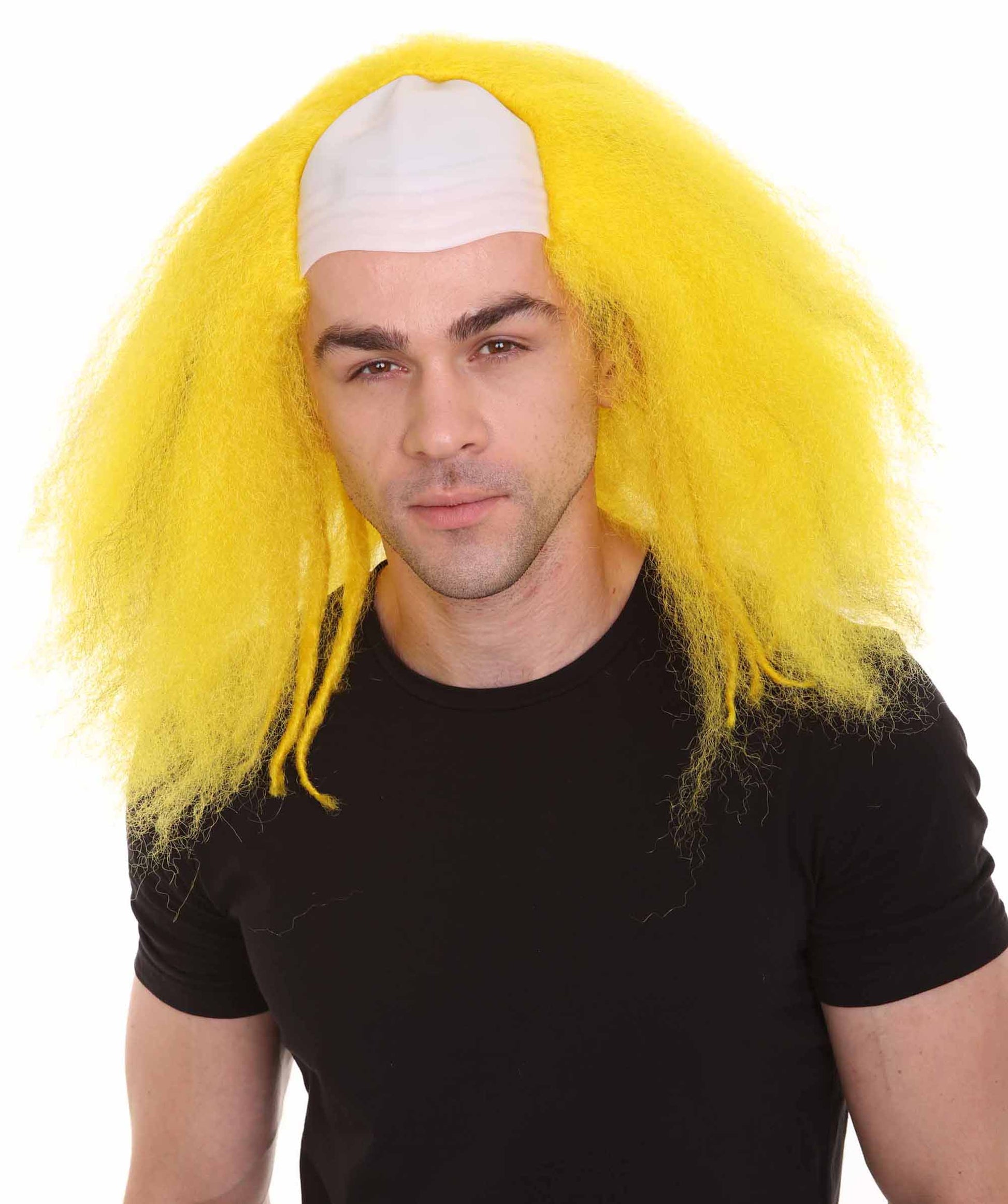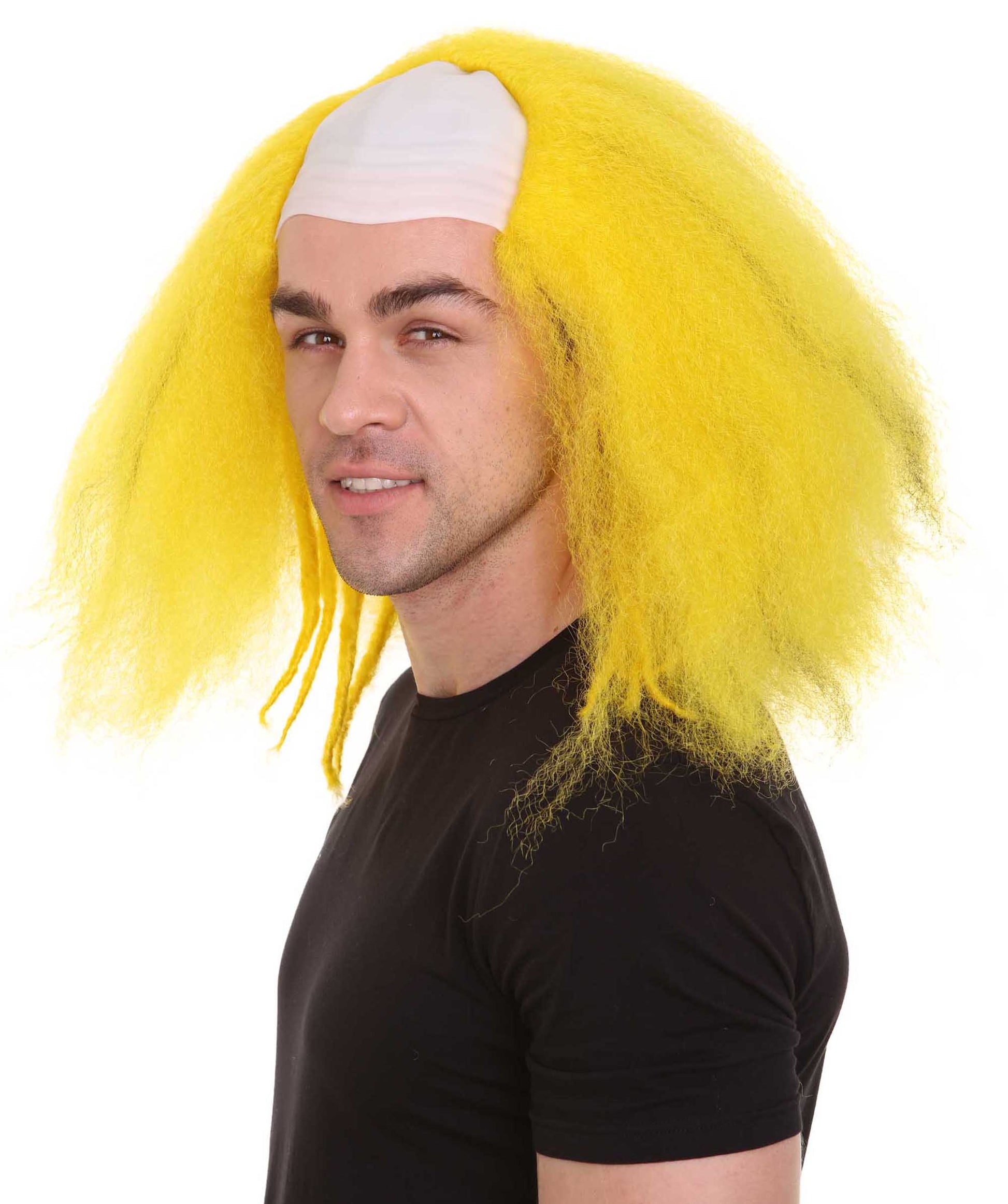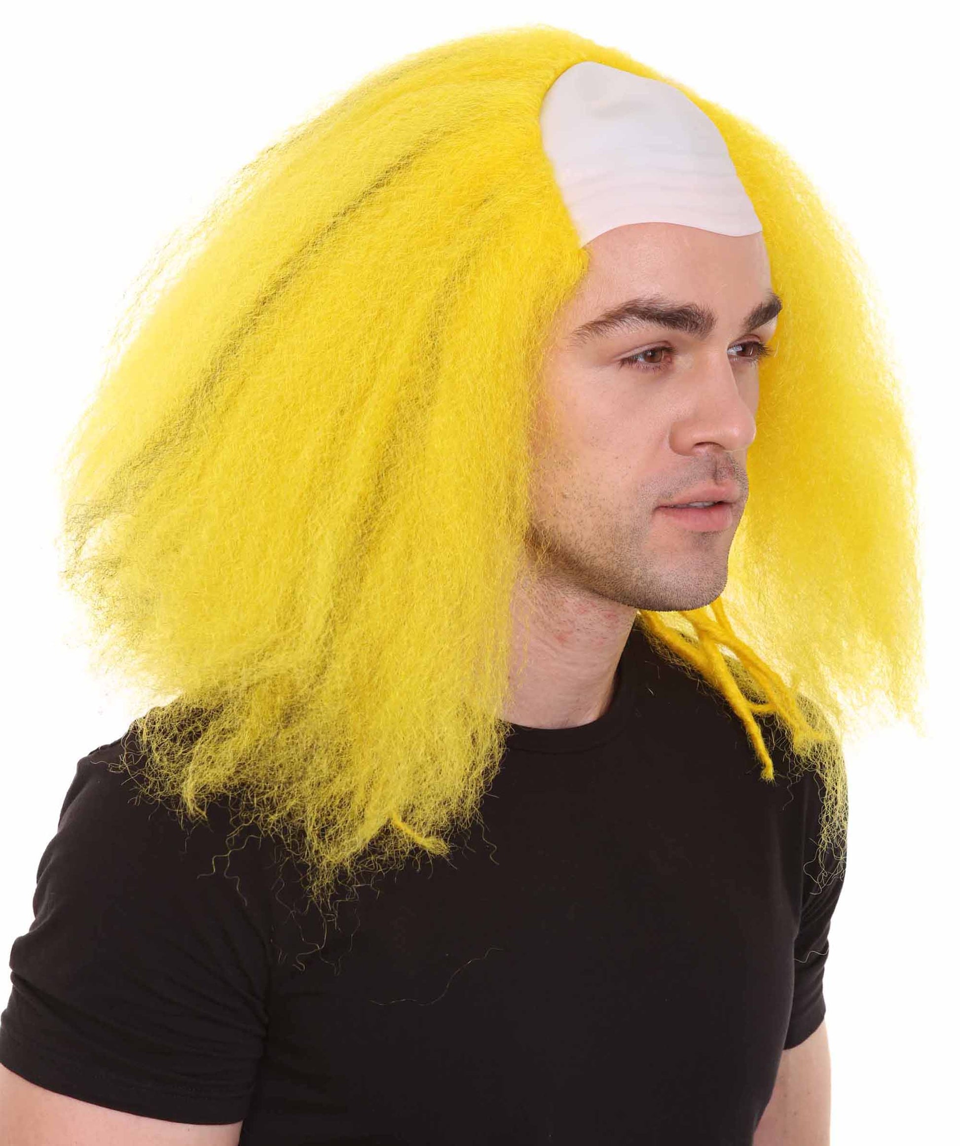 ハロウィーンパーティープレミアムメンズH-3627イエローボールドクラウンウィッグ