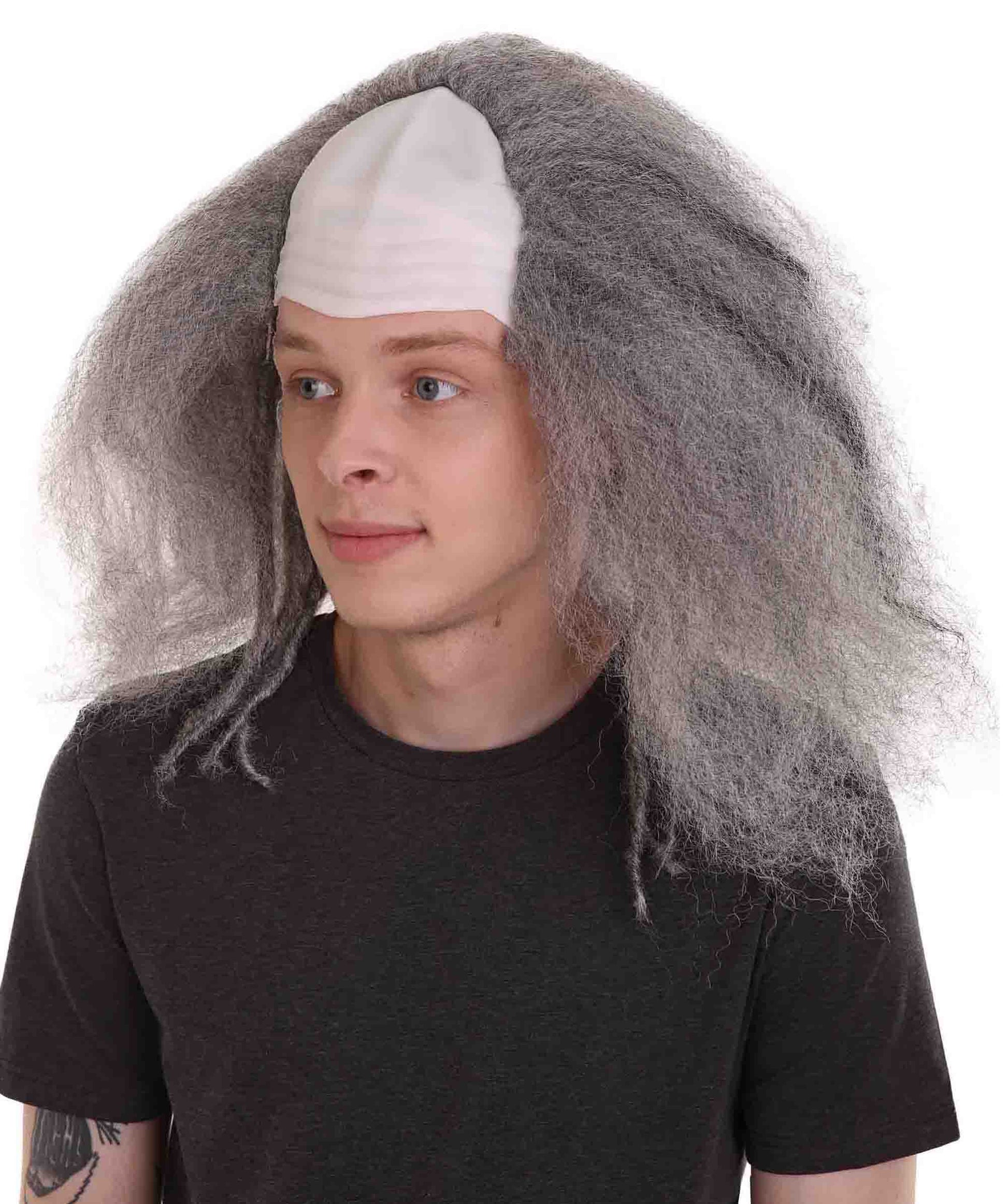 ハロウィーンパーティープレミアムメンズH-3629グレーボールドクラウンウィッグ