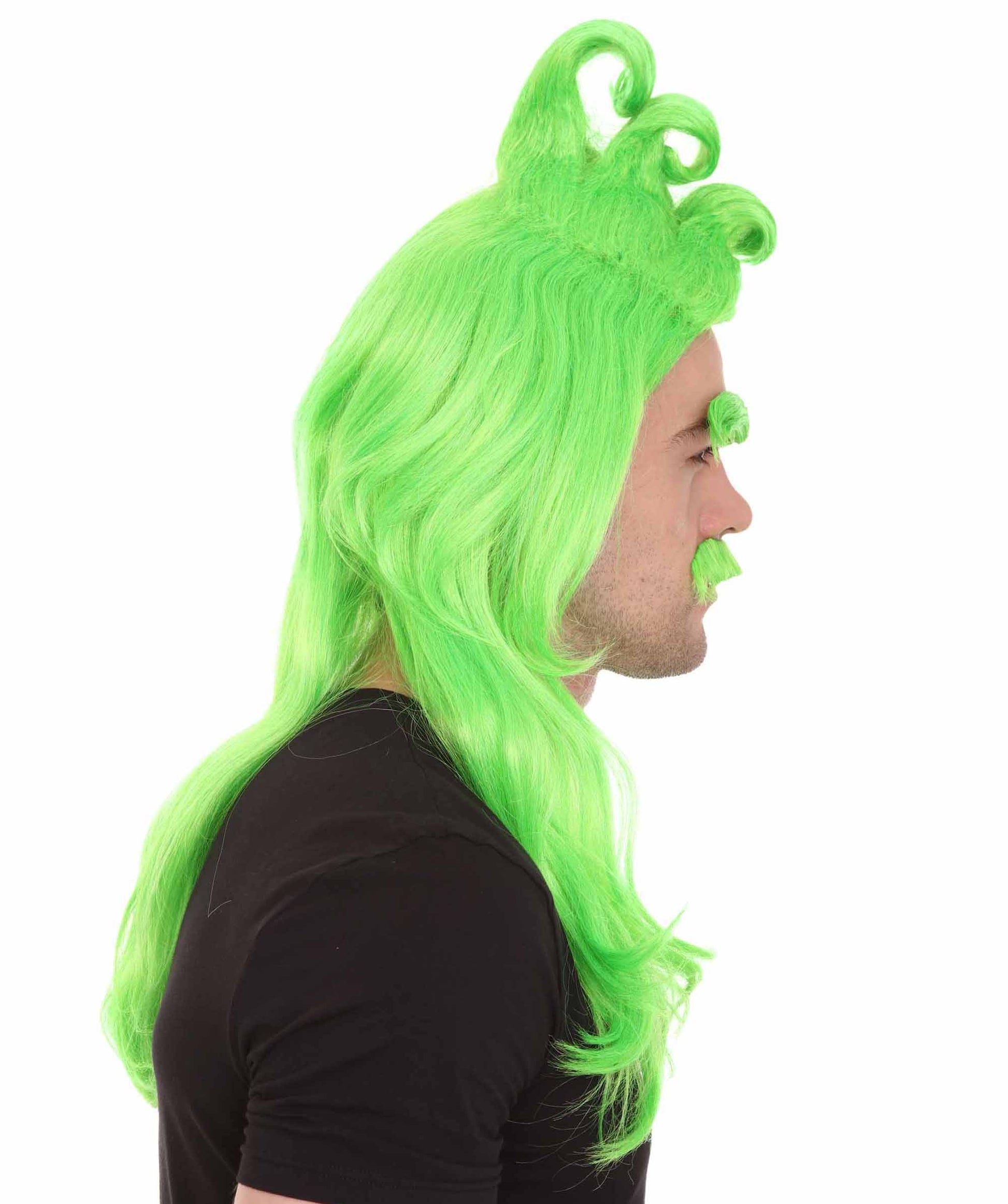 ハロウィンパーティ プレミアム 男性用 H-4787 クリスマス グリンチ サンタ グリーンウィッグ、眉毛、口髭フルセット