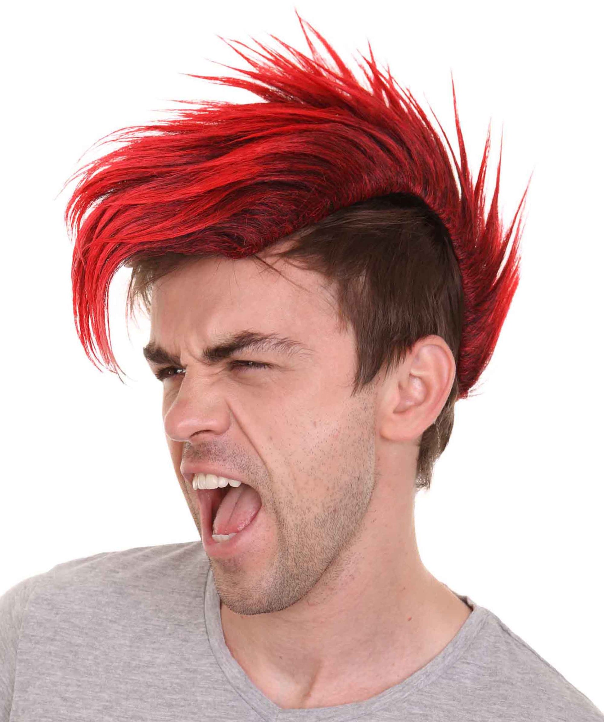 ハロウィンパーティープレミアムメンズ H-4840 モヒカン レッド&ブラックウィッグ