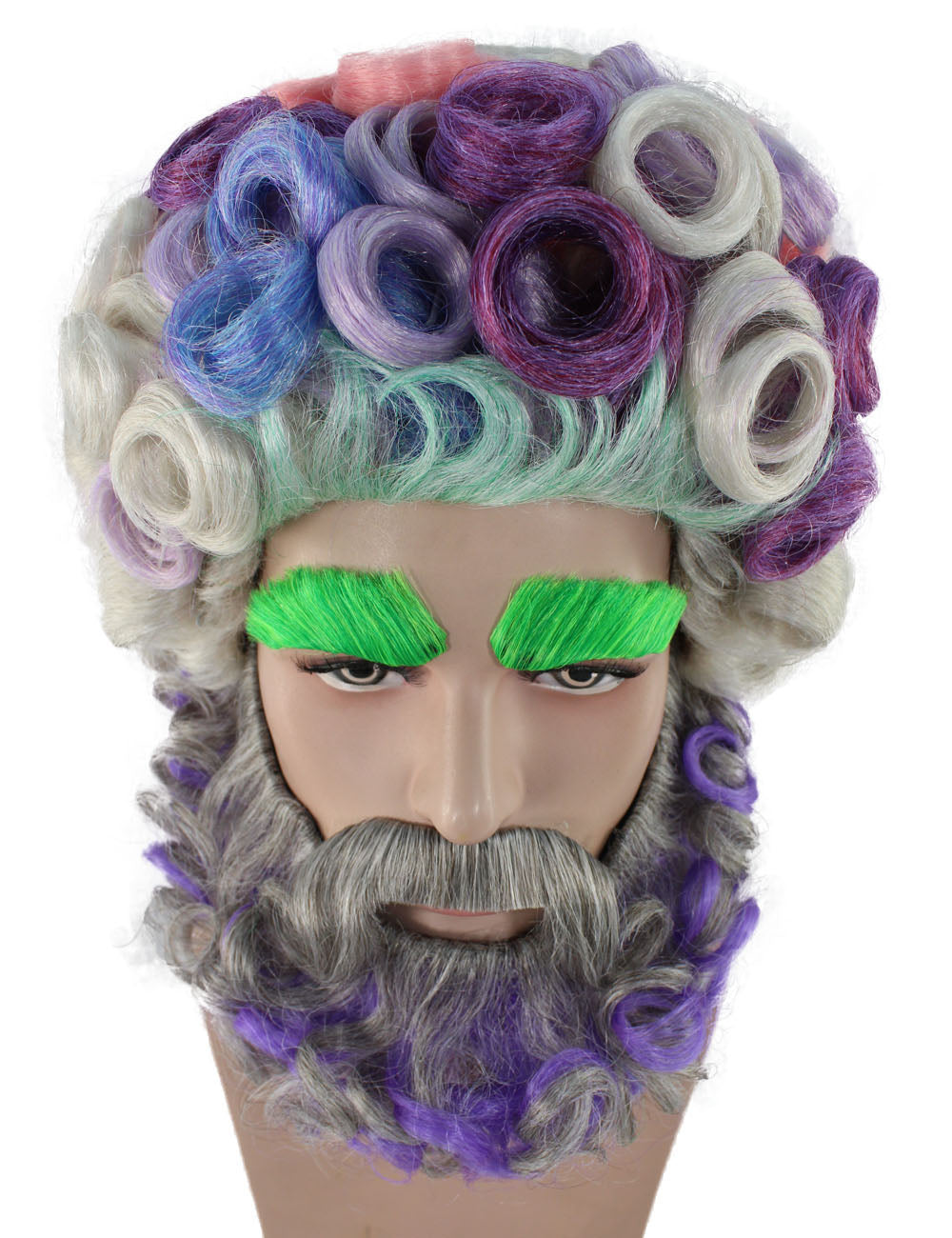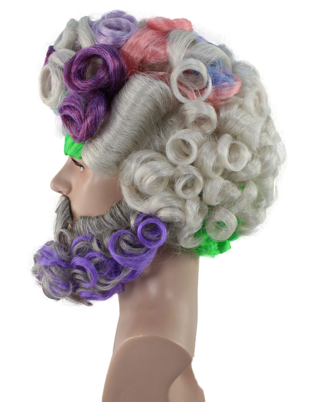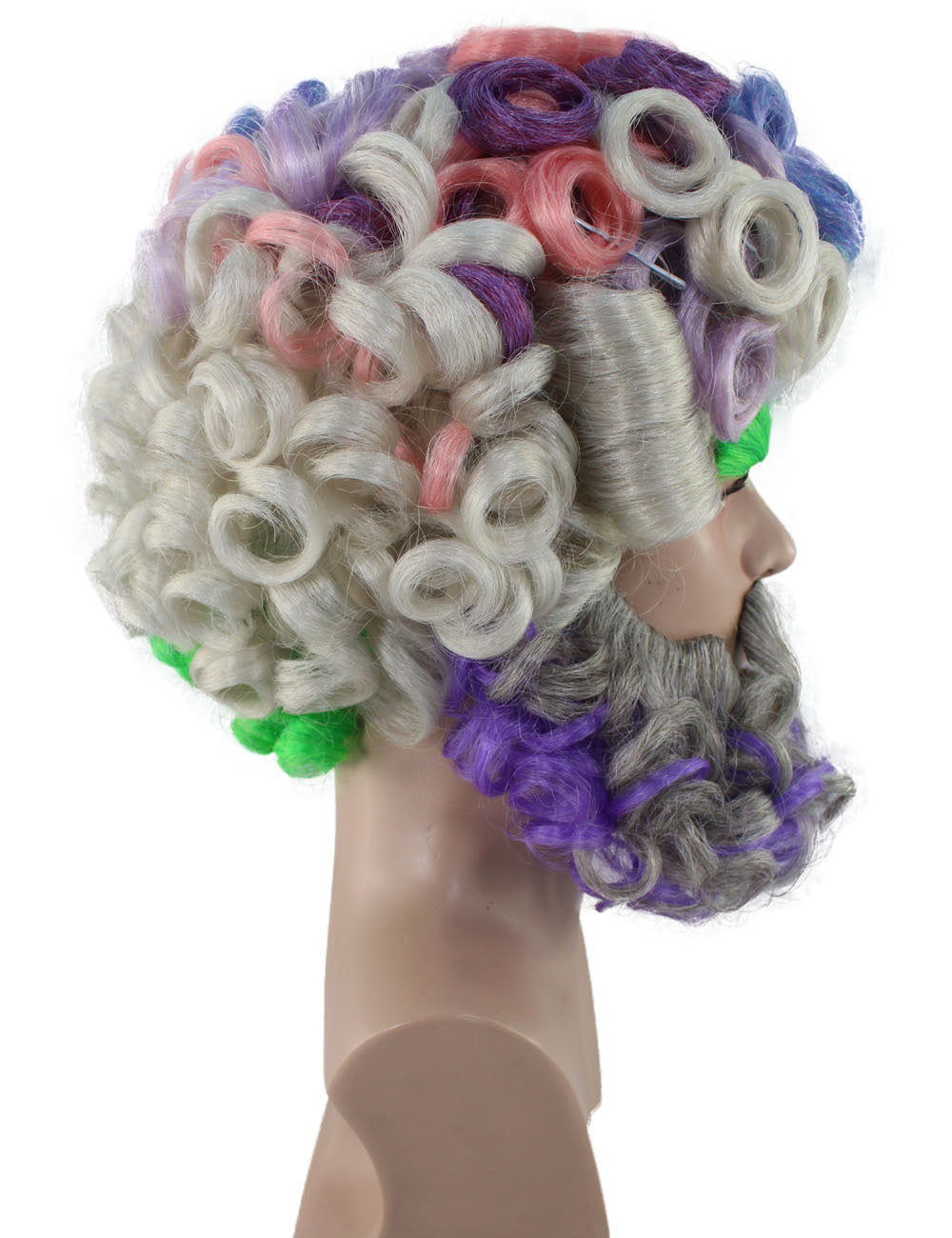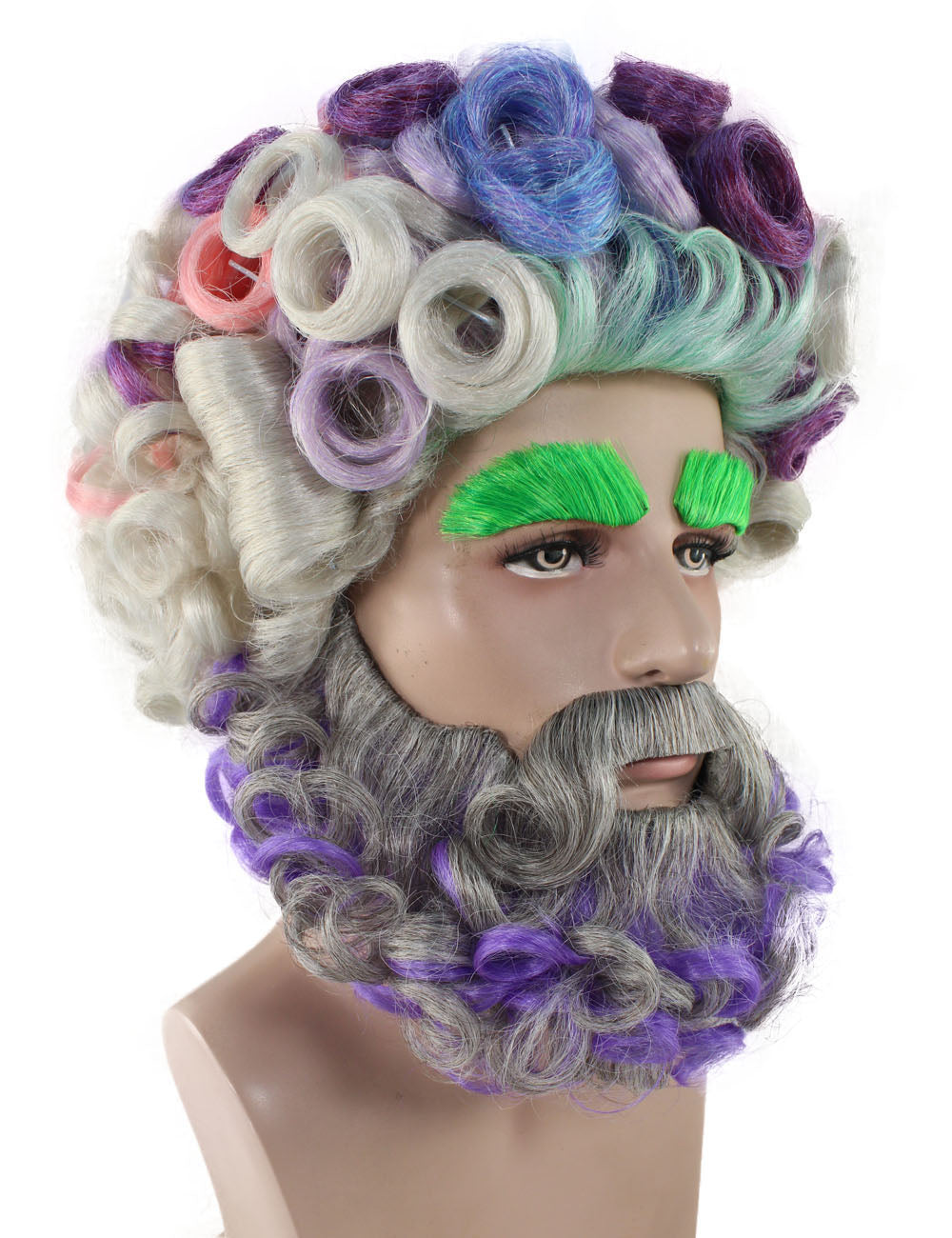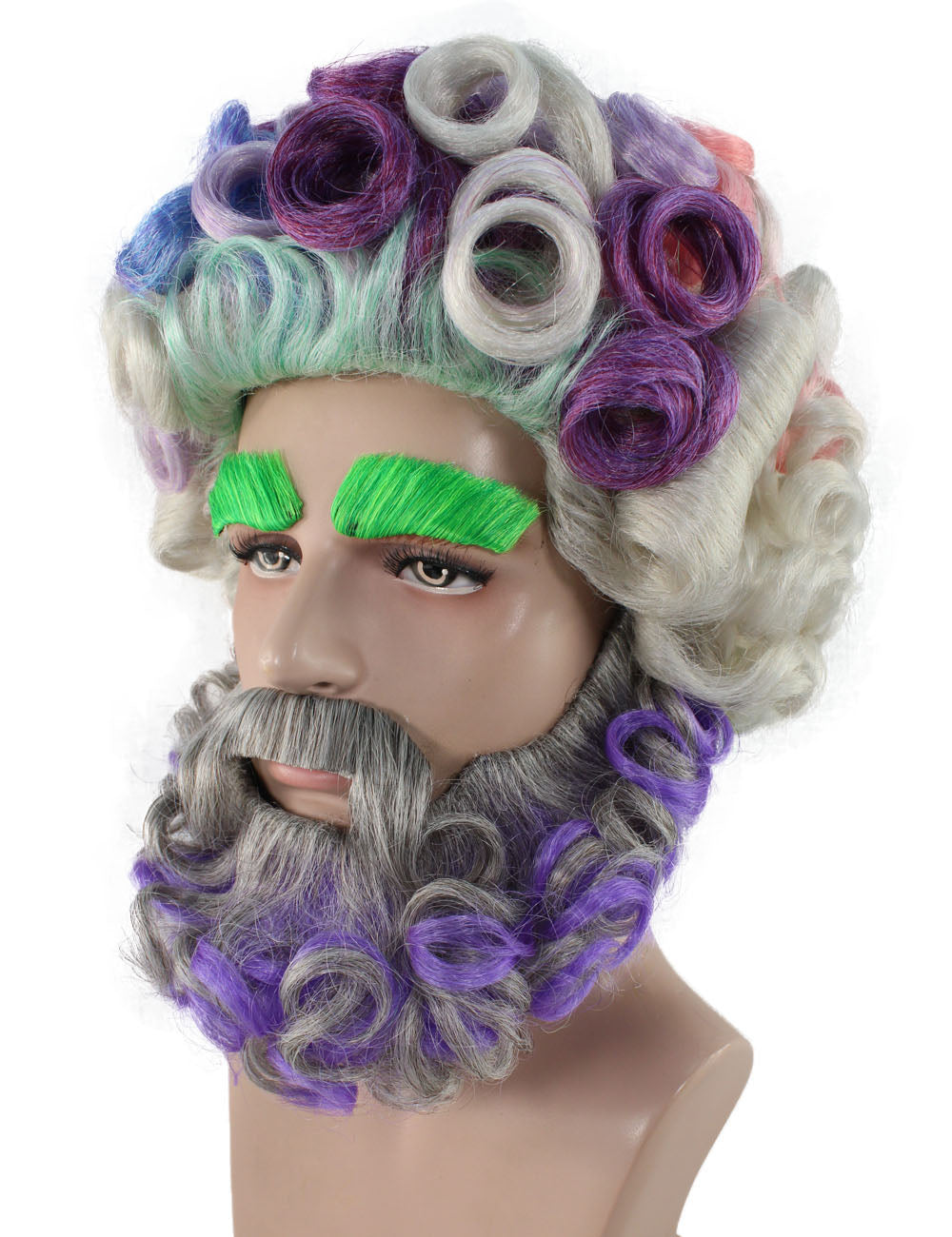 ハロウィンパーティ プレミアムメンズ H-5524 フラワーメン マルチカラーウィッグ ビアード4付き 合成繊維の髪