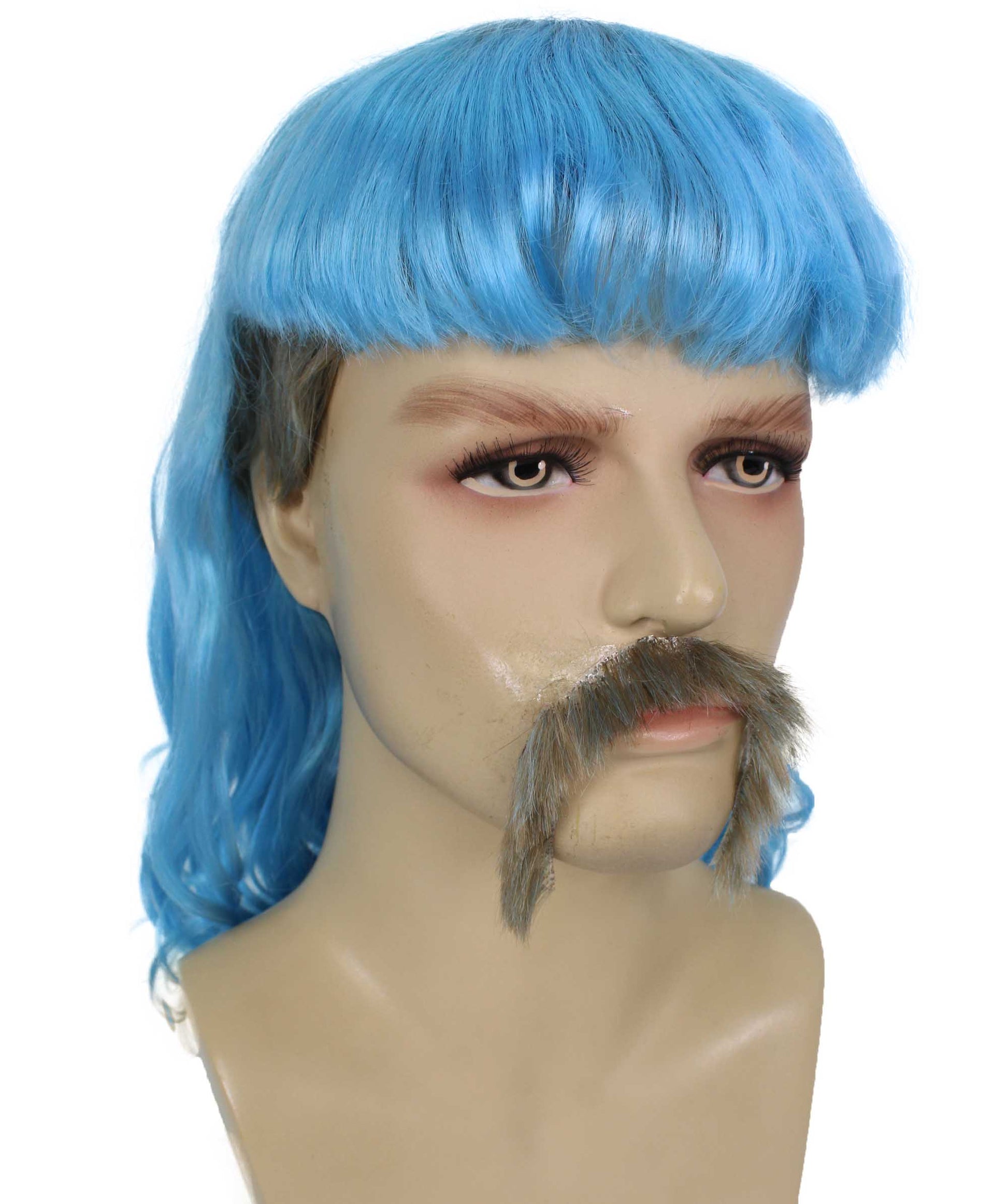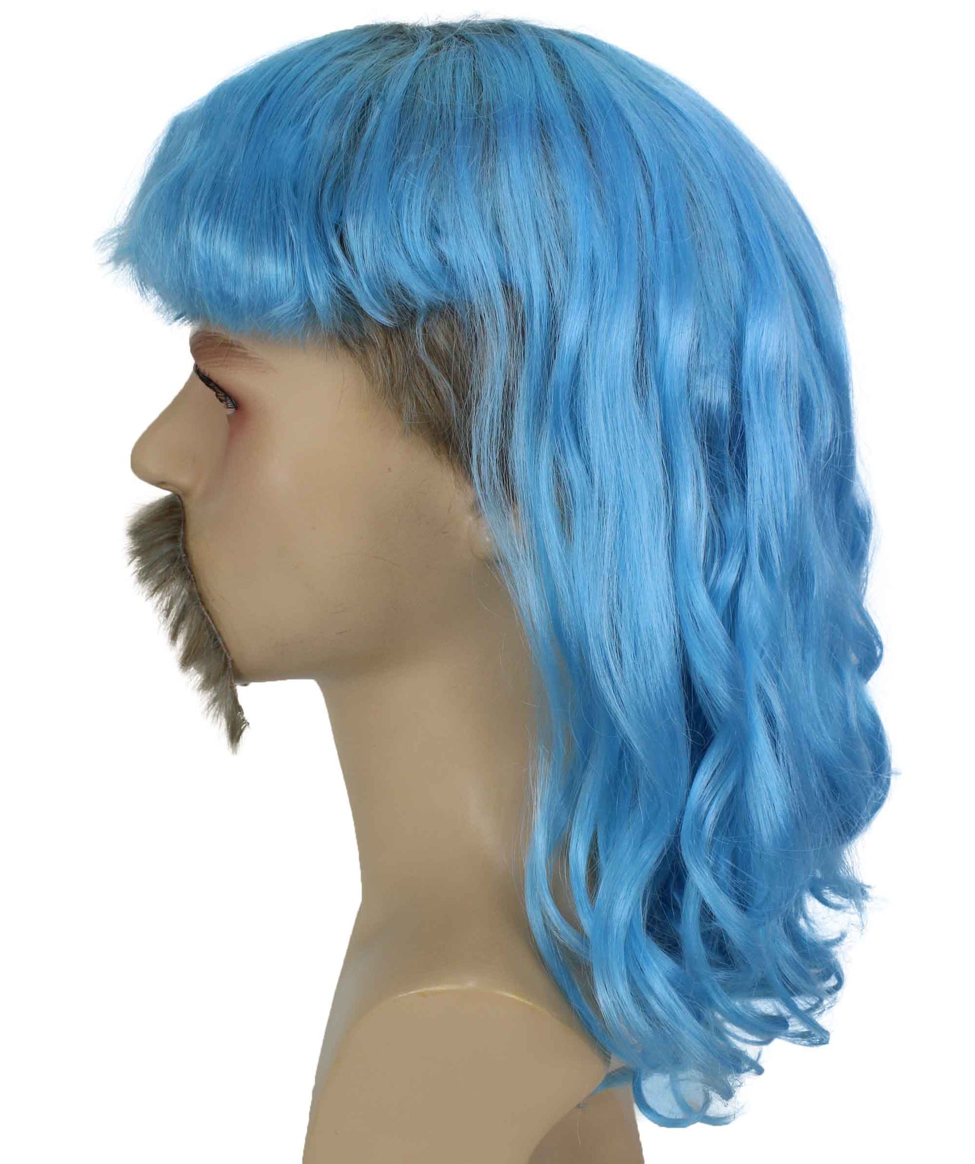ハロウィンパーティープレミアムメンズH-5565_LBLライトブルーマレットウィッグとヒゲセット