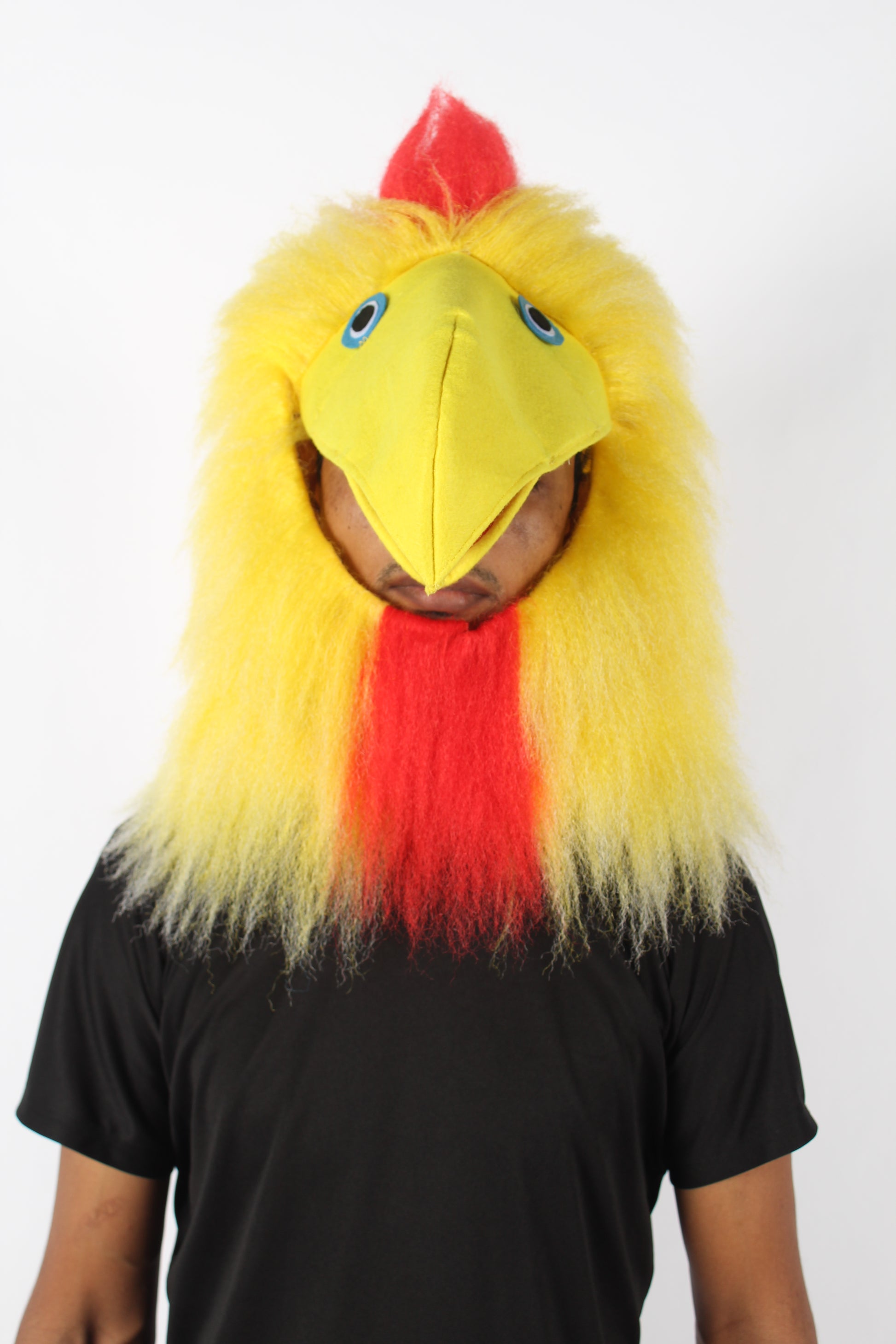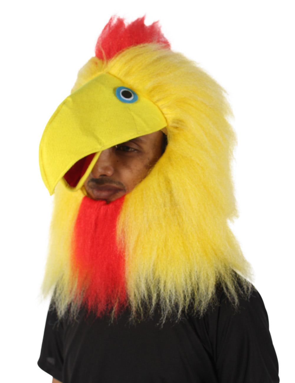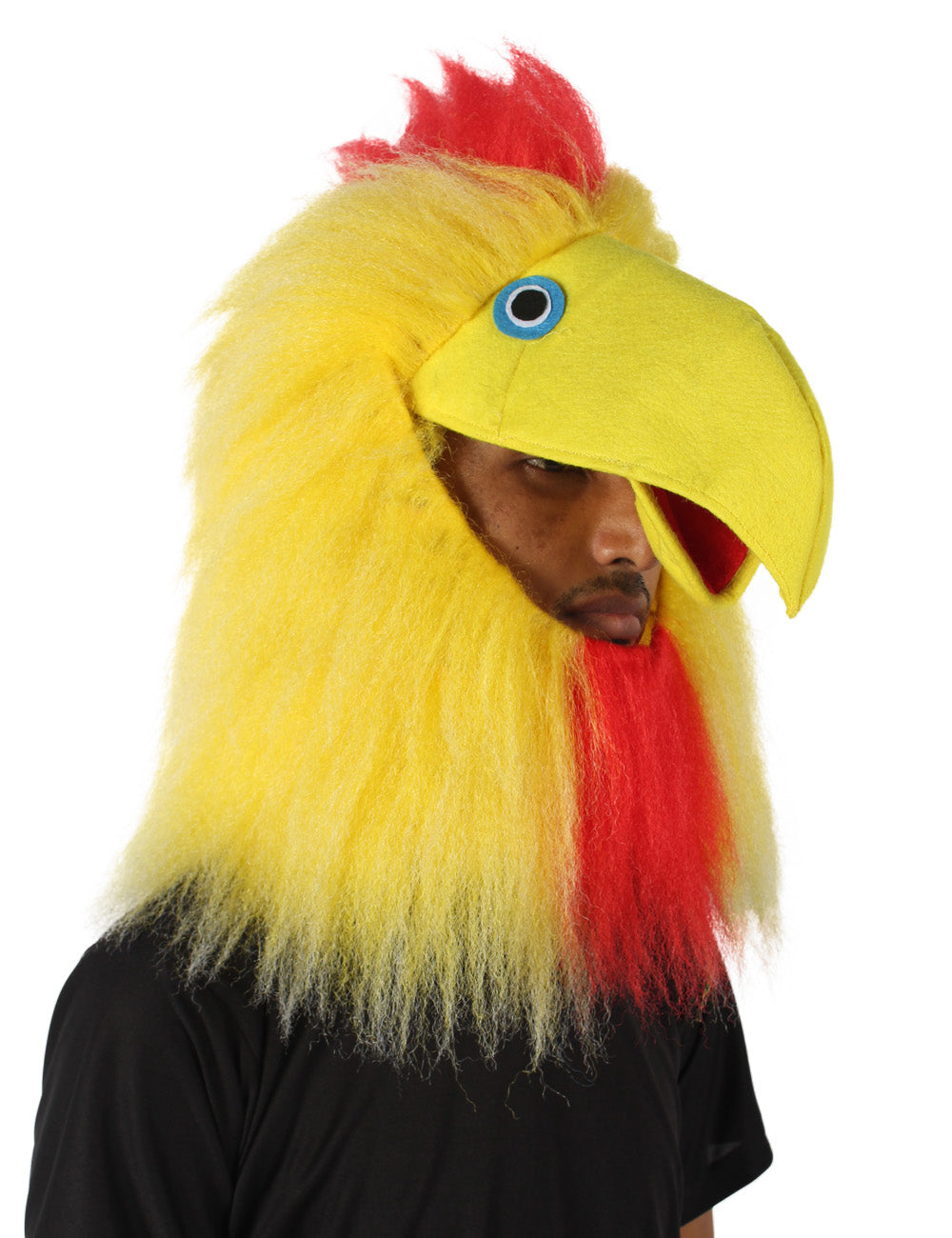 ハロウィンパーティープレミアムメンズ H-5593 黄色と赤のチキンのウィッグとマスク ソフト合成繊維