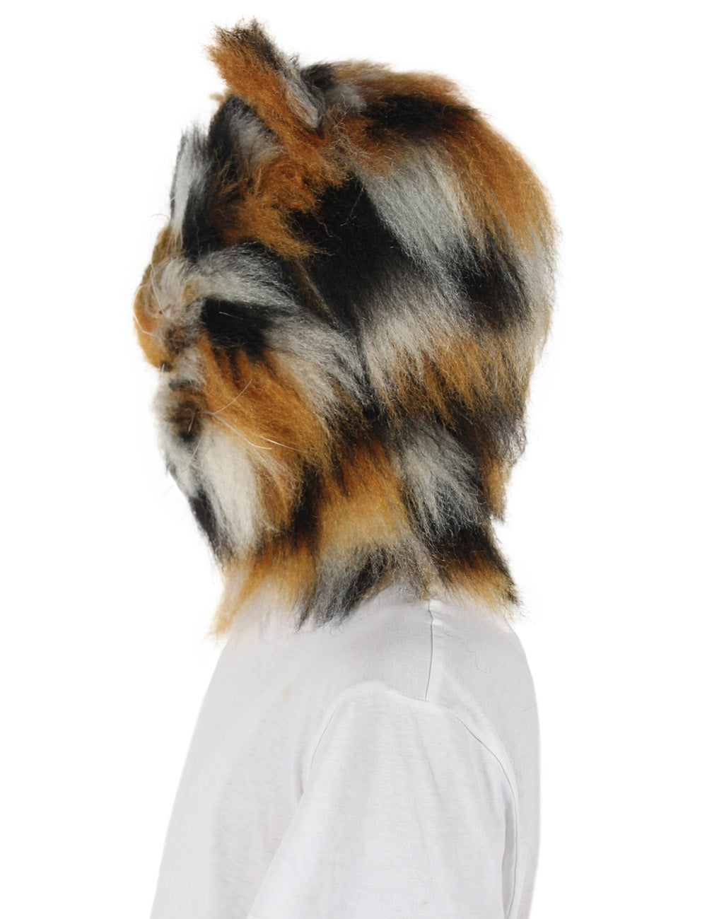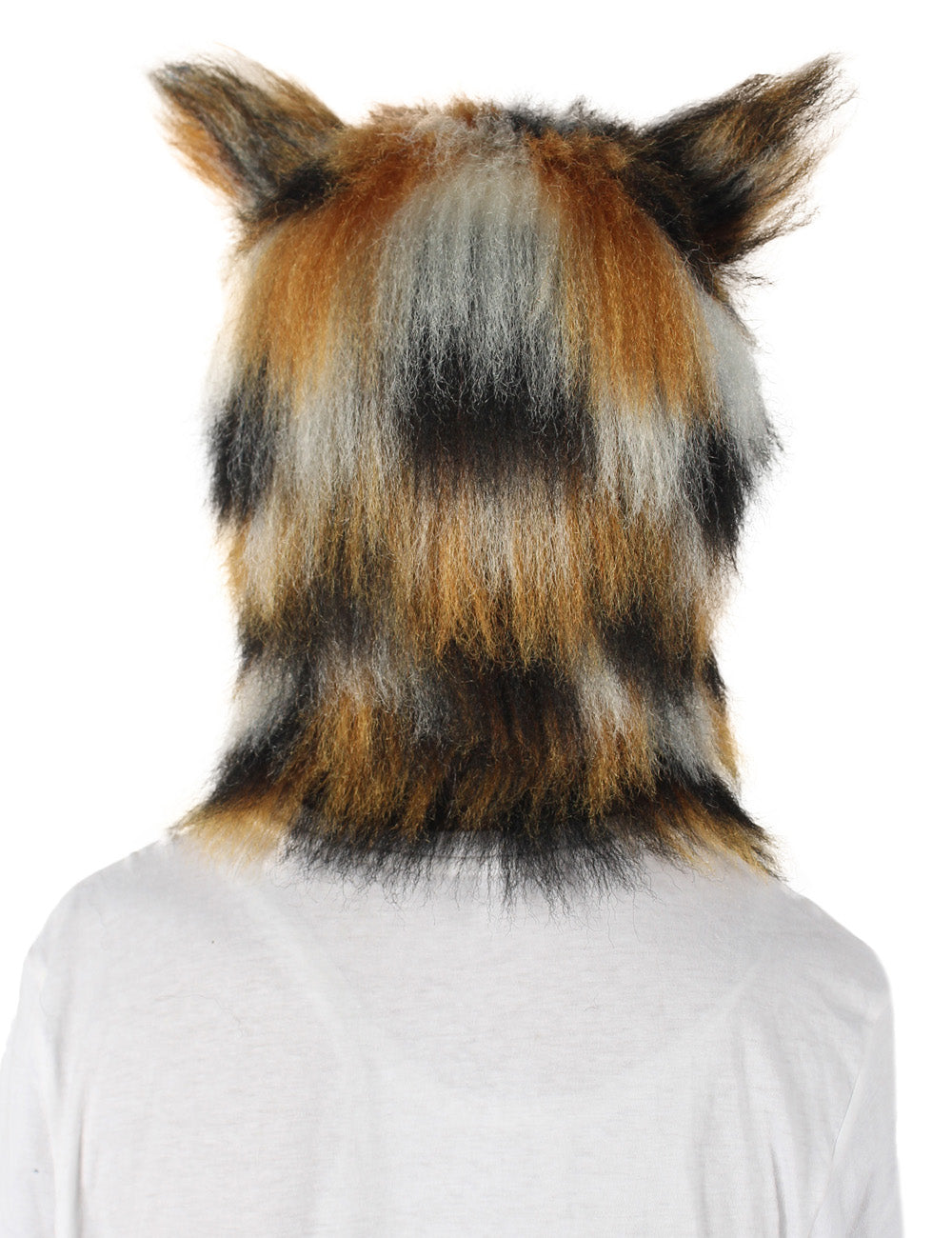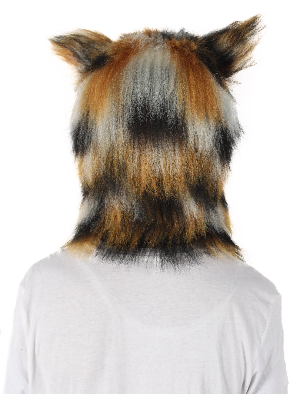 鋭い目、大きな鼻先、そしてリアルなヒゲのディテールが特徴的なこのウィッグとマスクは、ヒョウの顔の特徴を忠実に再現しています。