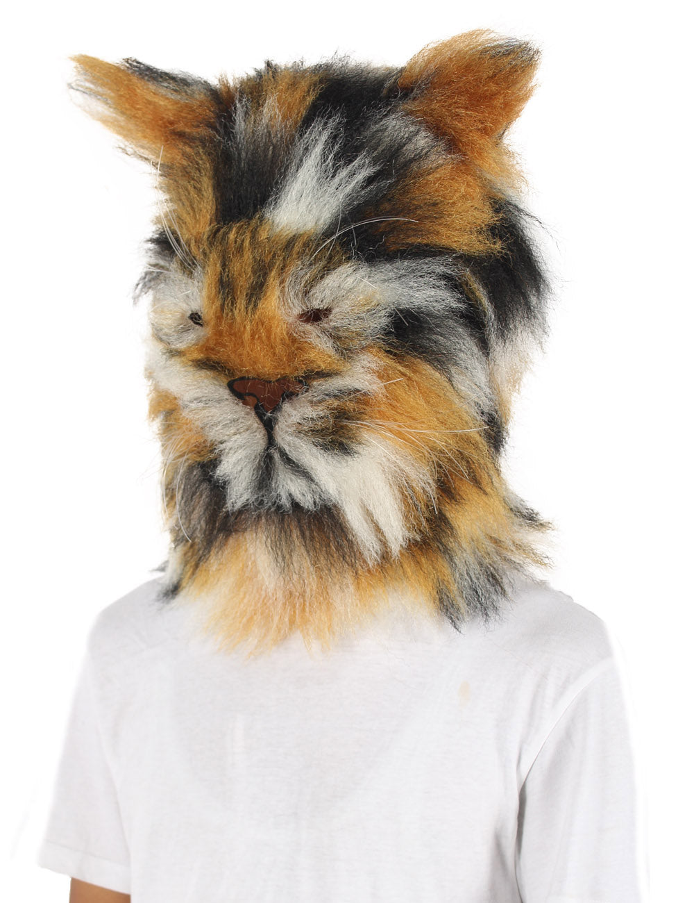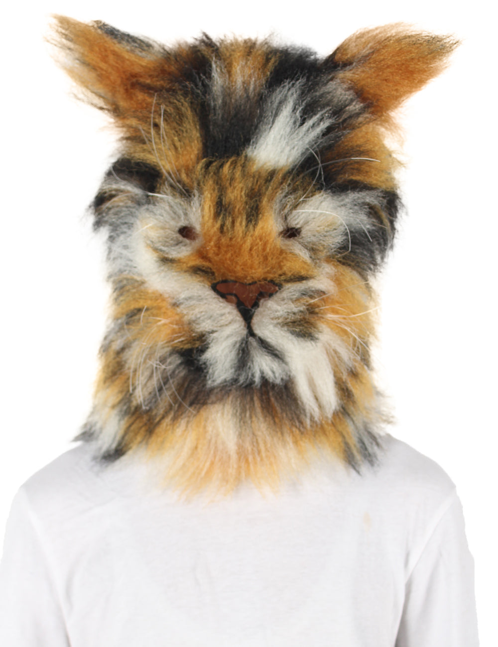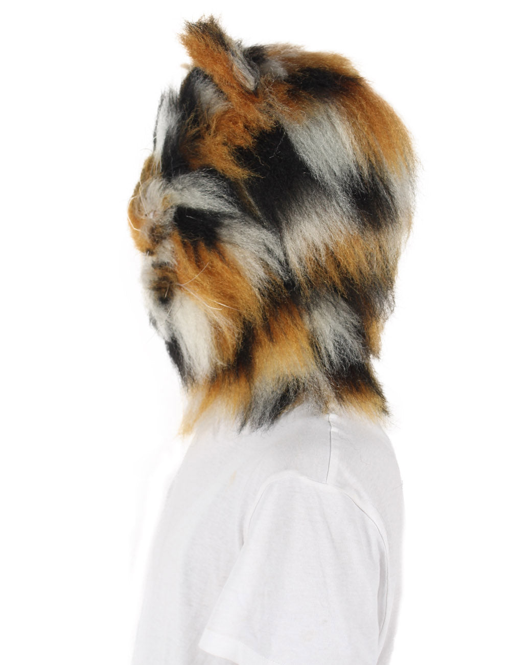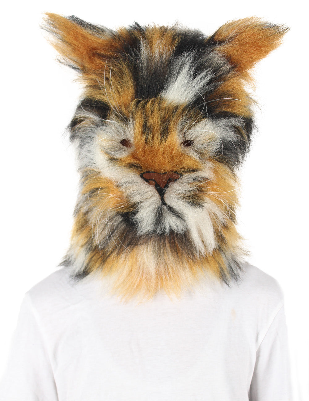 鋭い目、大きな鼻先、そしてリアルなヒゲのディテールが特徴的なこのウィッグとマスクは、ヒョウの顔の特徴を忠実に再現しています。