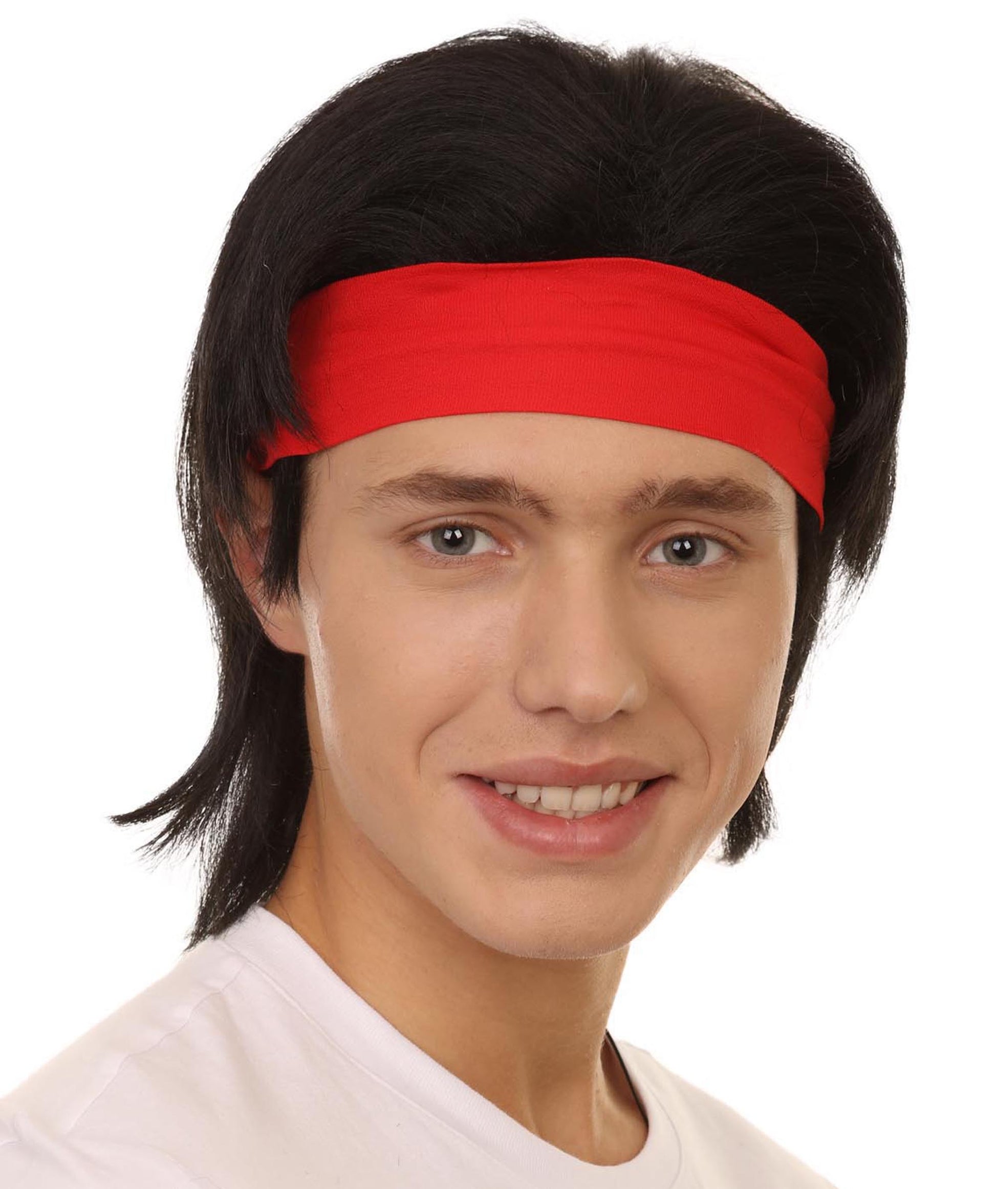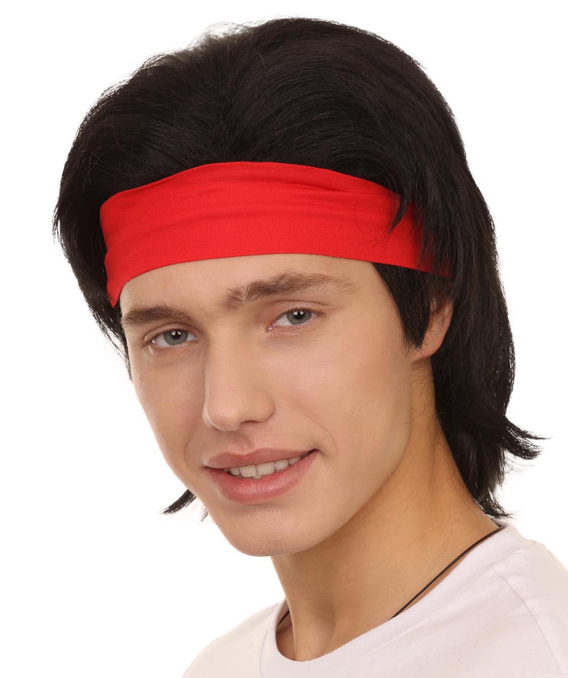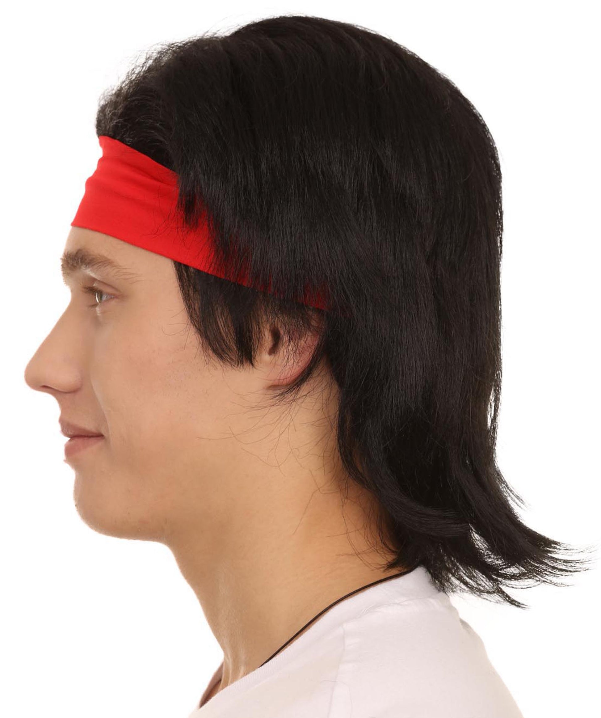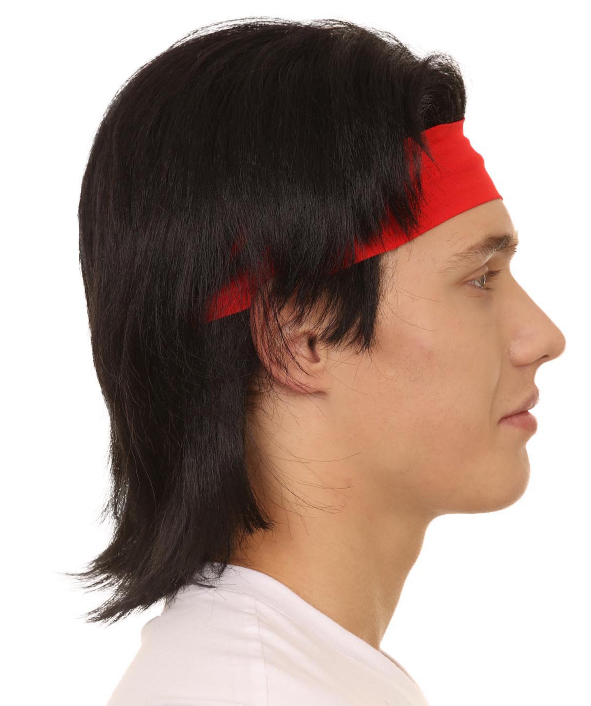 ハロウィン パーティー プレミアム メンズ H-5610 レトロストリートファイターウィッグ 赤いヘッドバンド付き