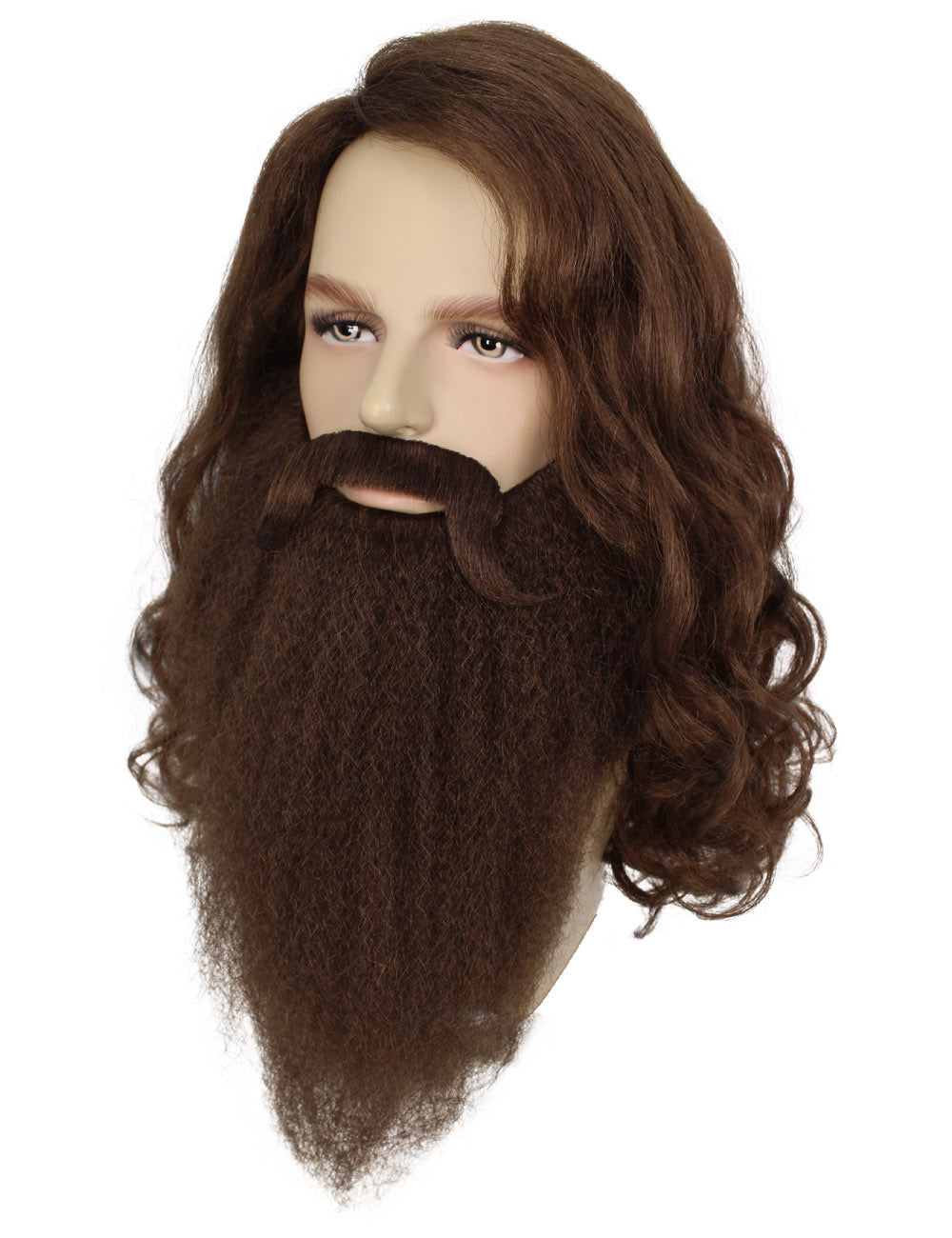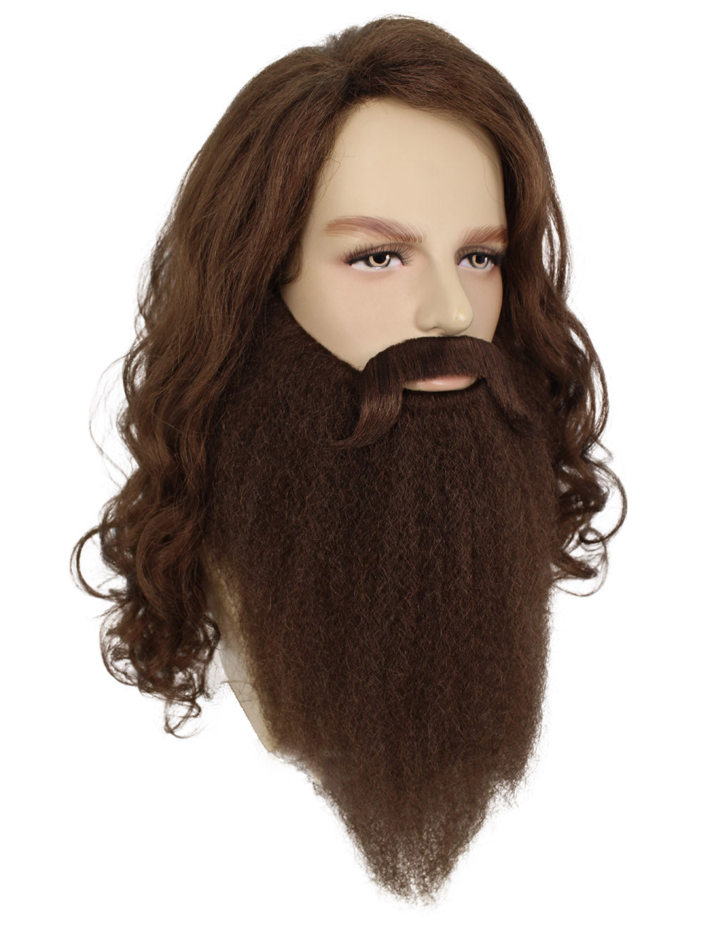 ハロウィンパーティープレミアムメンズH-5632 ブラウンマジカルジャイアントウィッグ ビアード付き ソフト合成繊維ヘア