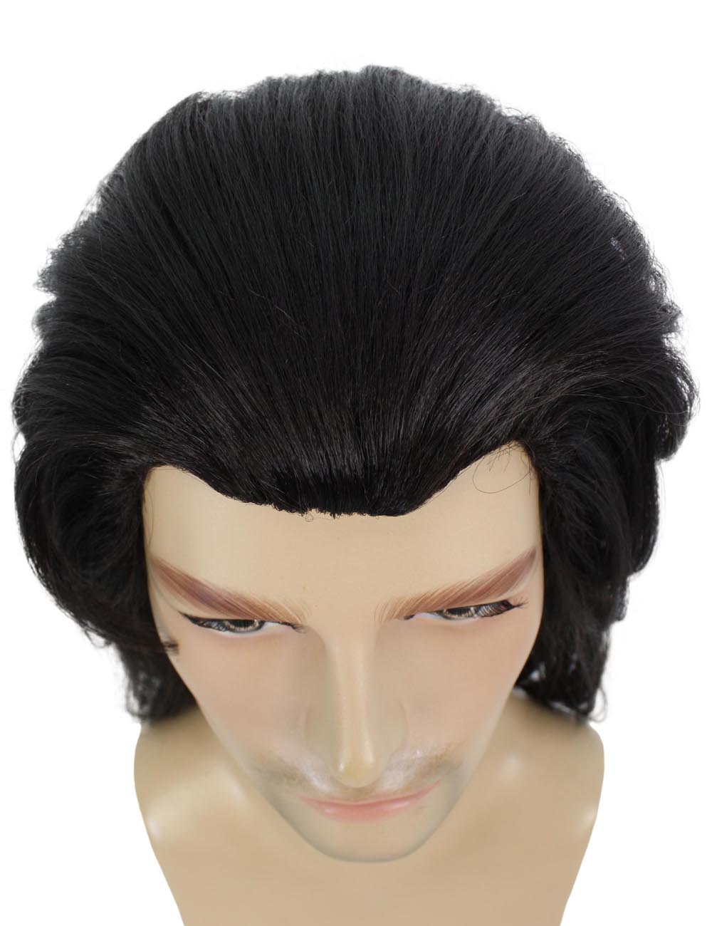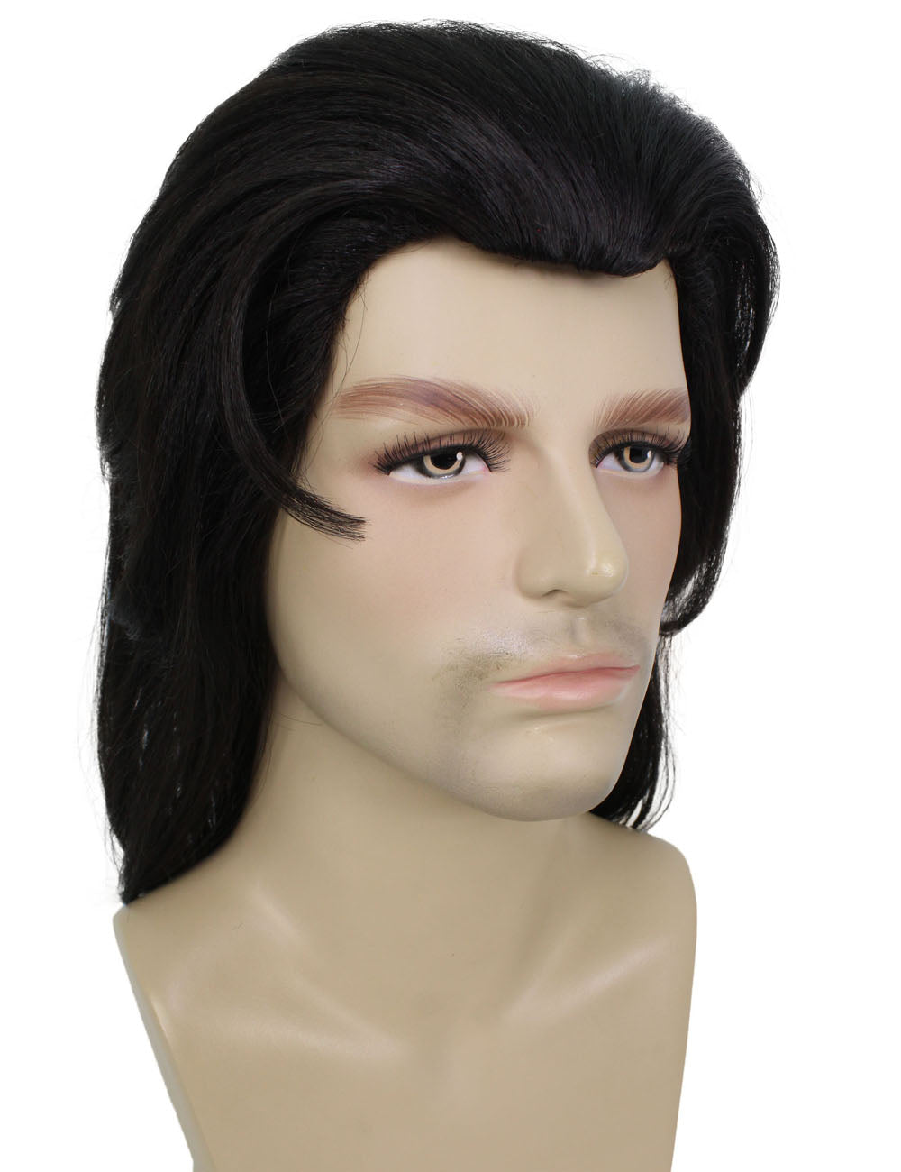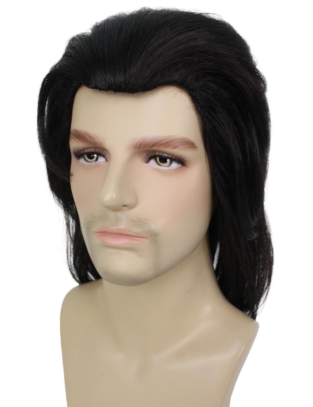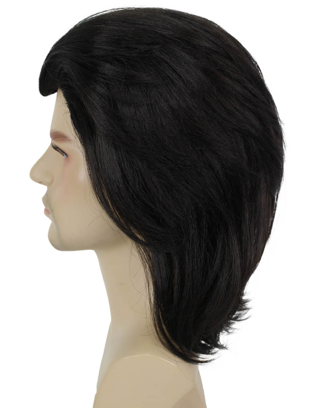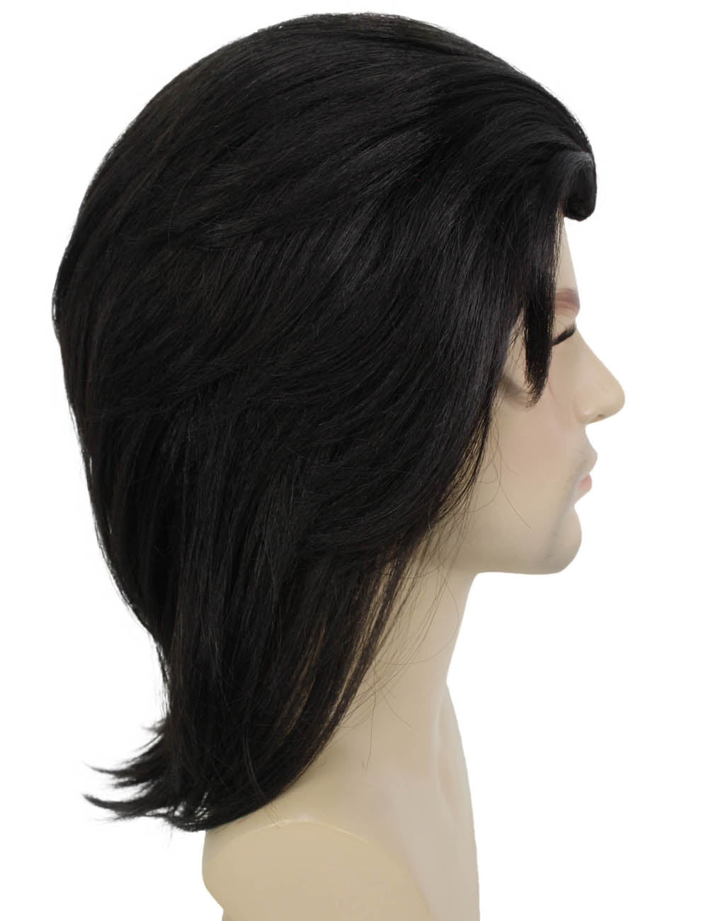 ハロウィンパーティープレミアムメンズ H-5641 ミディアムレングスヒットマンウィッグ 黒色 軟らかい合成繊維の髪