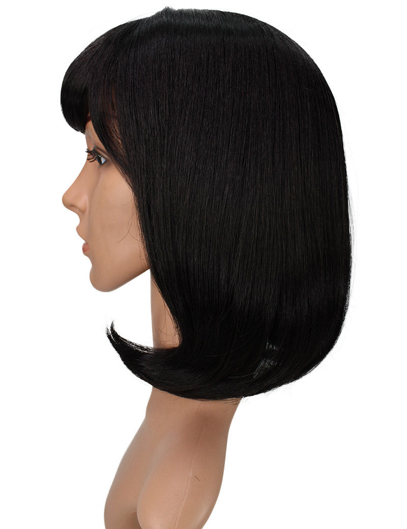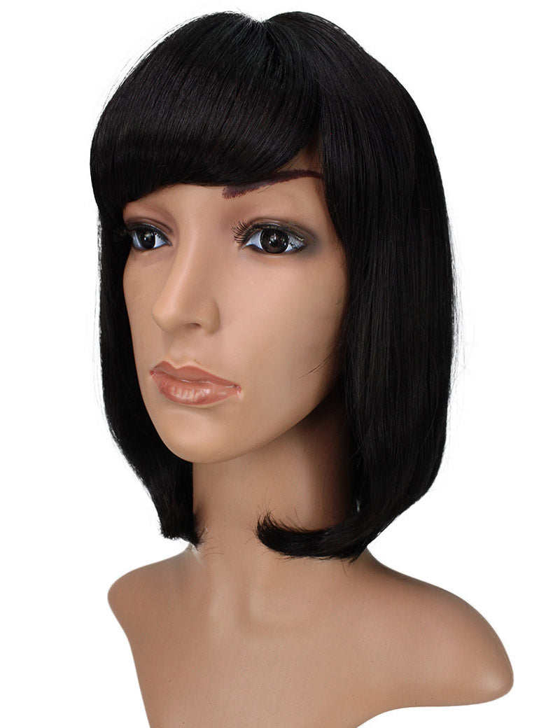 女性用 前髪ありミディアムウィッグ 人毛使用 ふんわりボリュームタイプ ウィッグネット付き