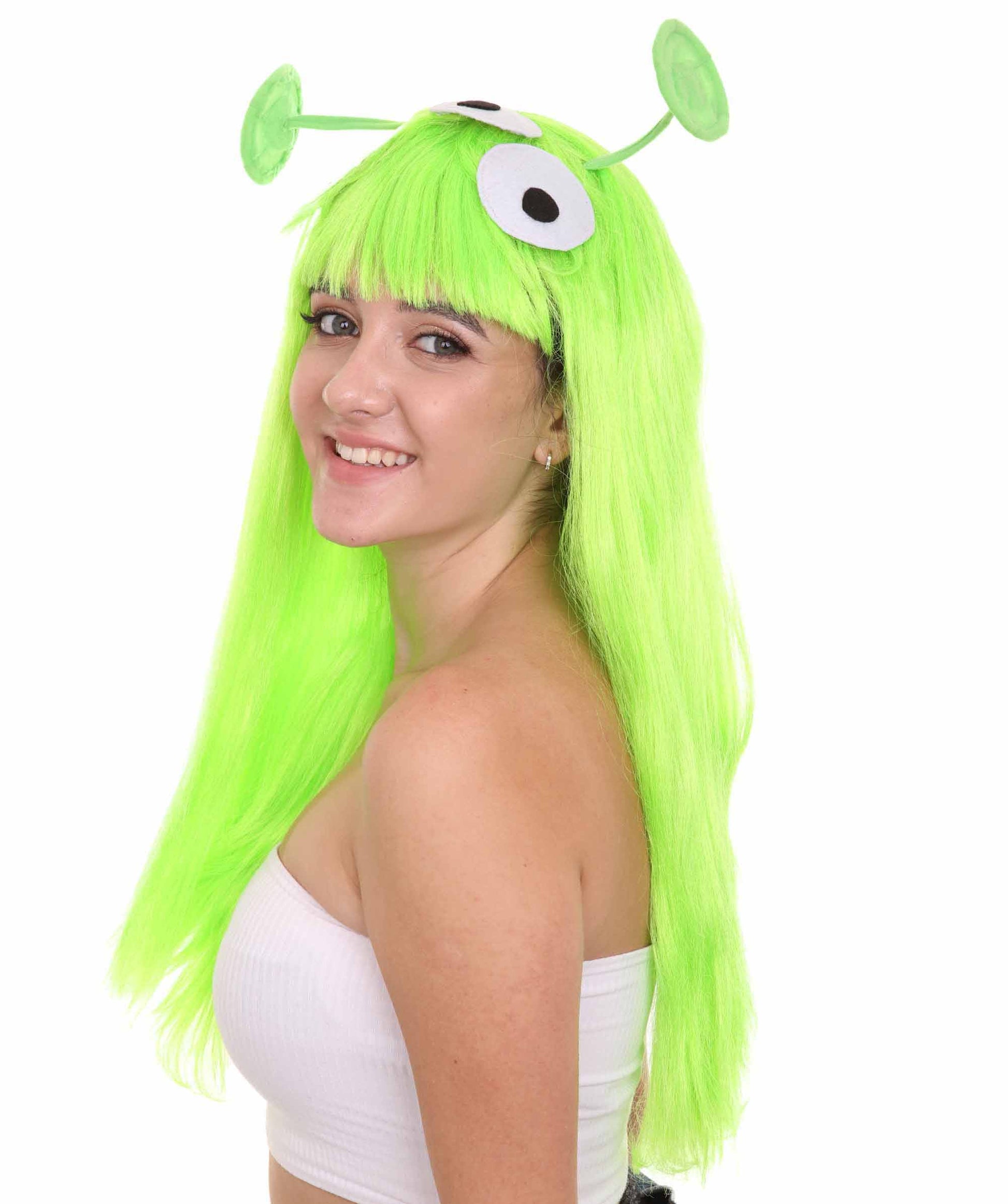 レディース ルイス・アンド・ザ・エイリアンズ グリーンウィッグ 2本のアンテナ付き H-4695 TV/映画ウィッグ プレミアム通気性キャップレスキャップ