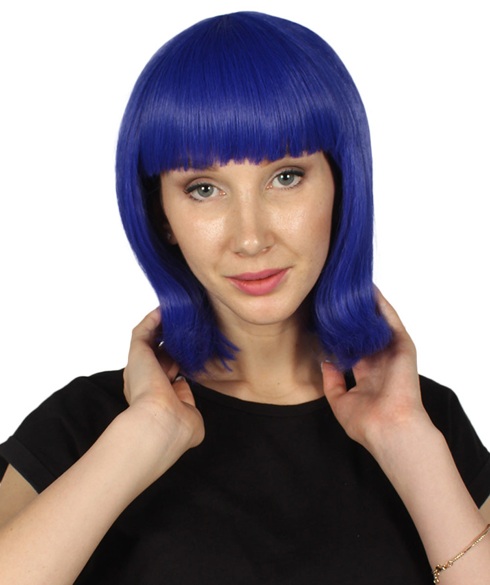 レディース ミディアムボブ コスプレ ウィッグ ブルー H-3372 プレミアム通気性 キャプレス キャップ