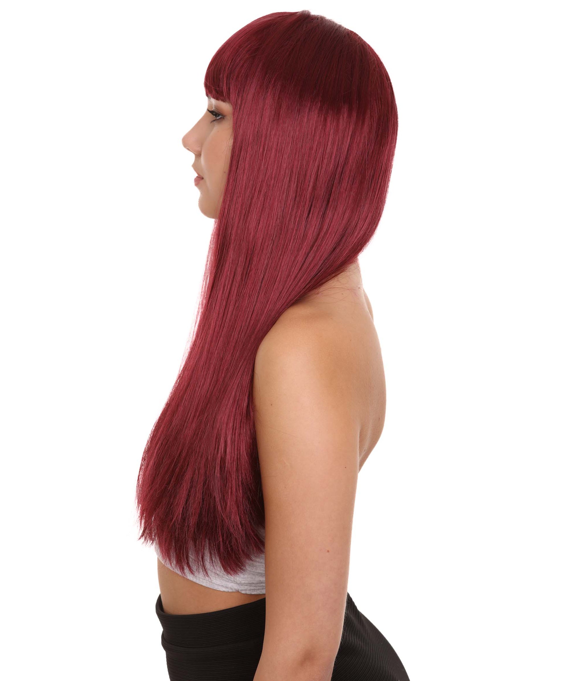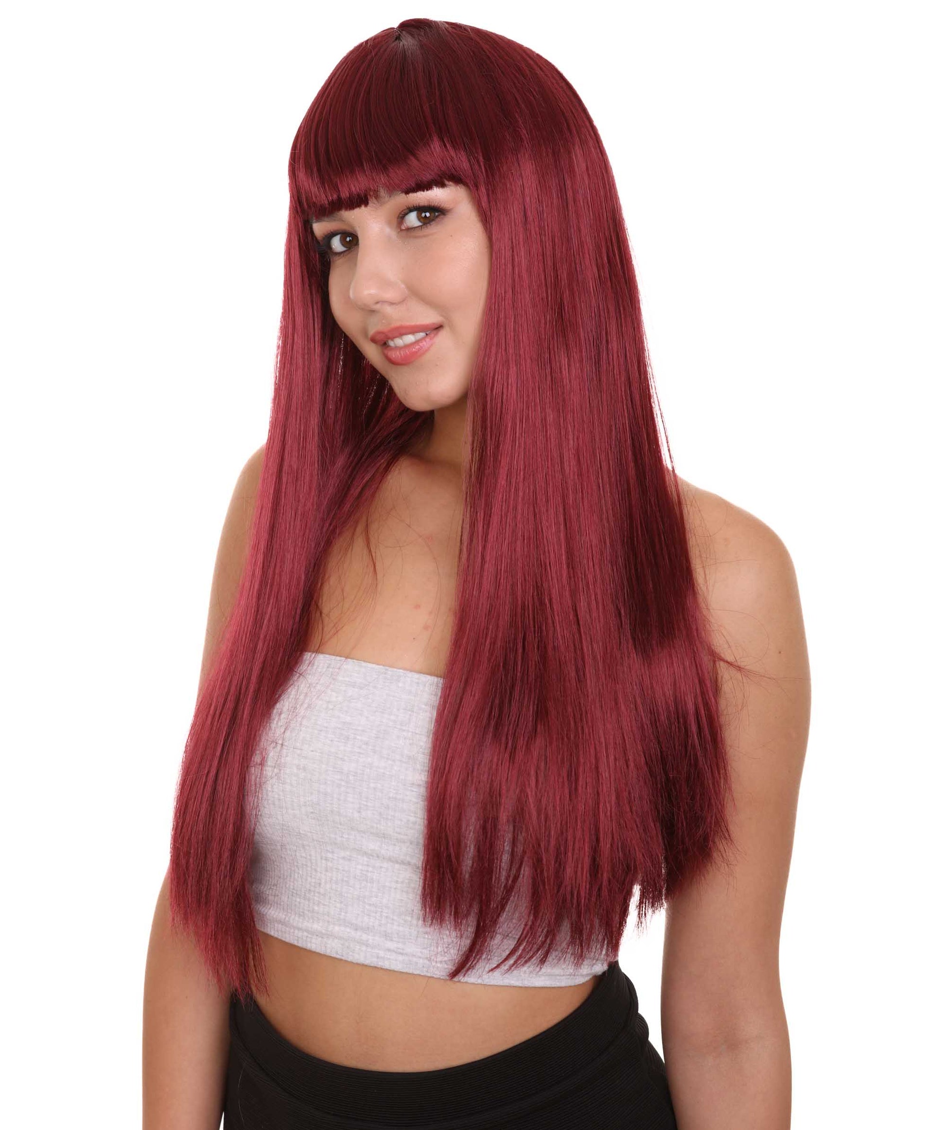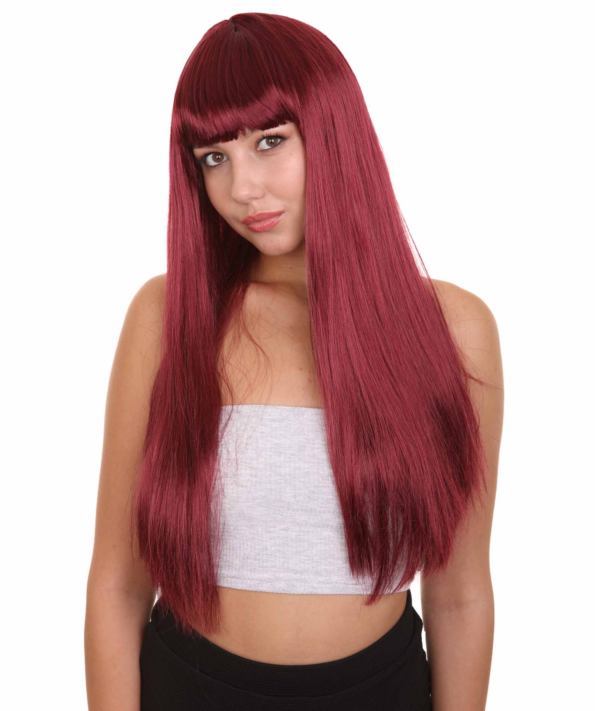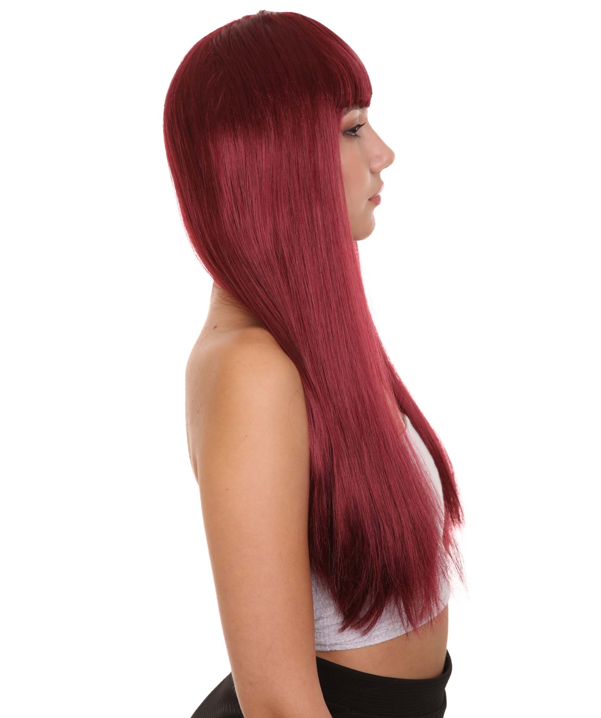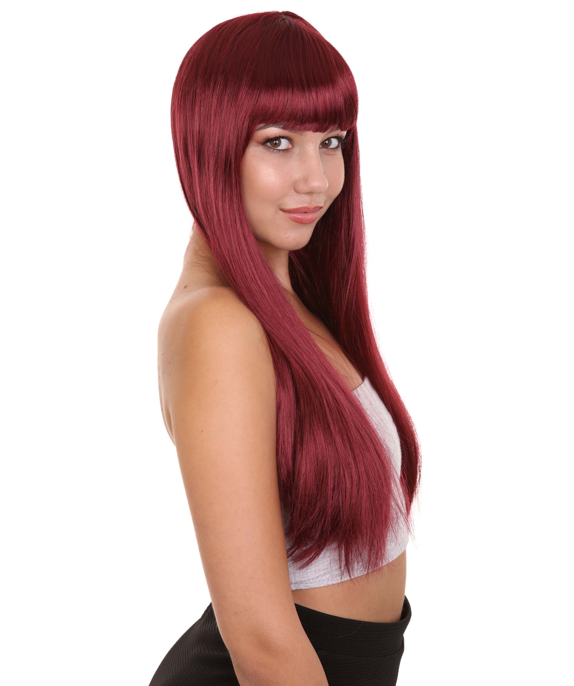 ロングボブバーガンディ女性用ウィッグ H-3336 華やかなパーティーイベント準備完了のハロウィンウィッグ プレミアム通気性のあるキャップレスキャップ