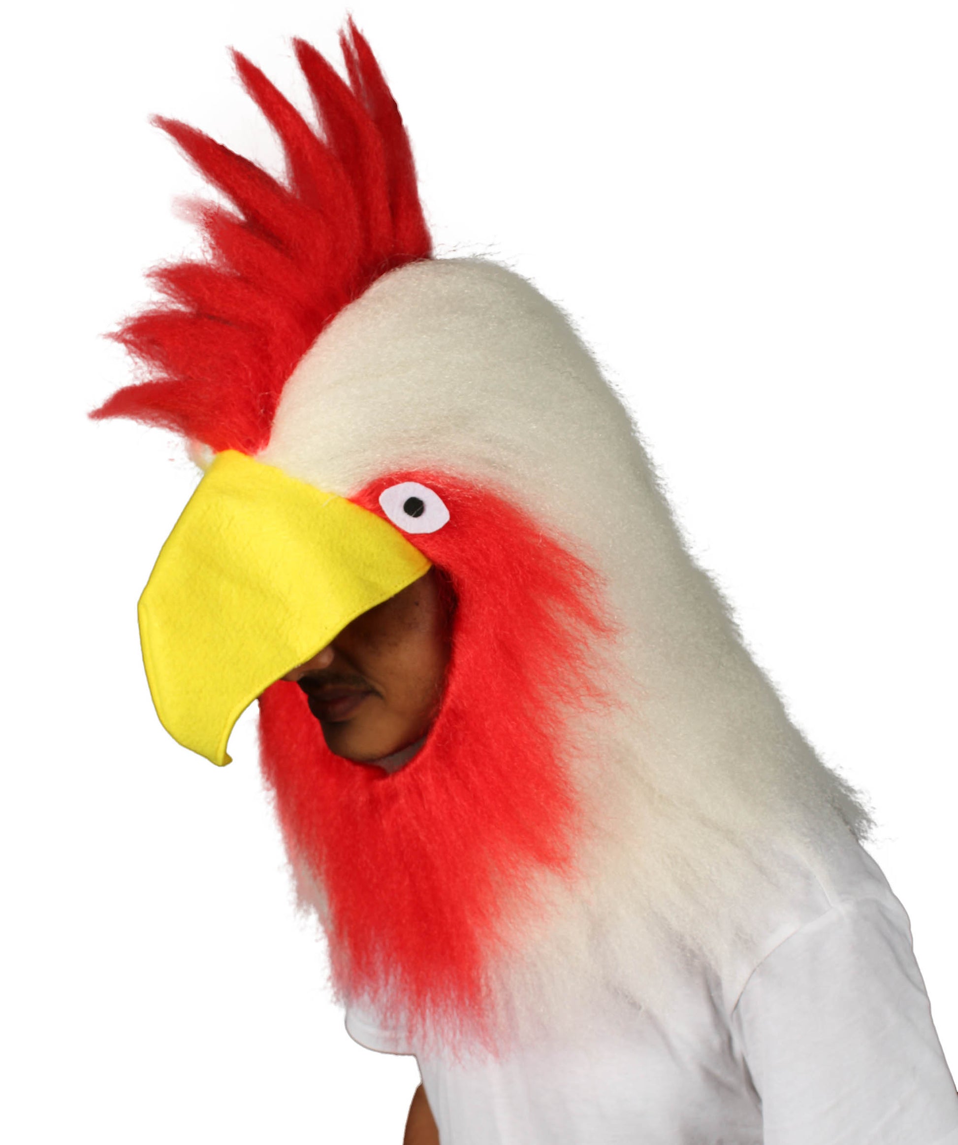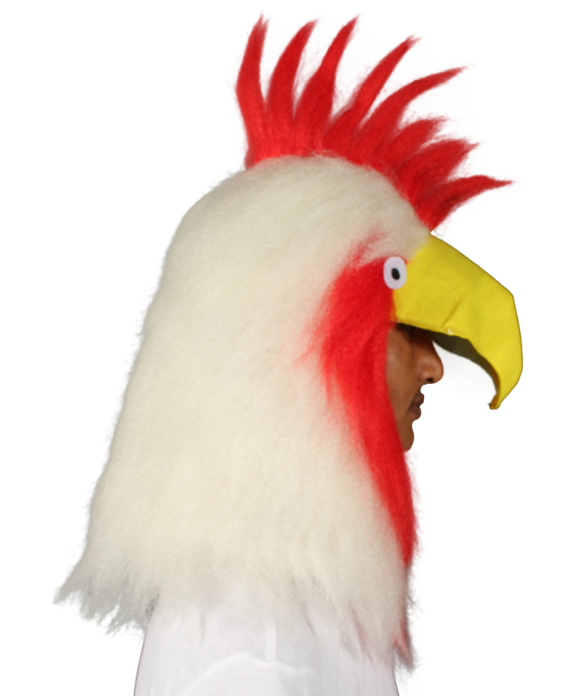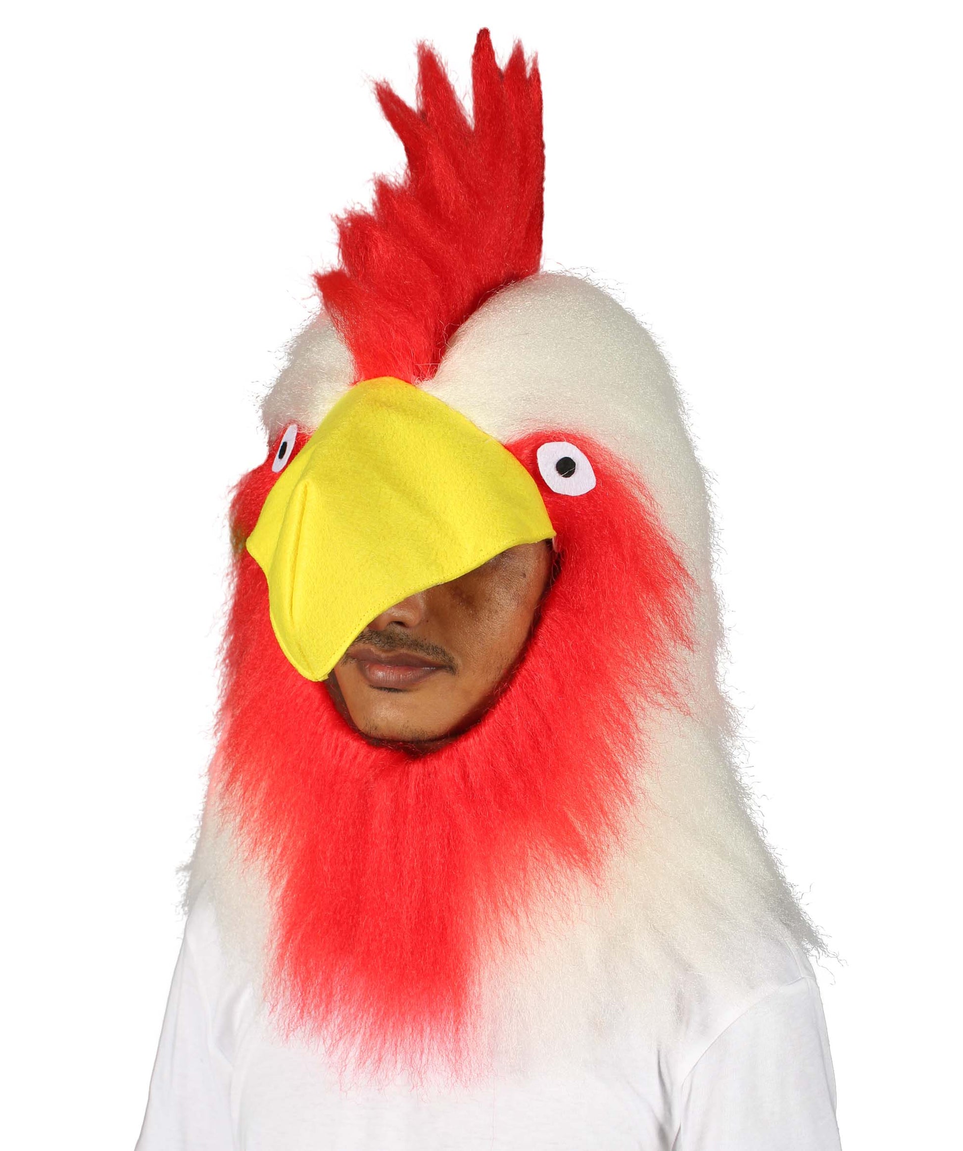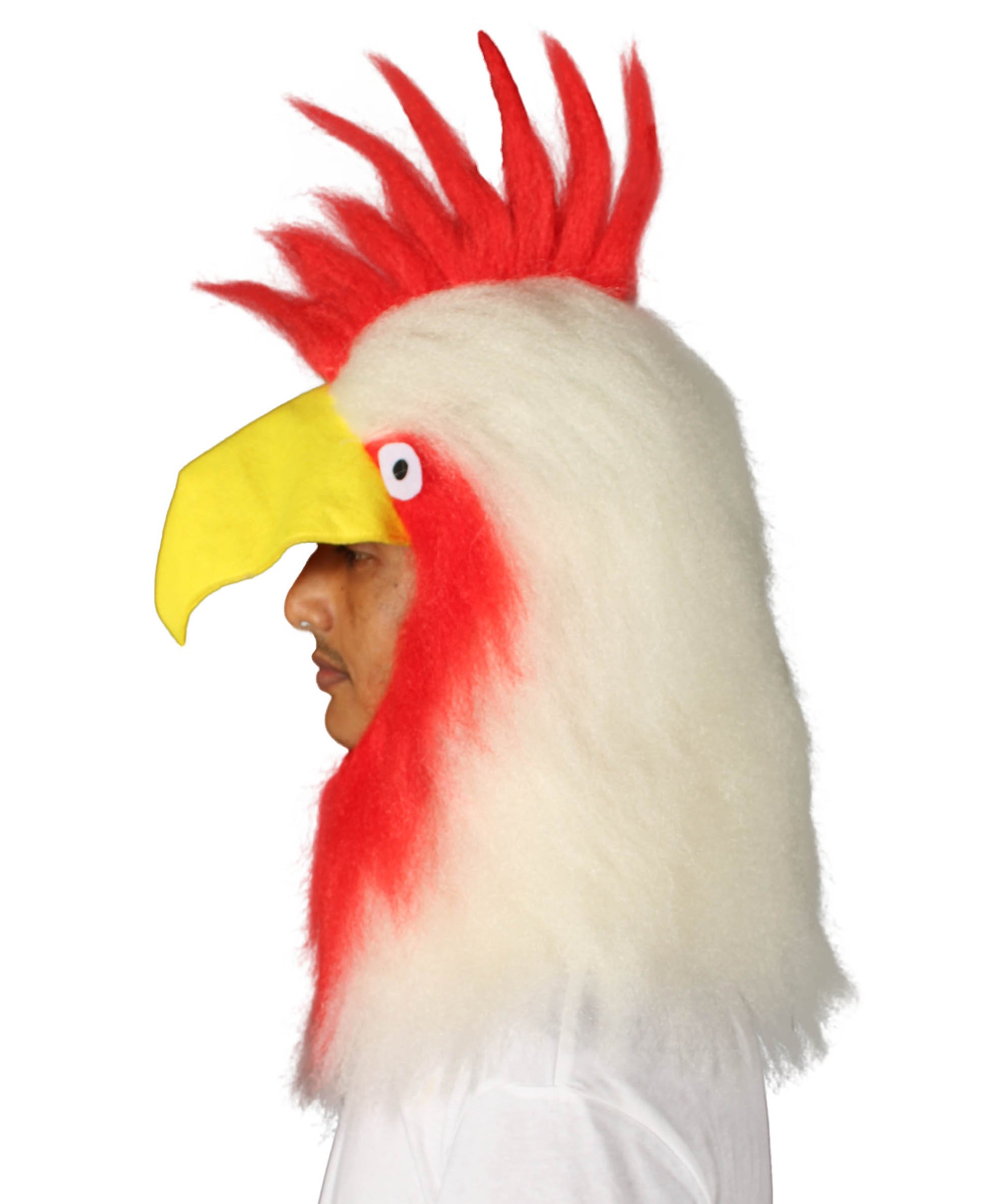 メンズ H-5596 ホワイト、レッドとイエロー チキン ウィッグとマスク ロング 合成ファイバー