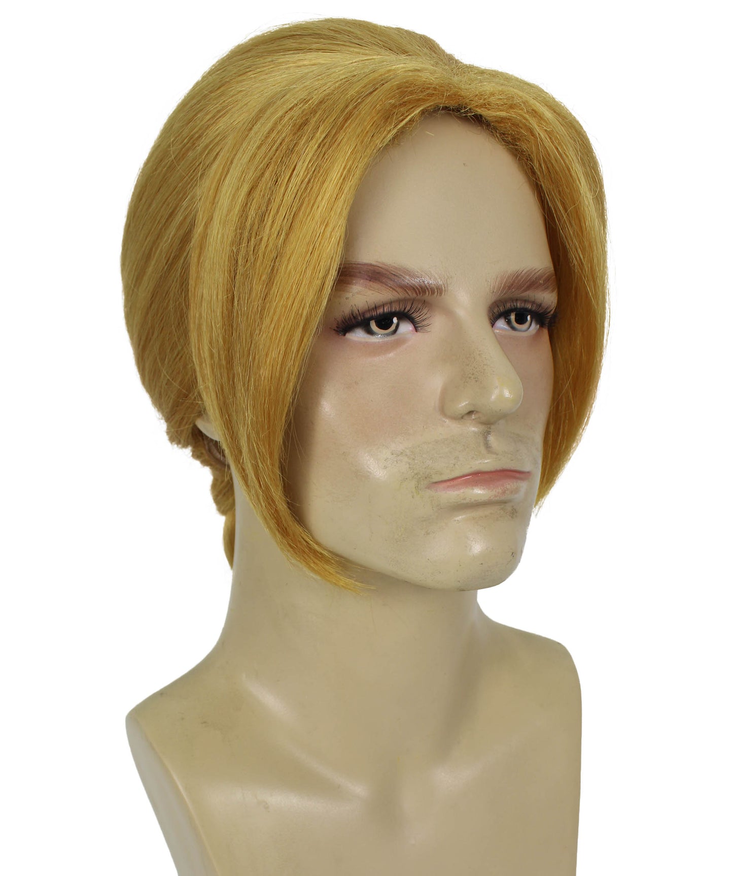 メンズ H-6070 ブロンド ロング編み込み アニメウィッグ ハロウィンに最適 難燃性合成繊維