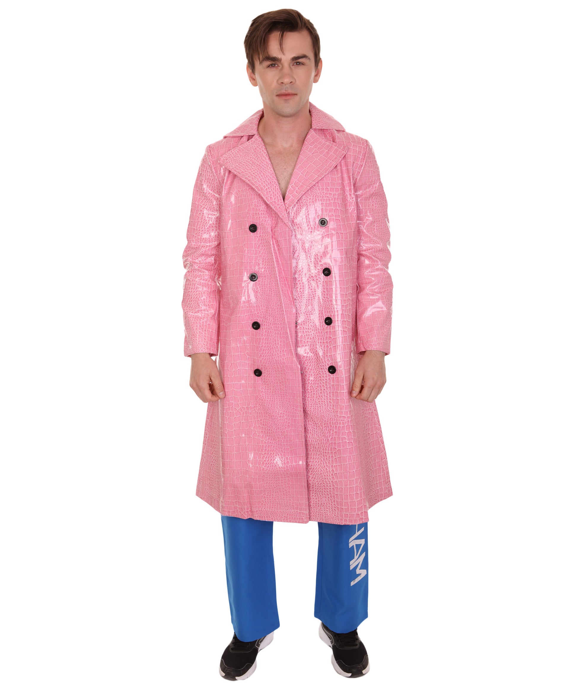 男性 JCP-044 のデラックス サディスティック・ヴィランピンクとブルージョークスタートレンチコートコスチューム 複数サイズ
