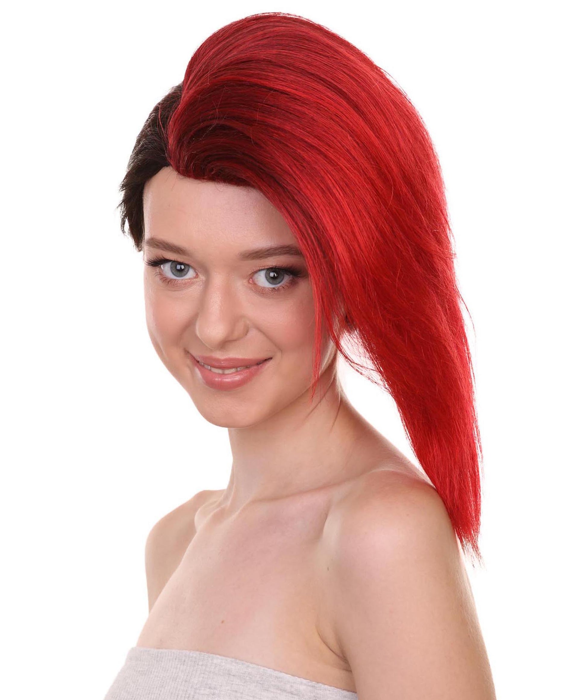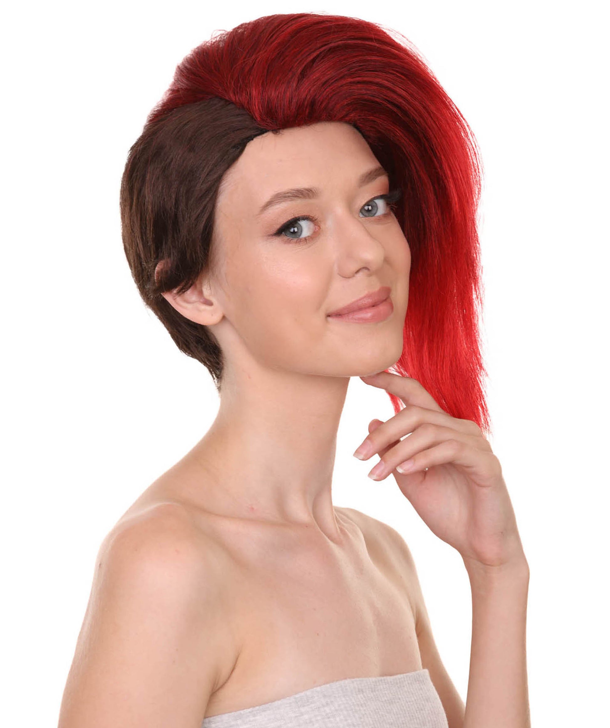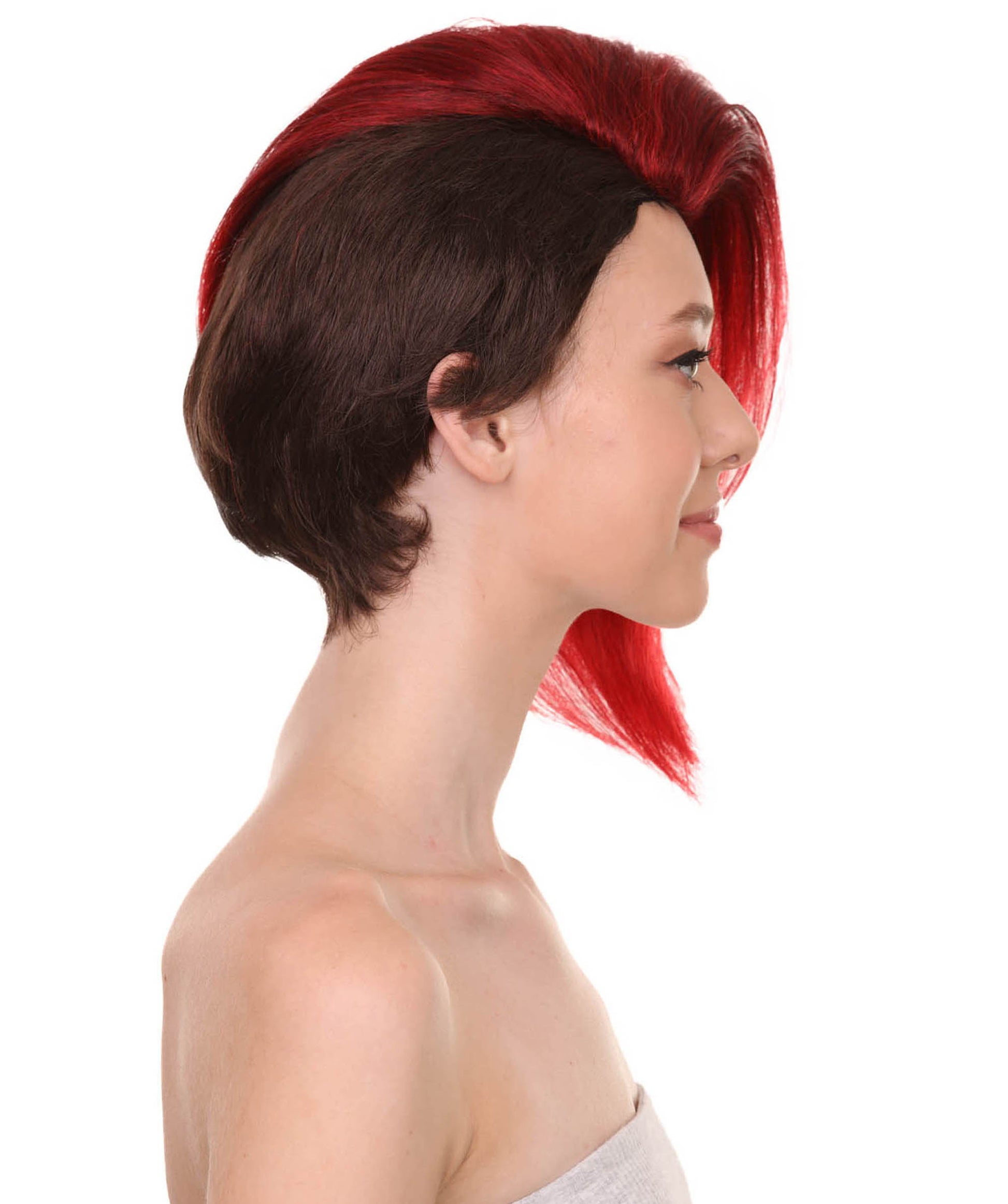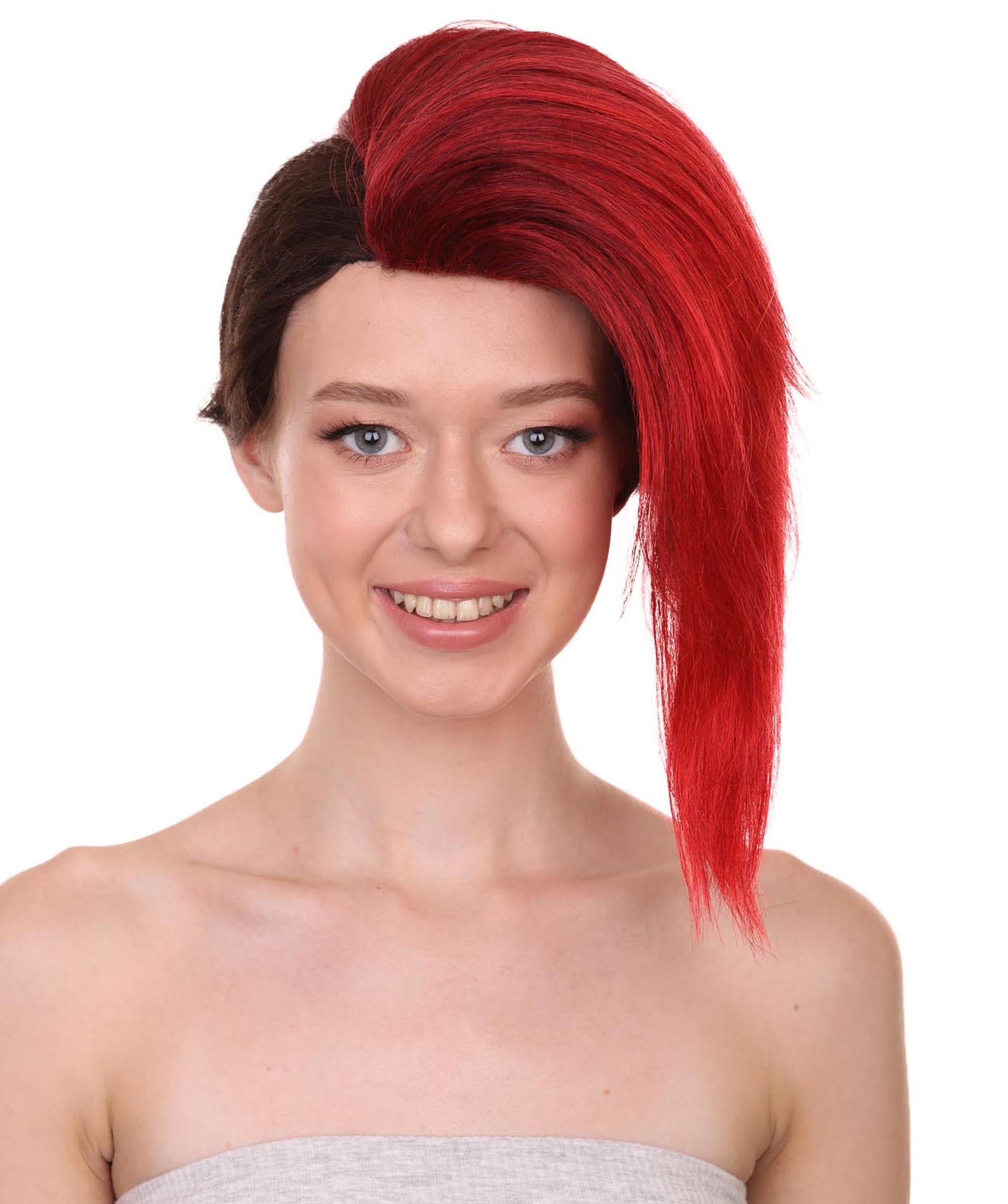 プレミアムハロウィンパーティーレディ H-5467 ミディアムレングス レッドブラックバレリーパンクウィッグ 赤と黒