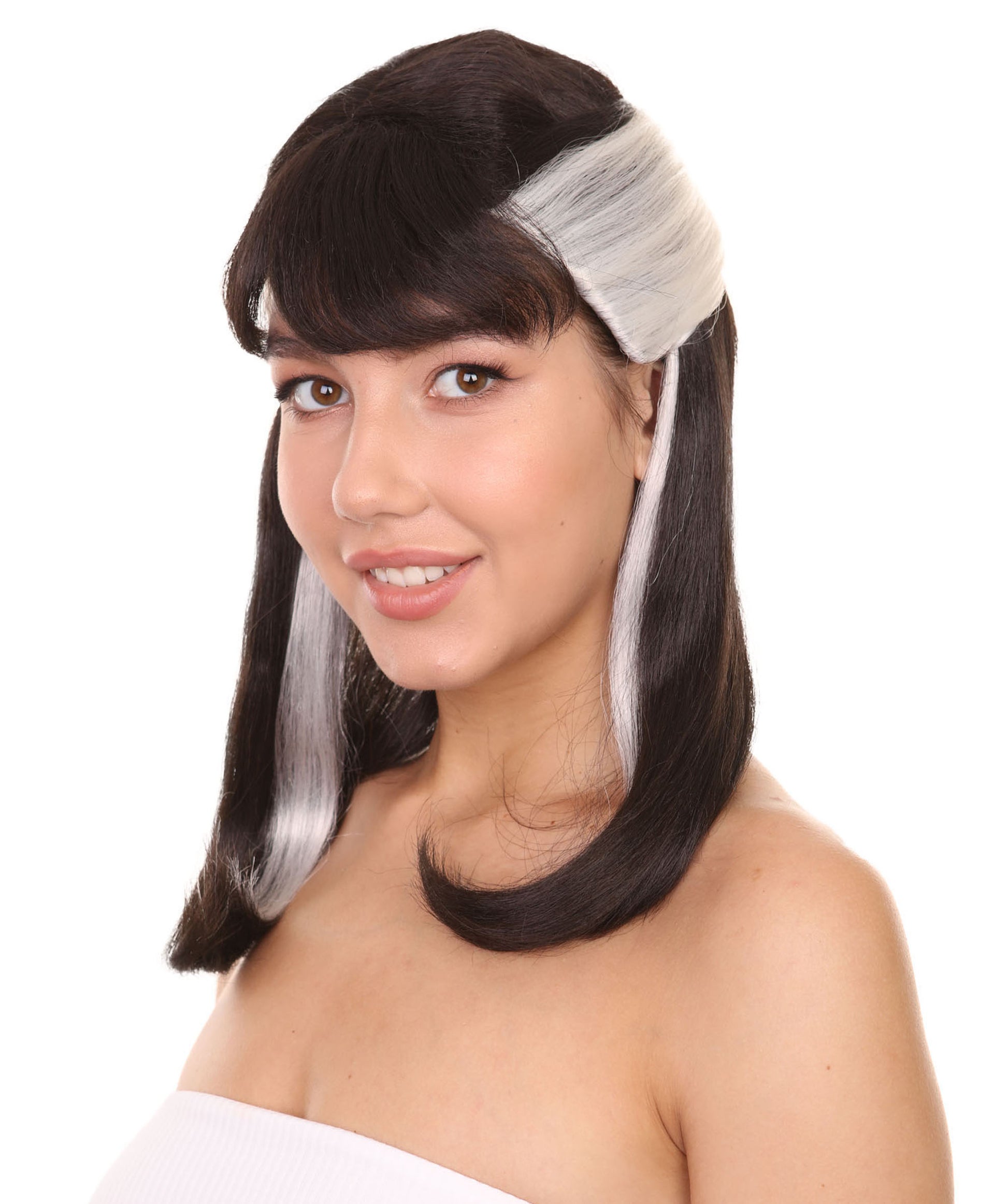 プレミアムハロウィンパーティーレディ H-5469 ミディアムレングス ブラックホワイト ウィザード ナルシッサウィッグ 黒と白