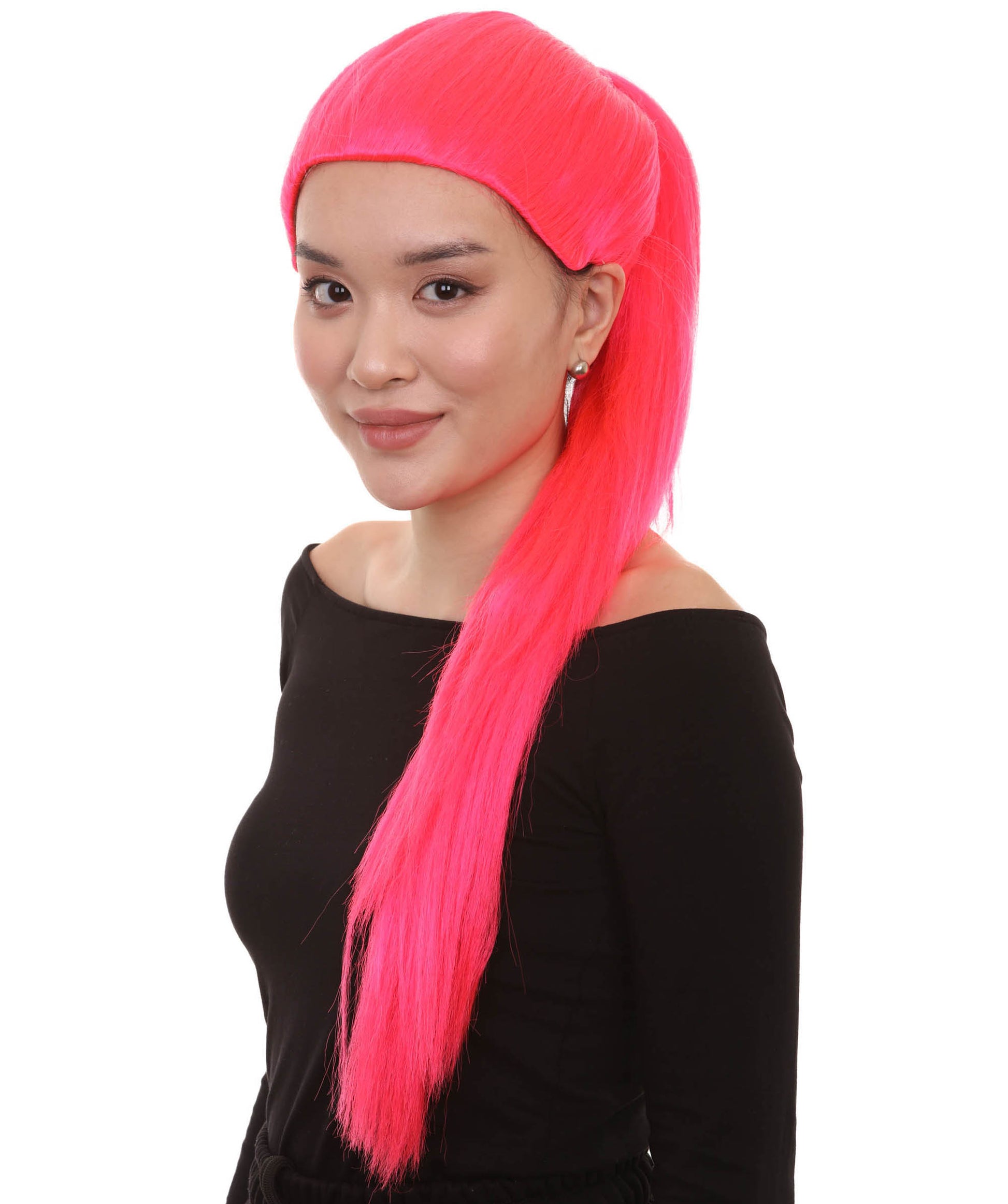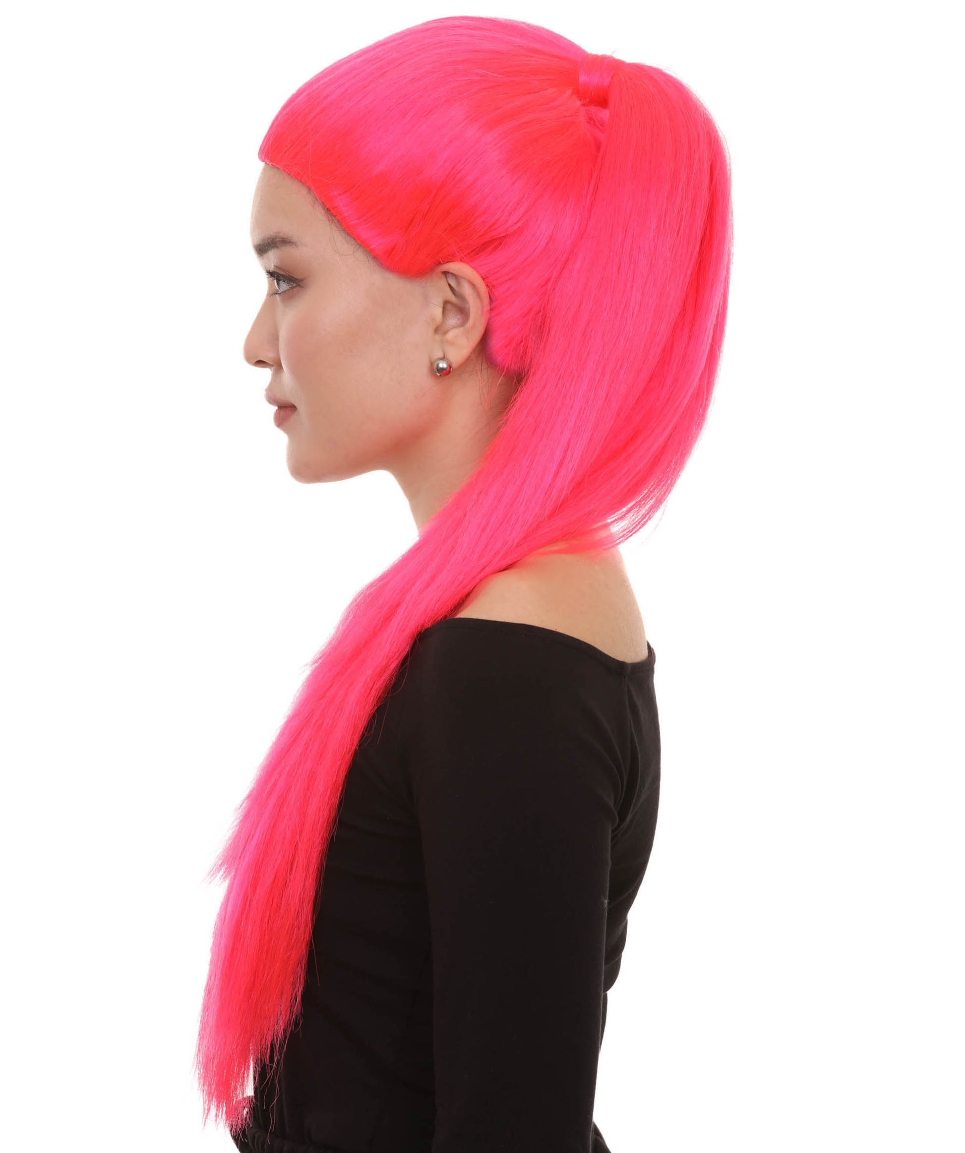 シマーポニーテールピンクウィッグ H-3846 ポップスター ワンサイドポニーテール セレブリティウィッグ プレミアム 通気性の良い キャップレスキャップ