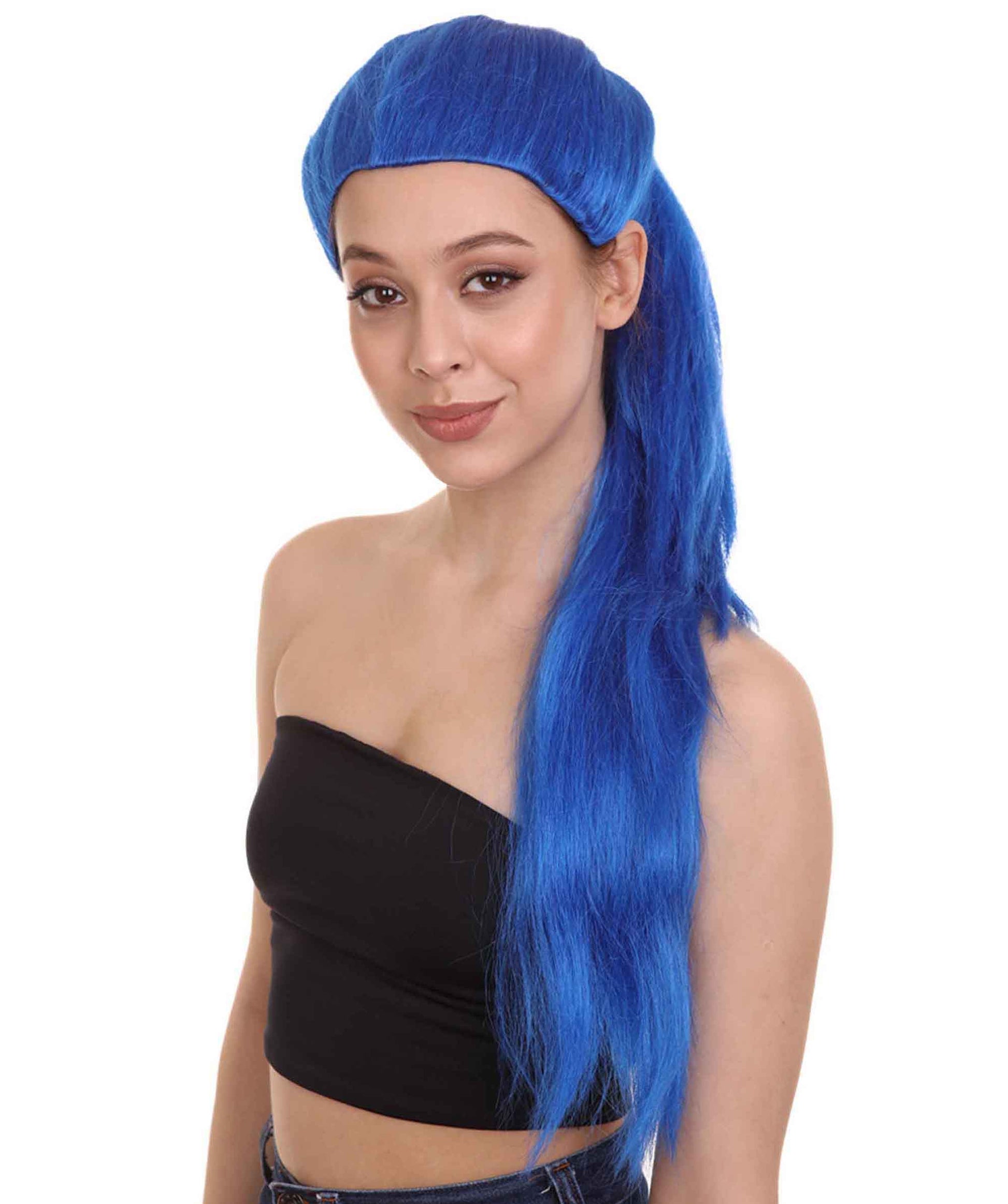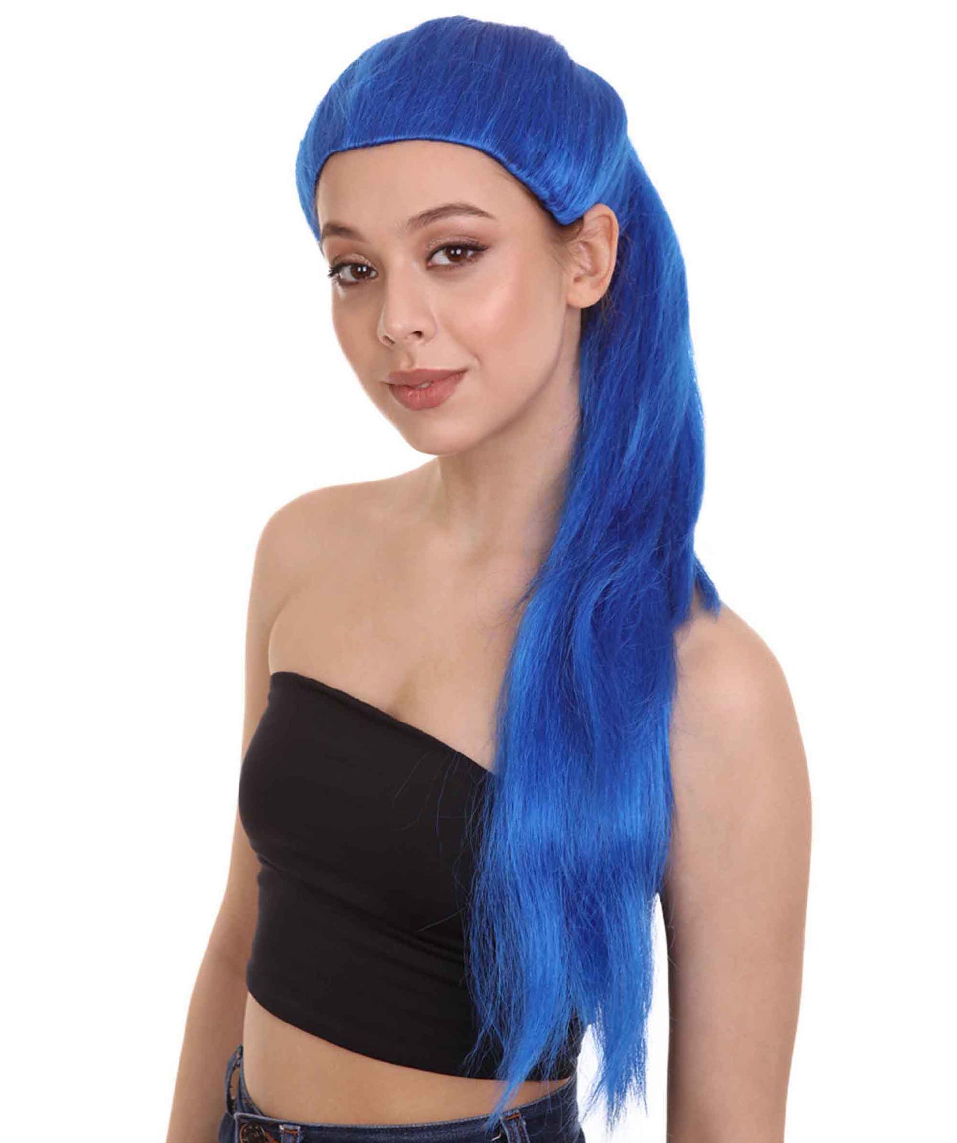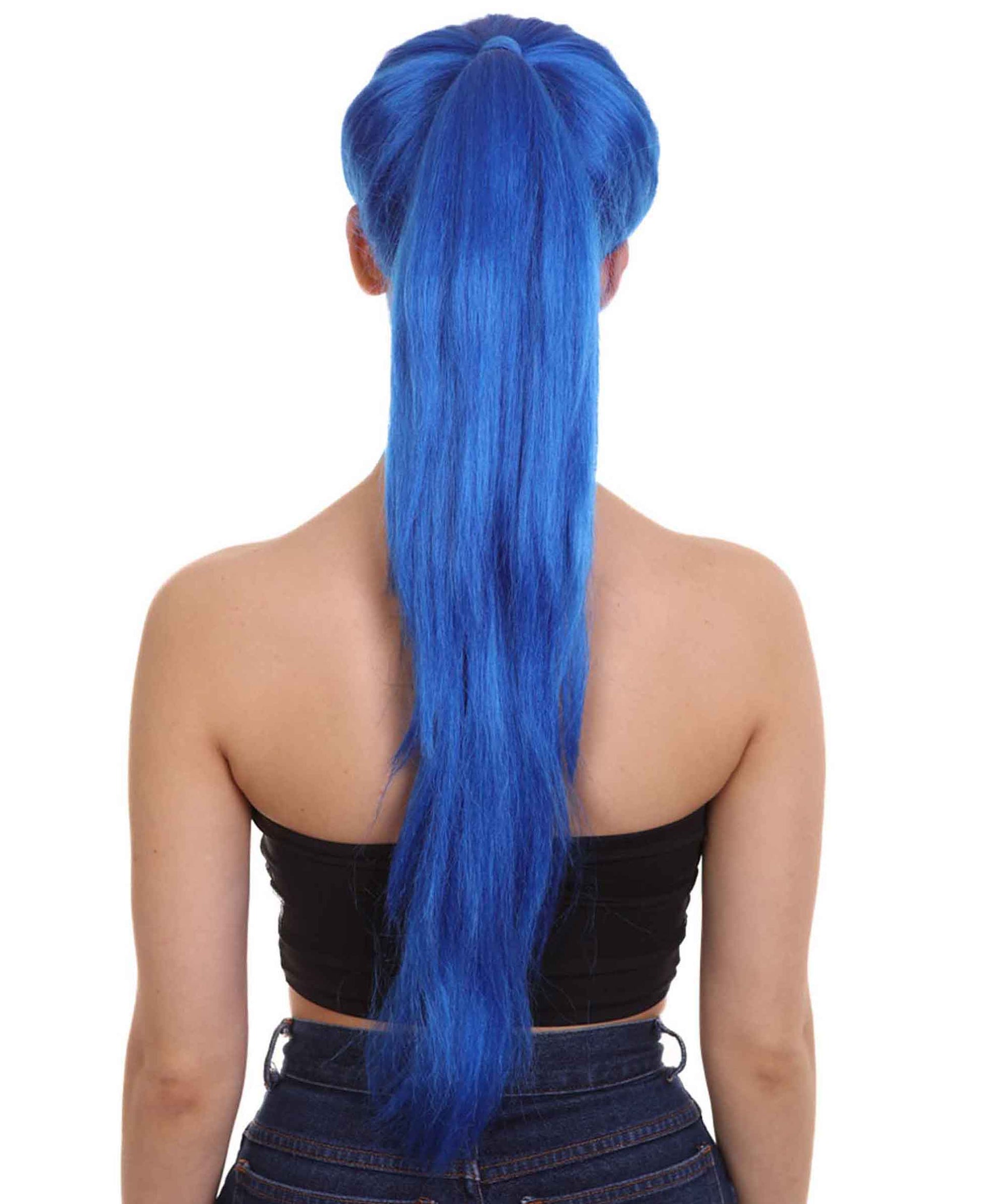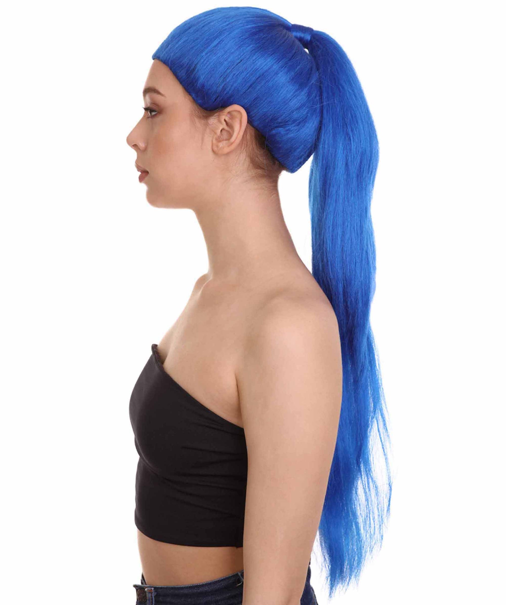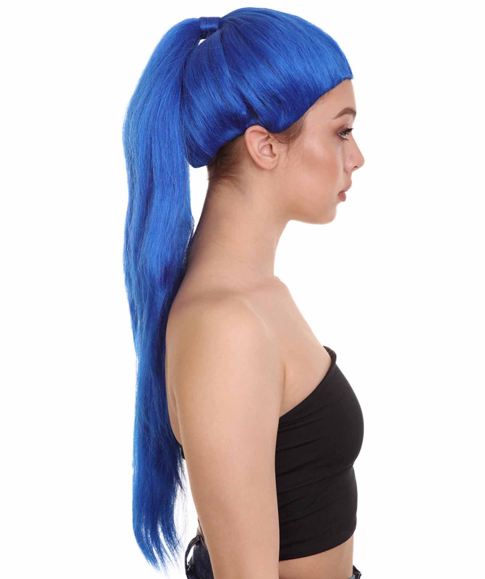 シャインポニーテールブルーウィッグ H-3847 ポップスター ワンサイドポニーテール セレブリティウィッグ プレミアム 通気性の良い キャップレスキャップ