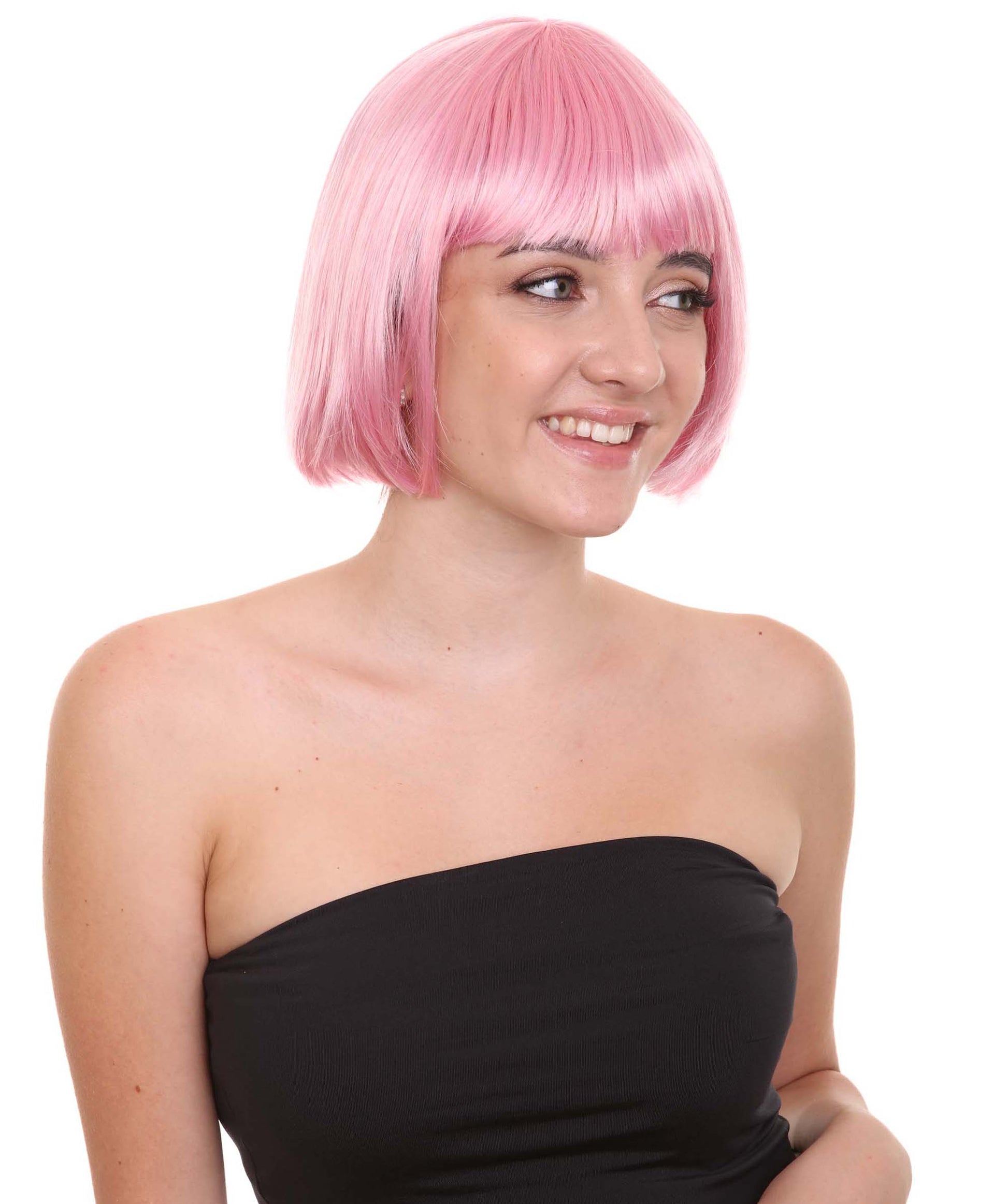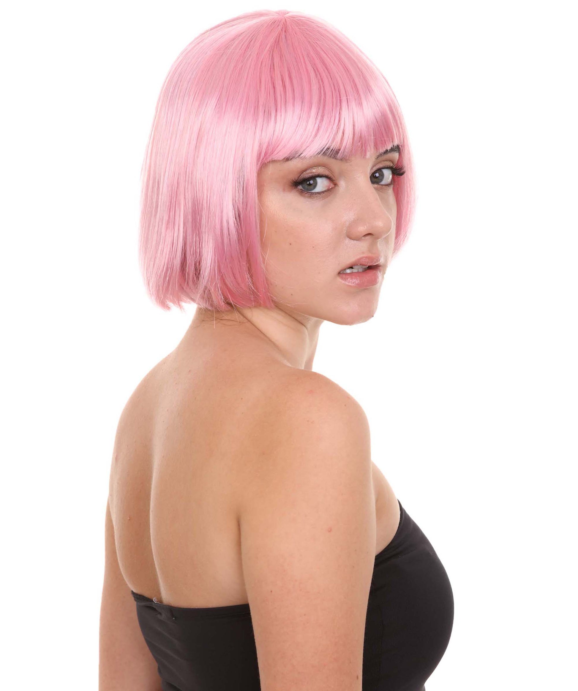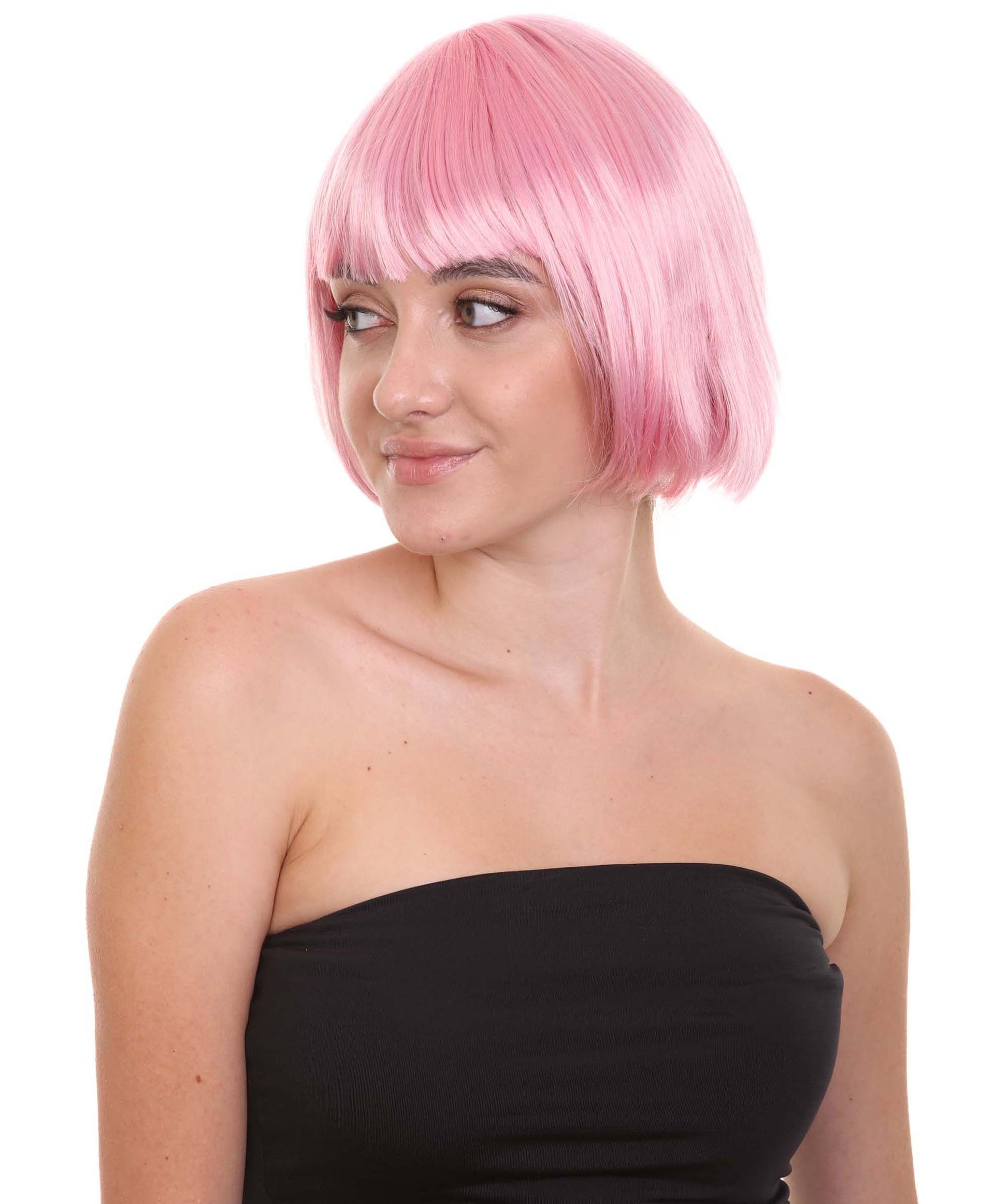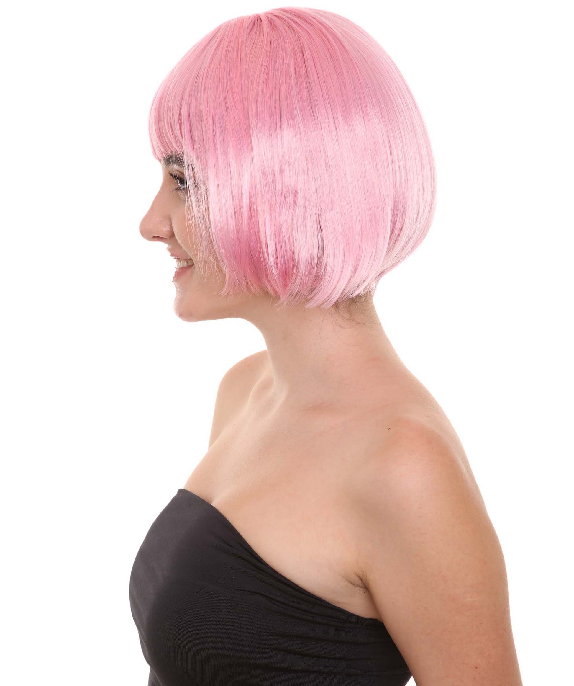 ショートボブライトピンク女性用ウィッグコレクション H-3284 パーティー準備完了の華やかなコスプレハロウィンウィッグ プレミアム通気性のあるキャップレスキャップ