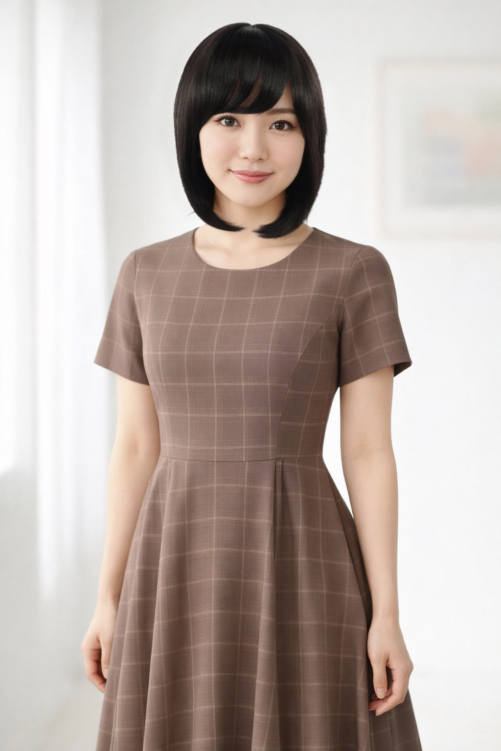 あごのラインに沿ったストレートボブが、顔立ちをすっきり見せ、知的で洗練された印象に。