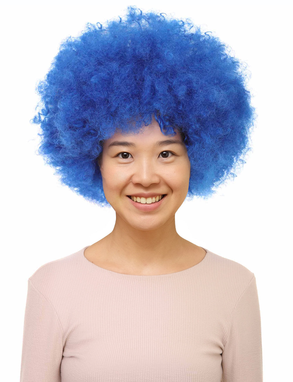 ユニセックス ブルー アフロ ピエロ ウィッグ ジャンボ カーリー コスプレ ハロウィン ウィッグ プレミアム通気性キャップレスキャップ H-557