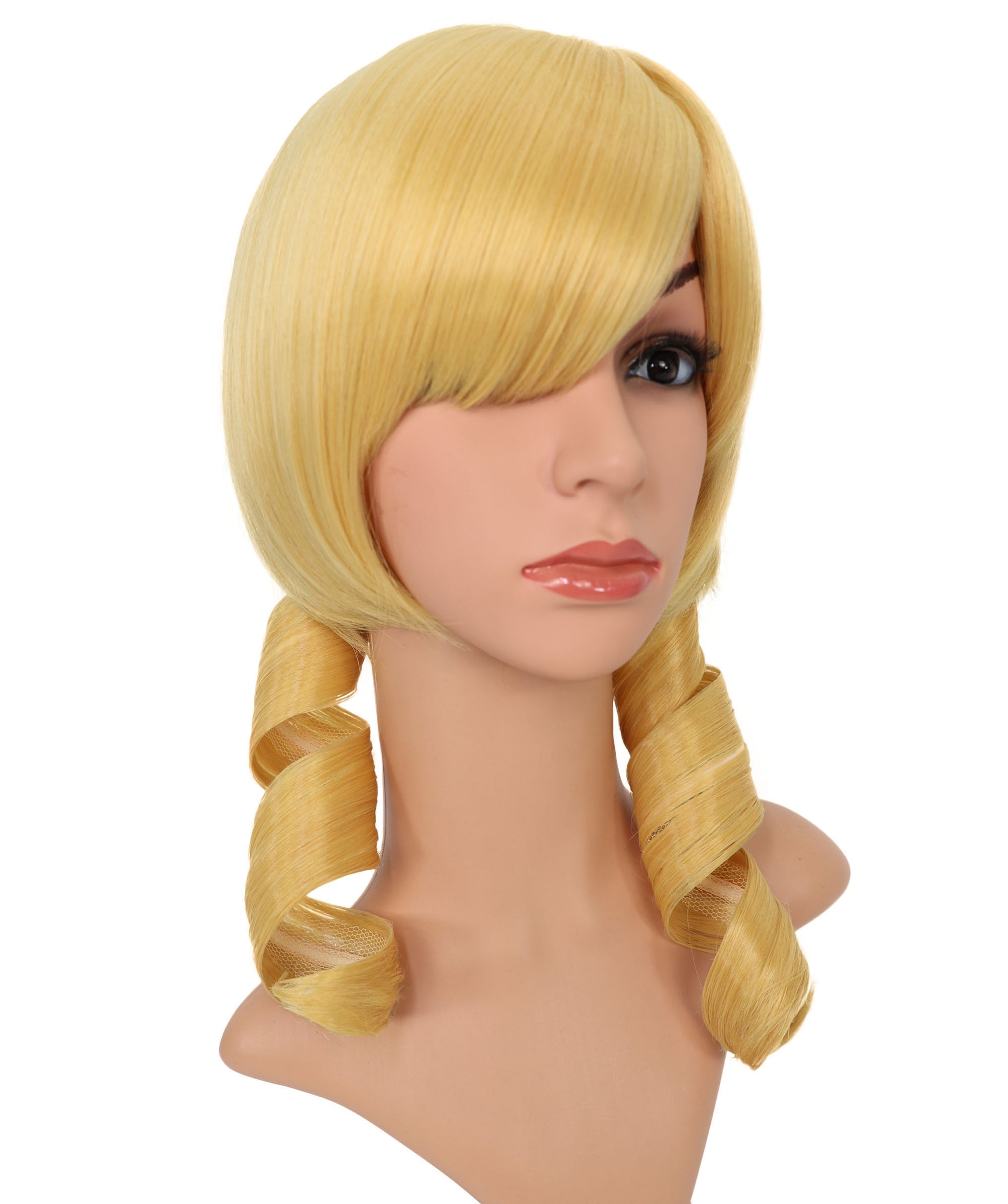 印象的な16インチの長さのこのウィッグは、魅力的なライトブロンドカラーで、サイドに流した前髪とツイストツインテールが、あなたのスタイルに個性と立体感を添えます。軽量で扱いやすく、初心者にもコスプレのプロにも最適です。
