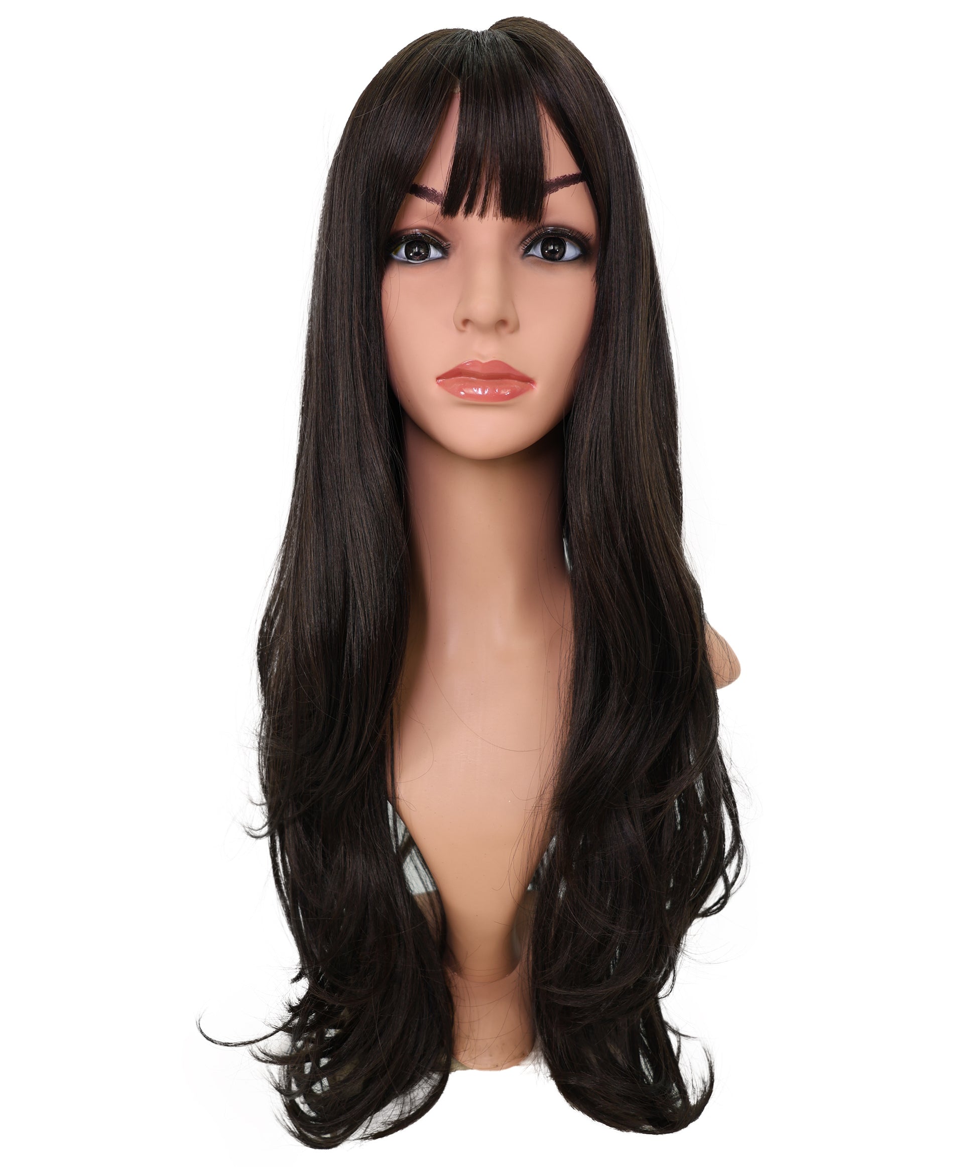 Wigs2you C-119 24インチ ダークブラウン ロングカーリーウィッグ(前髪付き) - 女性用耐熱キャップレスウィッグ