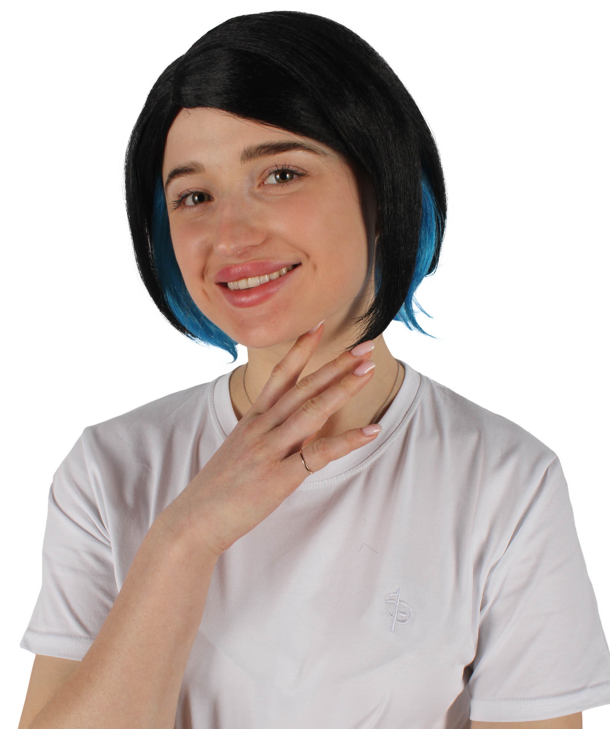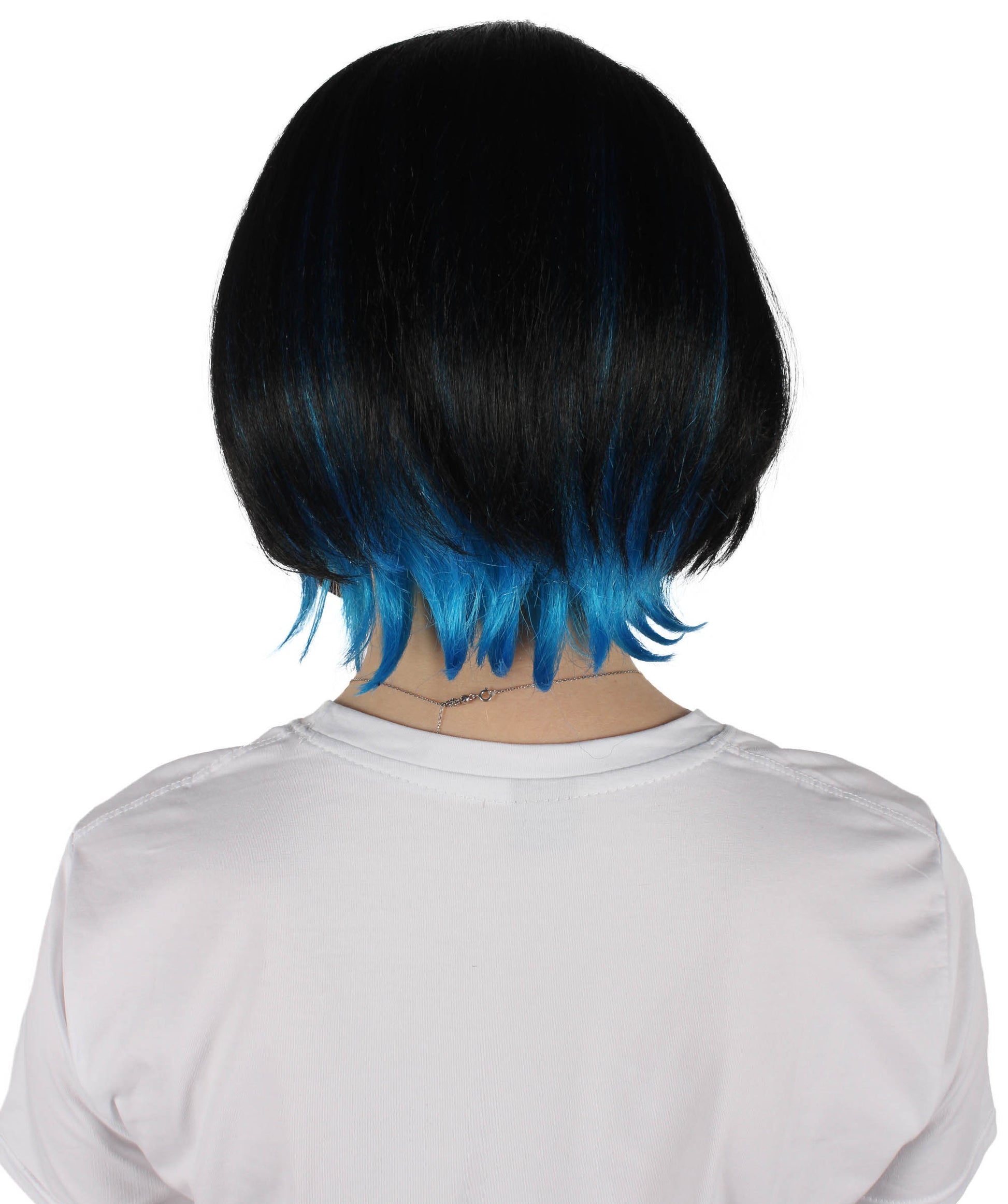 魅惑的なマーキュリー・ウィッチのブラック&ブルーアニメショートウィッグで、最高のハロウィンとコスプレ体験を。アニメキャラクターをイメージしたこのウィッグは、キュートさとミステリアスな雰囲気を演出します。ウィッグはブラックとブルーのカラー。ブラックのトップ部分は印象的なブルーで、イベント全体にミステリアスな雰囲気を演出します。