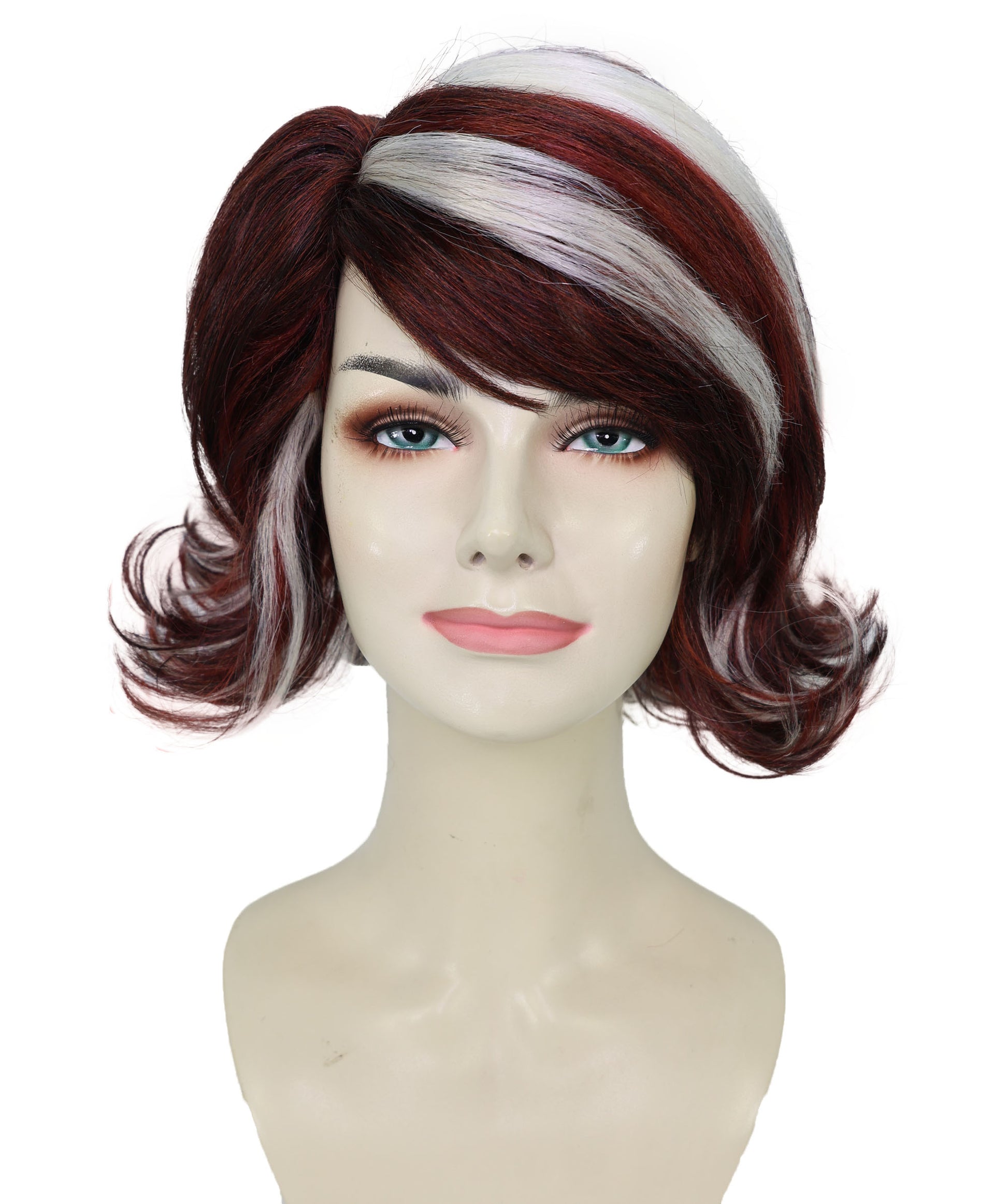 Wigs2you H-6974 大人女性用90年代風バーガンディ&モカショートレイヤードウィッグ(シックなハイライト入り)|レトログラムヘアピース|ハロウィンに最適|通気性のあるキャップレスキャップ