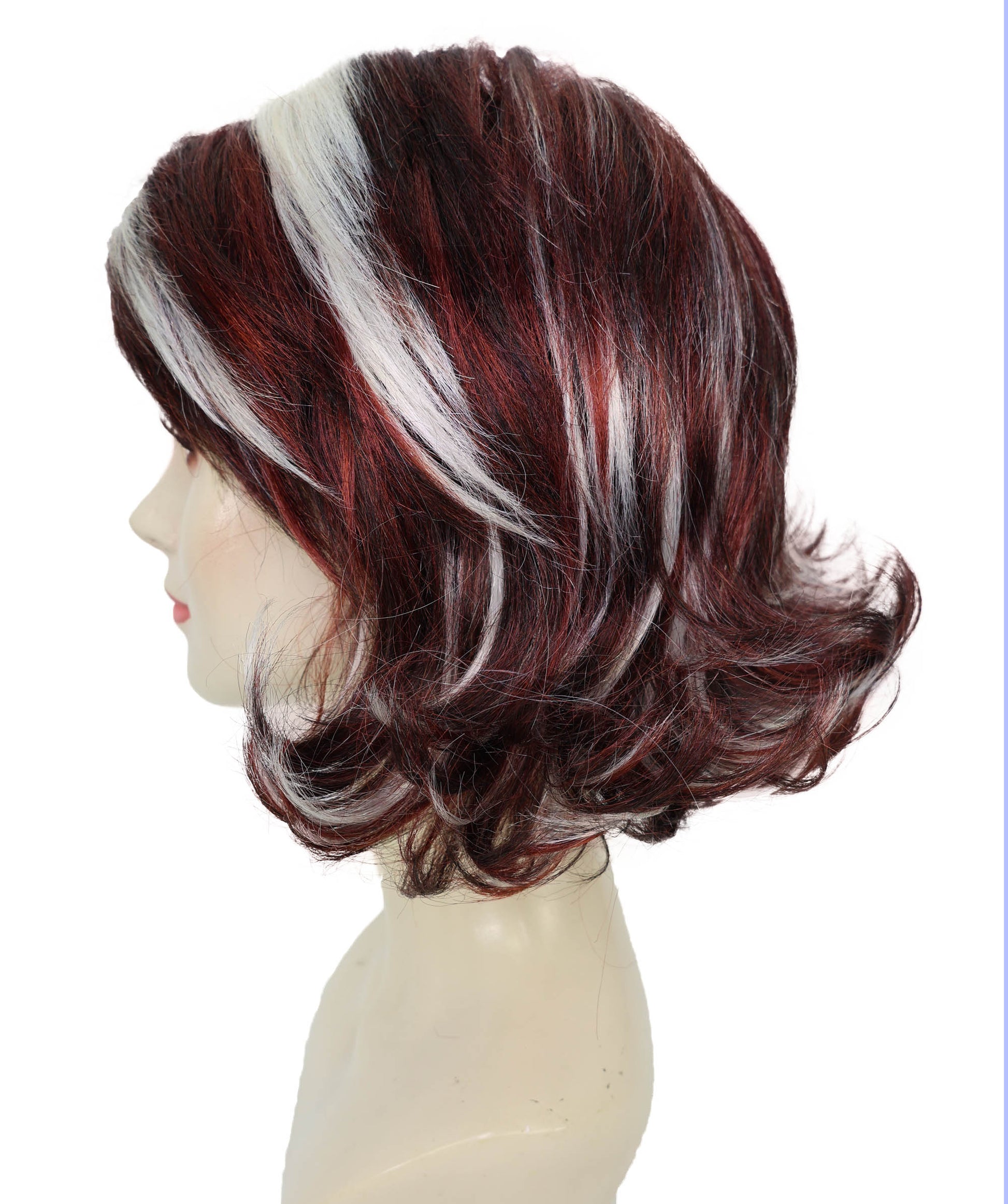 大人の女性向け、90年代風バーガンディ&モカショートレイヤードウィッグで、大胆で華やかな90年代にタイムスリップ。これからのハロウィンイベントにもぴったりです。このスタイルは、90年代を象徴するテレビや映画に登場したママたちの、力強く、スタイリッシュで、忘れられない魅力を、著作権のある名前は一切使わずに表現しています。美しいショートレイヤードウィッグは、深みのあるバーガンディとモカのトーンに、程よく配置されたハイライトをブレンドし、洗練されたながらも遊び心のあるルックを演出します。