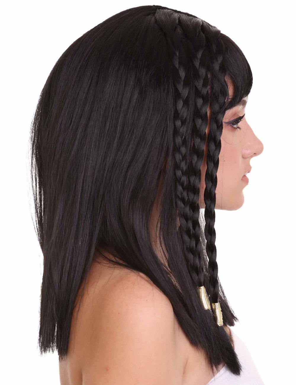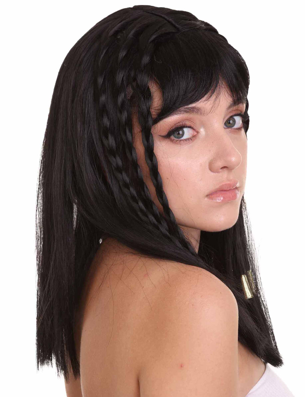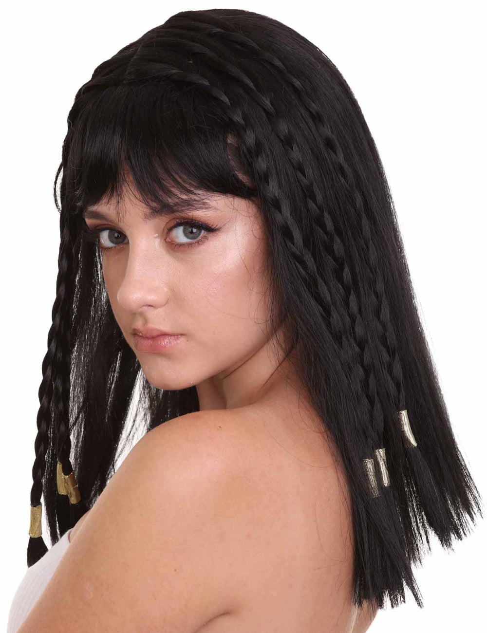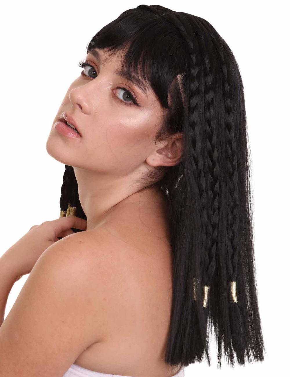 クイーンクレオパトラはしばしば華やかな髪型を着用して描かれており、このクリオパトラ女性用ウィッグは彼女の象徴的なスタイルを捉えることを目指しています。古代エジプトのテーマが必要な仮装パーティーやハロウィン、劇場製作に人気の選択肢です。