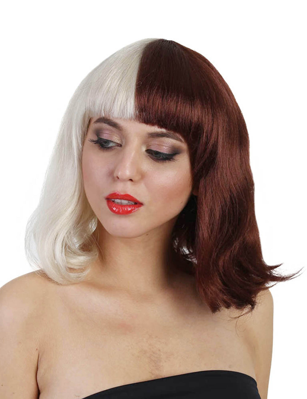このショート ストレート ウィッグは、有名な歌手の女性の髪型を再現したものです。ウィッグには大きな赤いリボンが付いており、ブラウンとブロンドのセレブ ウィッグのような華やかなスタイルが特徴です。合成繊維で作られているため、通気性のあるキャップレスキャップが付いており、着用者は快適に過ごすことができます。このウィッグは、特別な日に個性的なスタイルを求める人々にとって、素晴らしい選択肢です。
