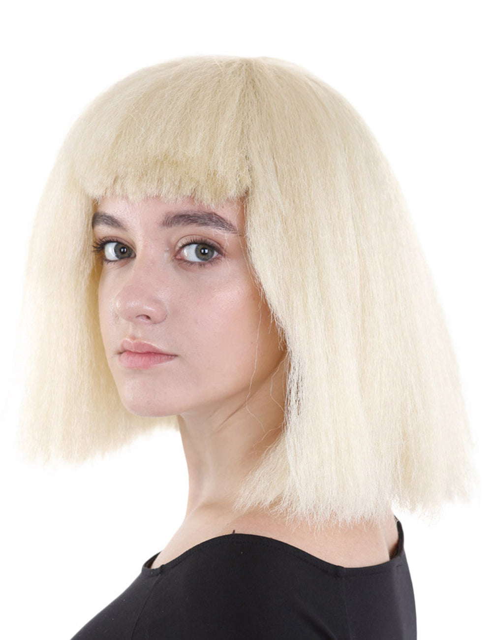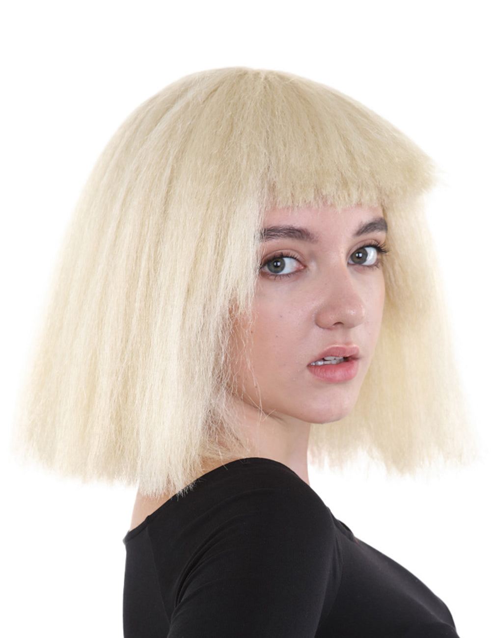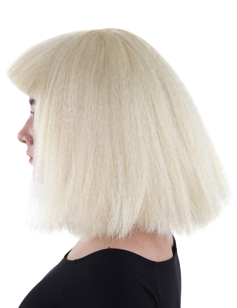 このユニークな2色トーンのボブチンレングスウィッグは、バングス付きです。このポップシンガー「Sia」のスタイルのコスプレアイテムは、どんなイベントでもどんな衣装でも着用できます。彼女の最後のツアーに「懐かしい」思いをしているか、お気に入りのポップディーバとしてのコスプレを楽しんでいるかに関係なく、このウィッグはあなたをオージーの歌姫に無理なく変身させます。