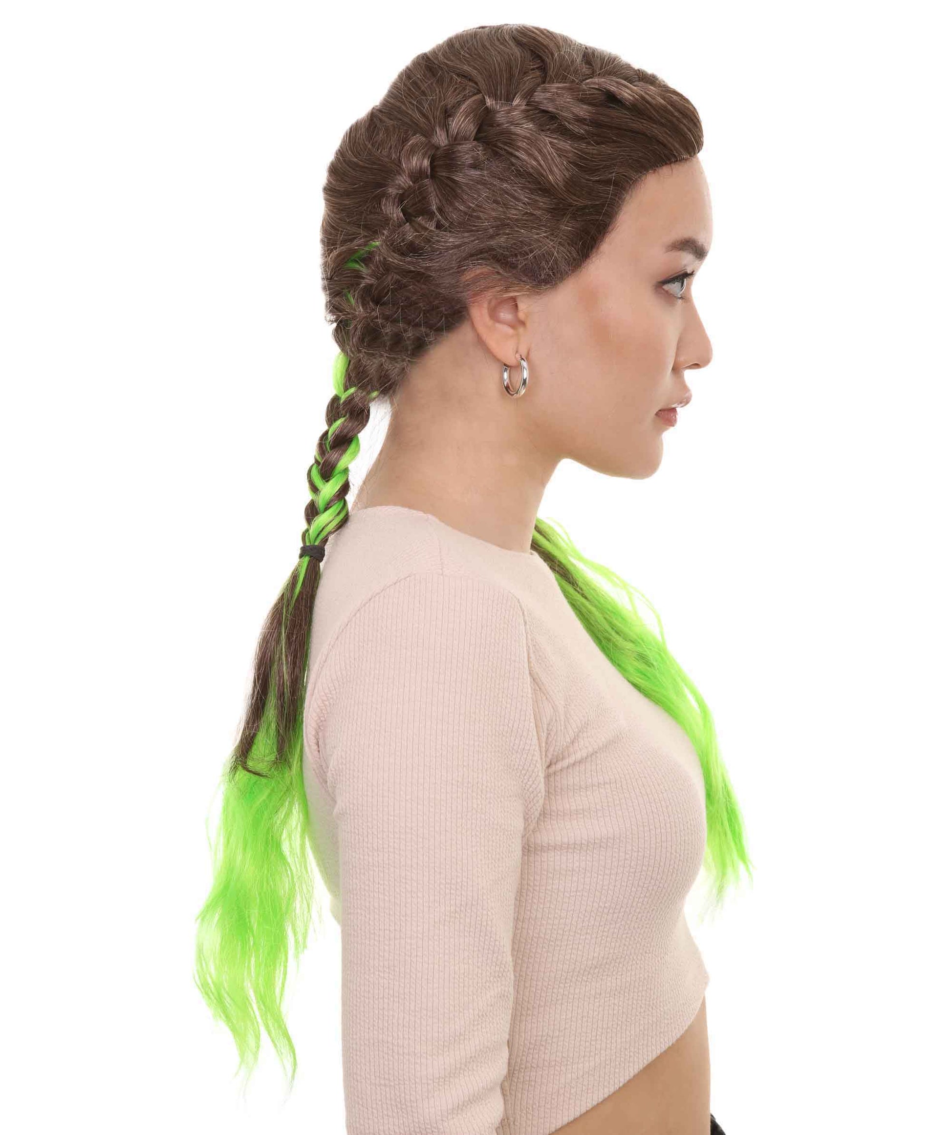 Wigs2you ハロウィンパーティープレミアムレディース H-1859 着け心地が良い とても快適 ブラウン&グリーン三つ編みウィッグ