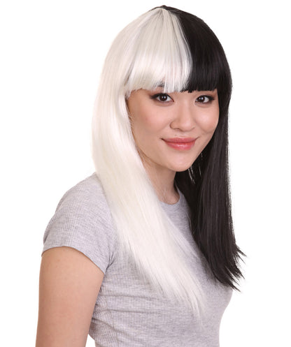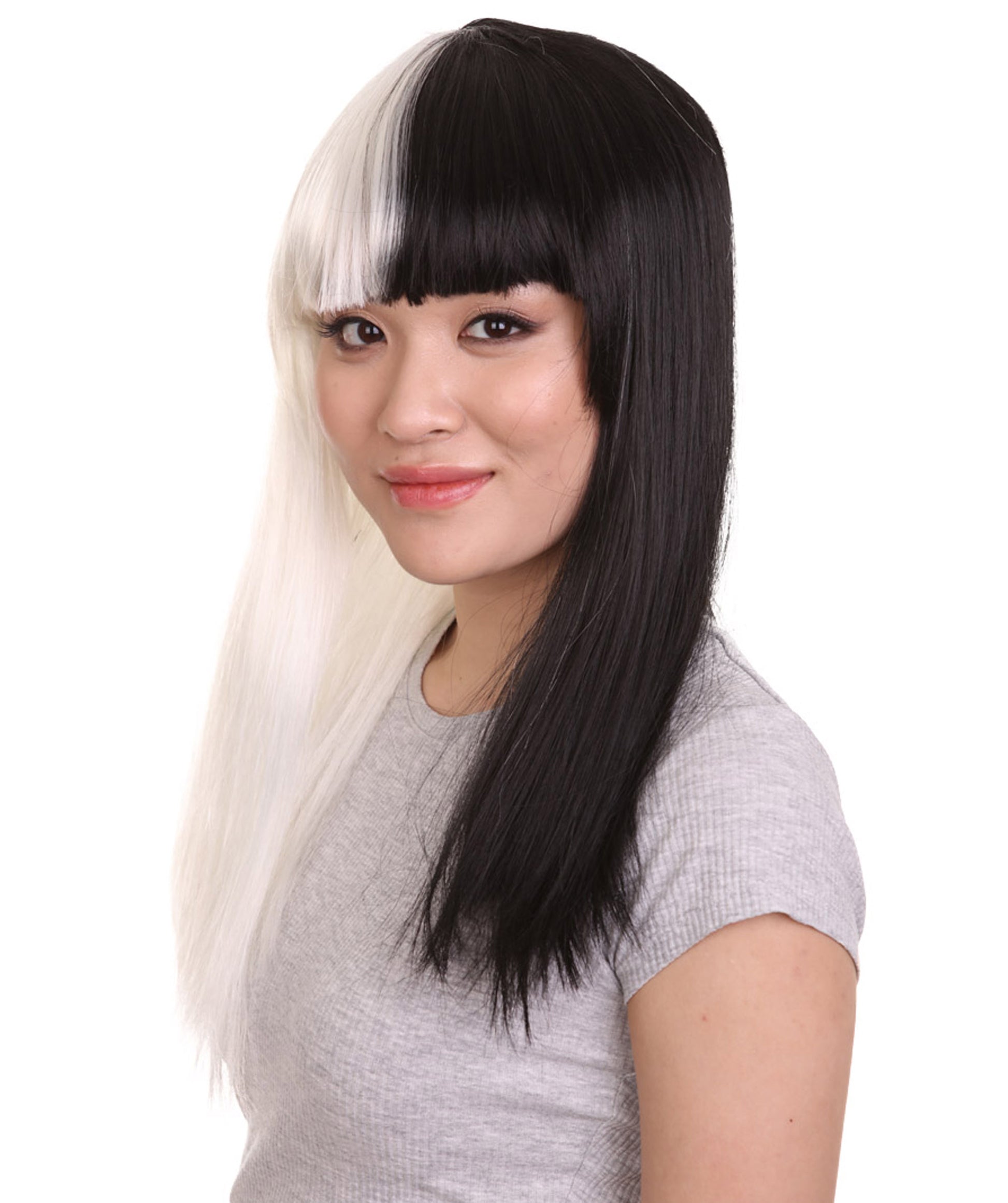 Wigs2youハロウィンパーティープレミアムレディースH-1937 着けやすい 非常に快適 黒と白のロングウィッグ