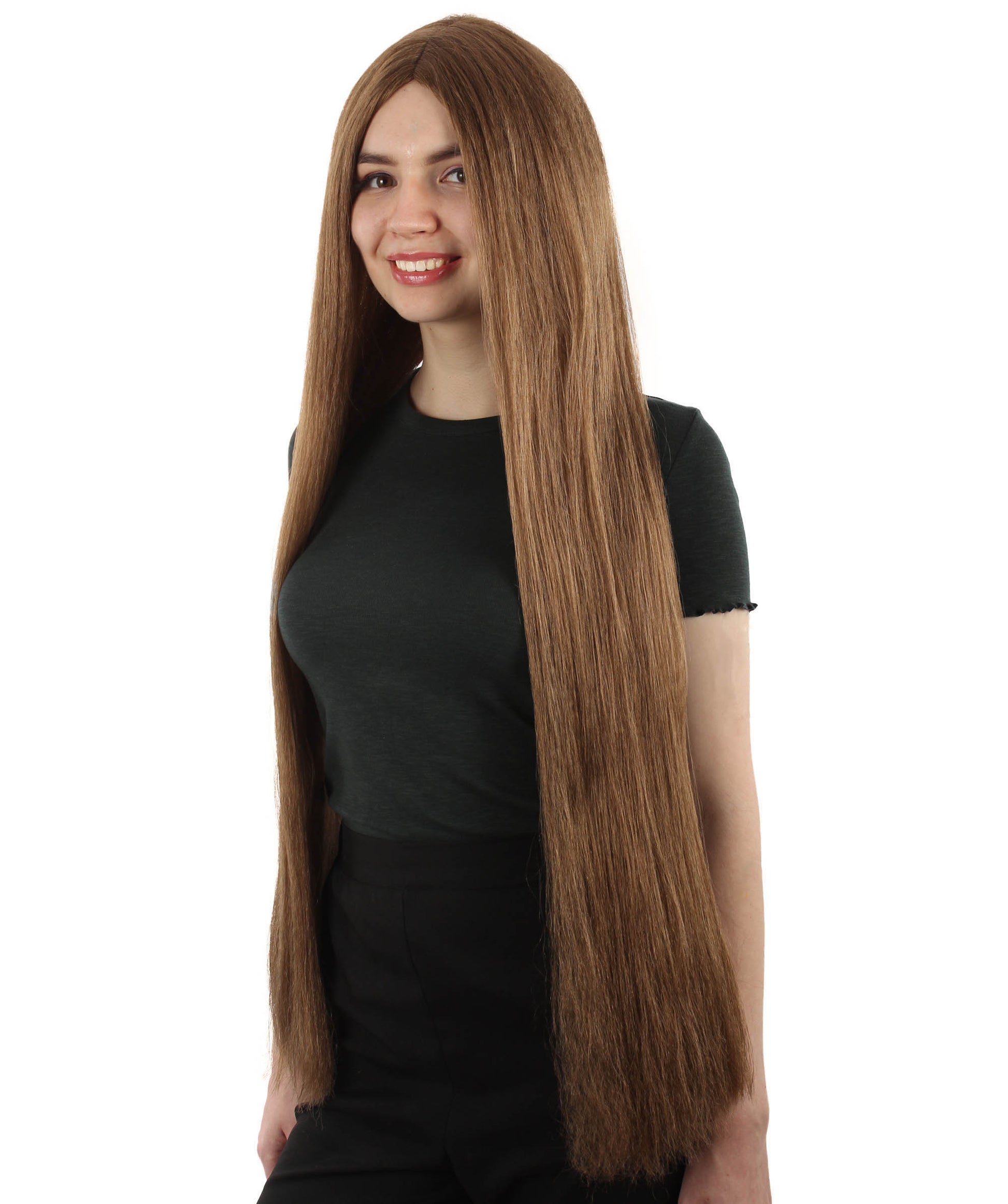 女性 36インチ 超長いウィッグ ライトブラウン H-5379_12 バングなし コスプレ衣装の髪ウィッグ