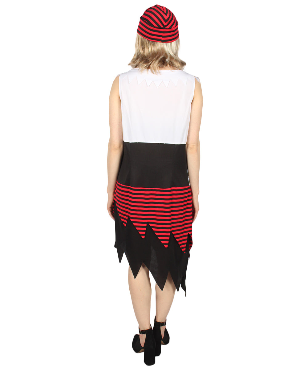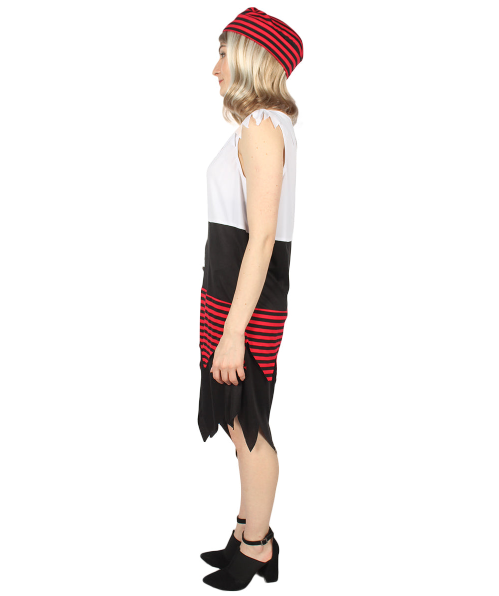 女性 JCO-447 の海賊バッカニアンコスチューム ブラックホワイトとレッドハロウィンコスチューム