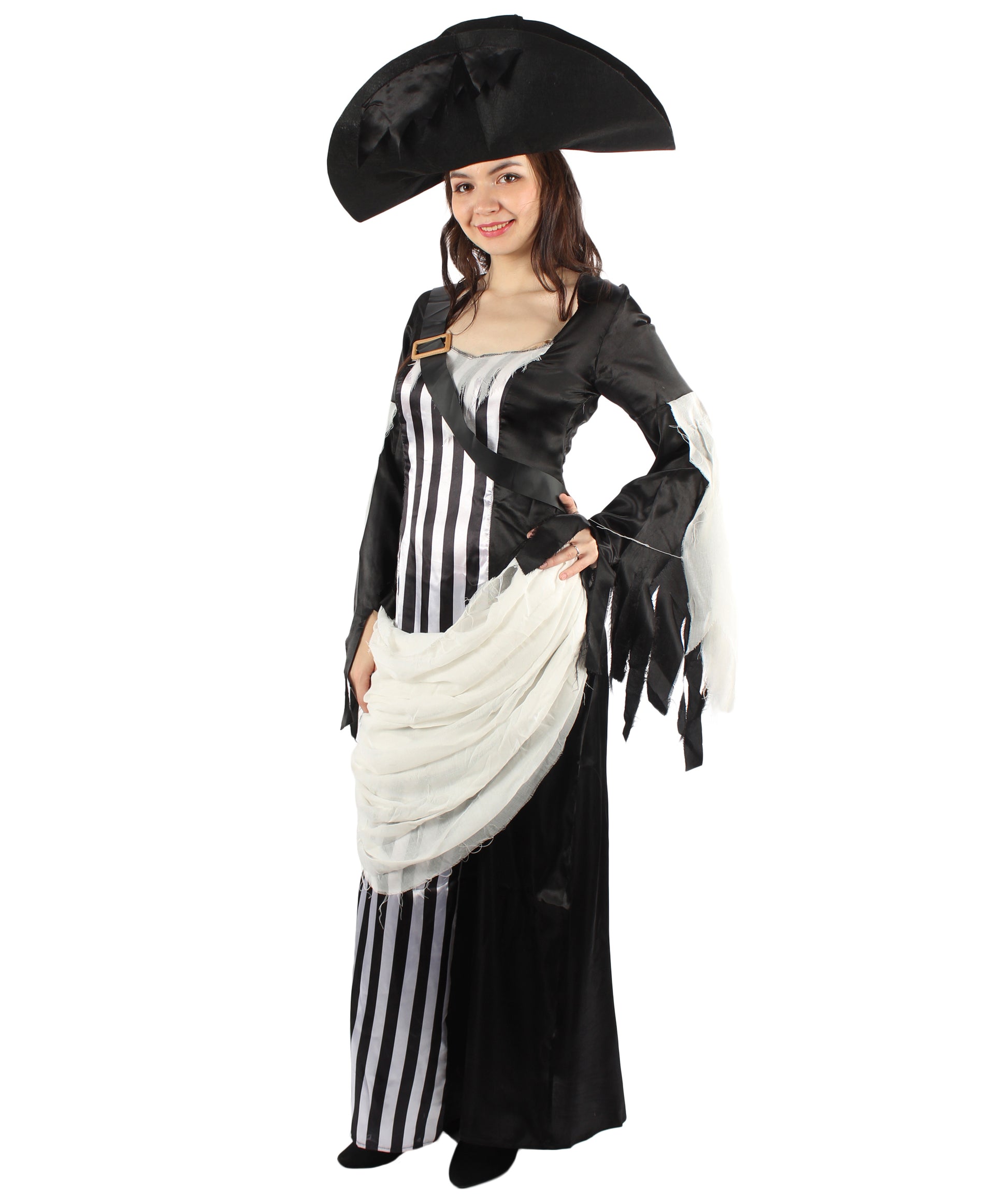 女性 JCO-448 のゴーストパイレートコスチューム ブラックとホワイトコスプレハロウィンコスチューム