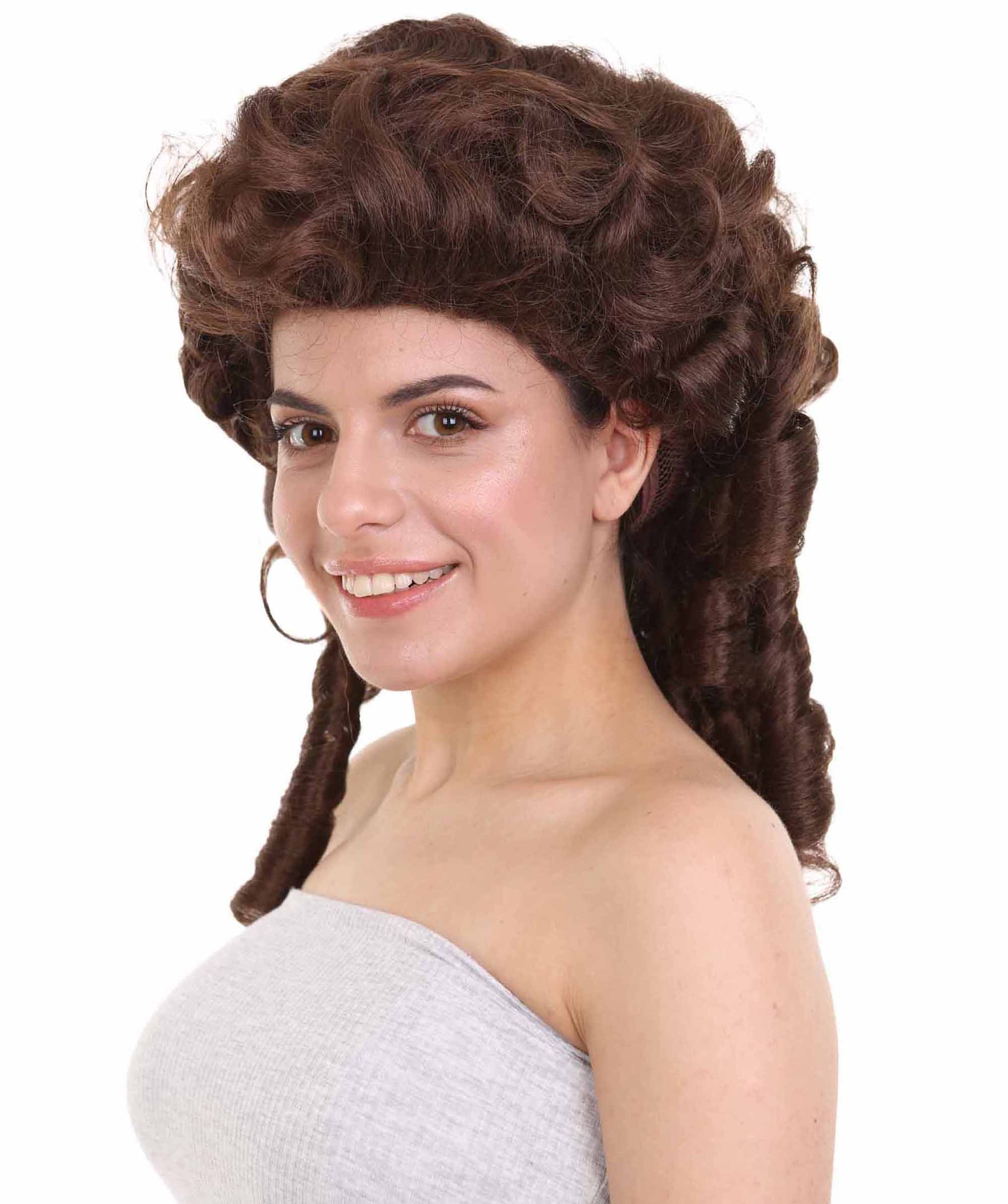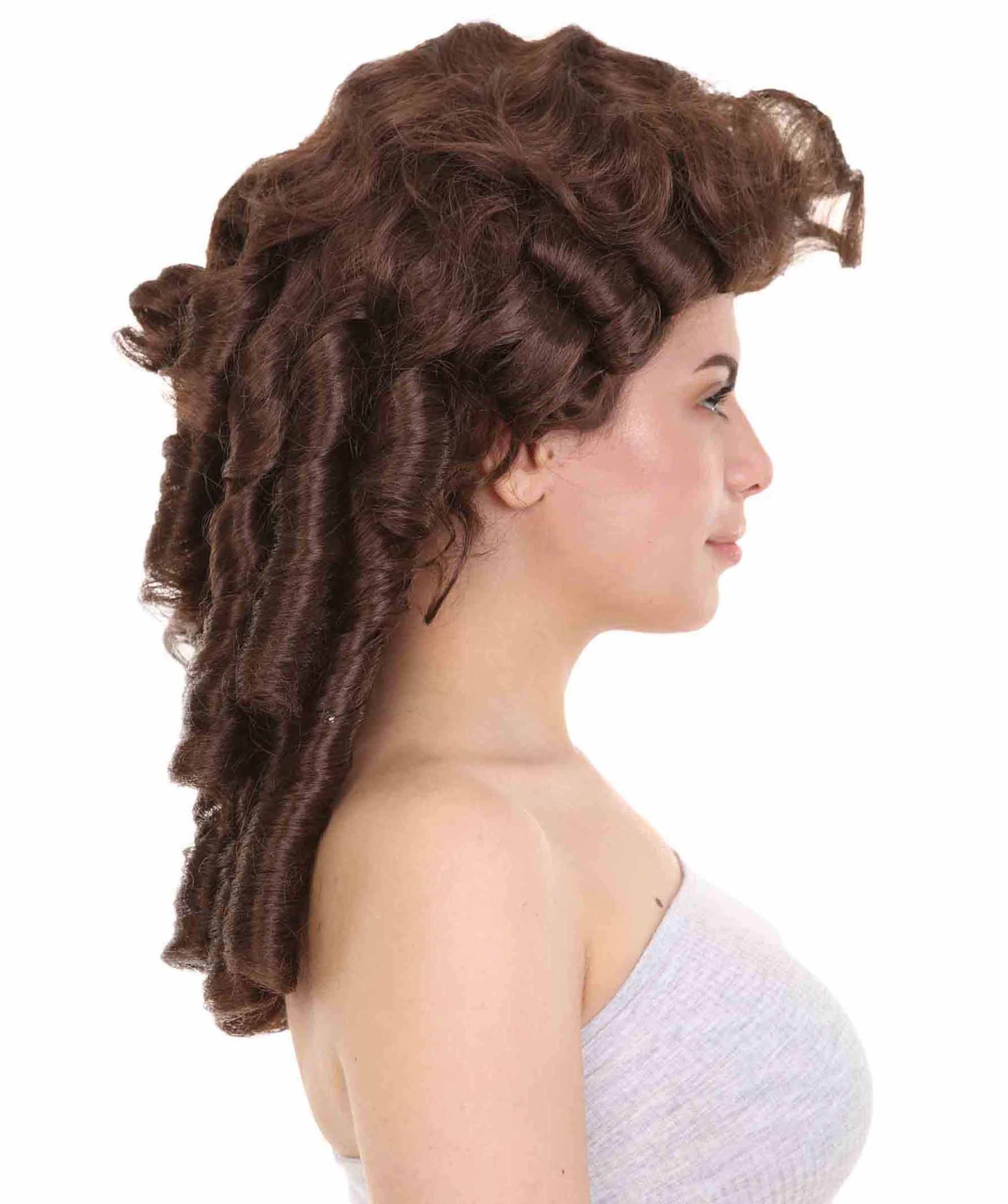 ウィメンズ コロニアルレディブラックウィッグ H-4141 プレミアム通気性のキャップレスキャップ