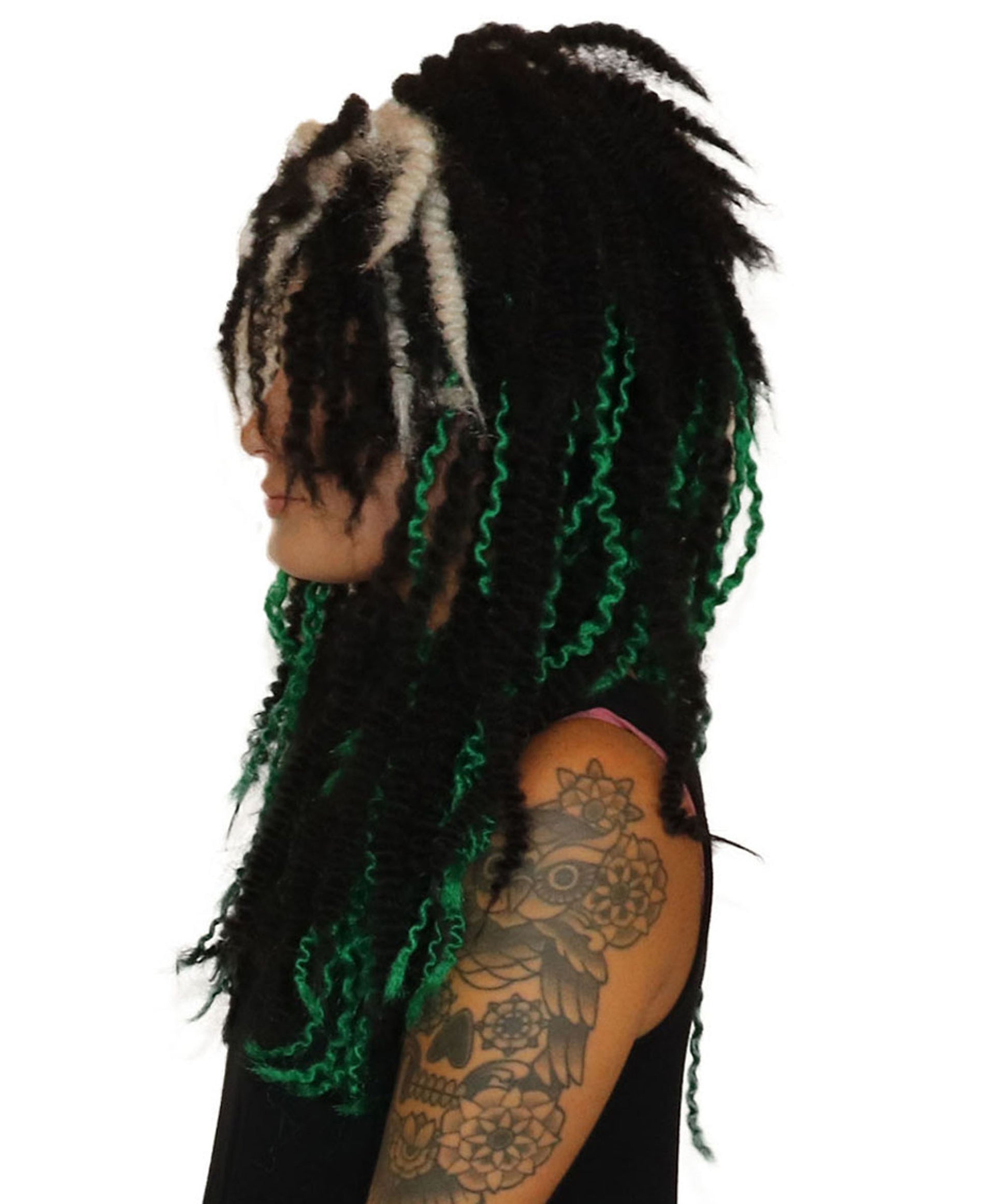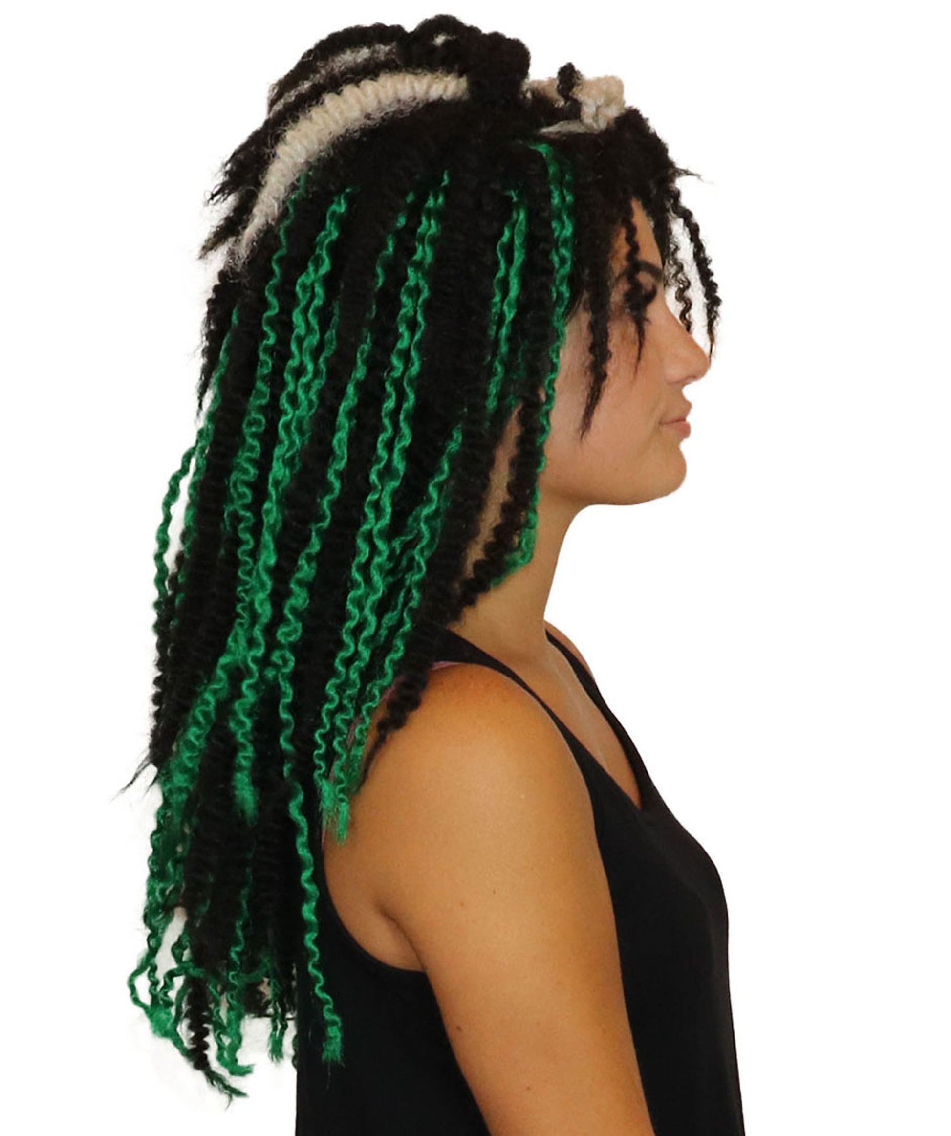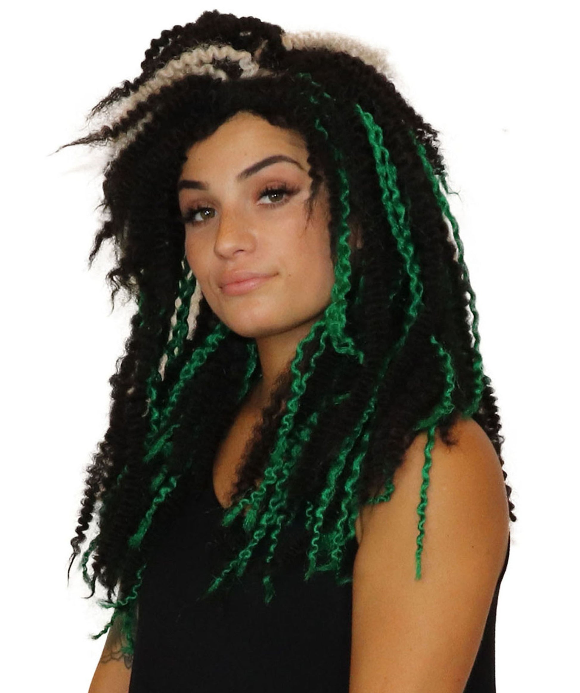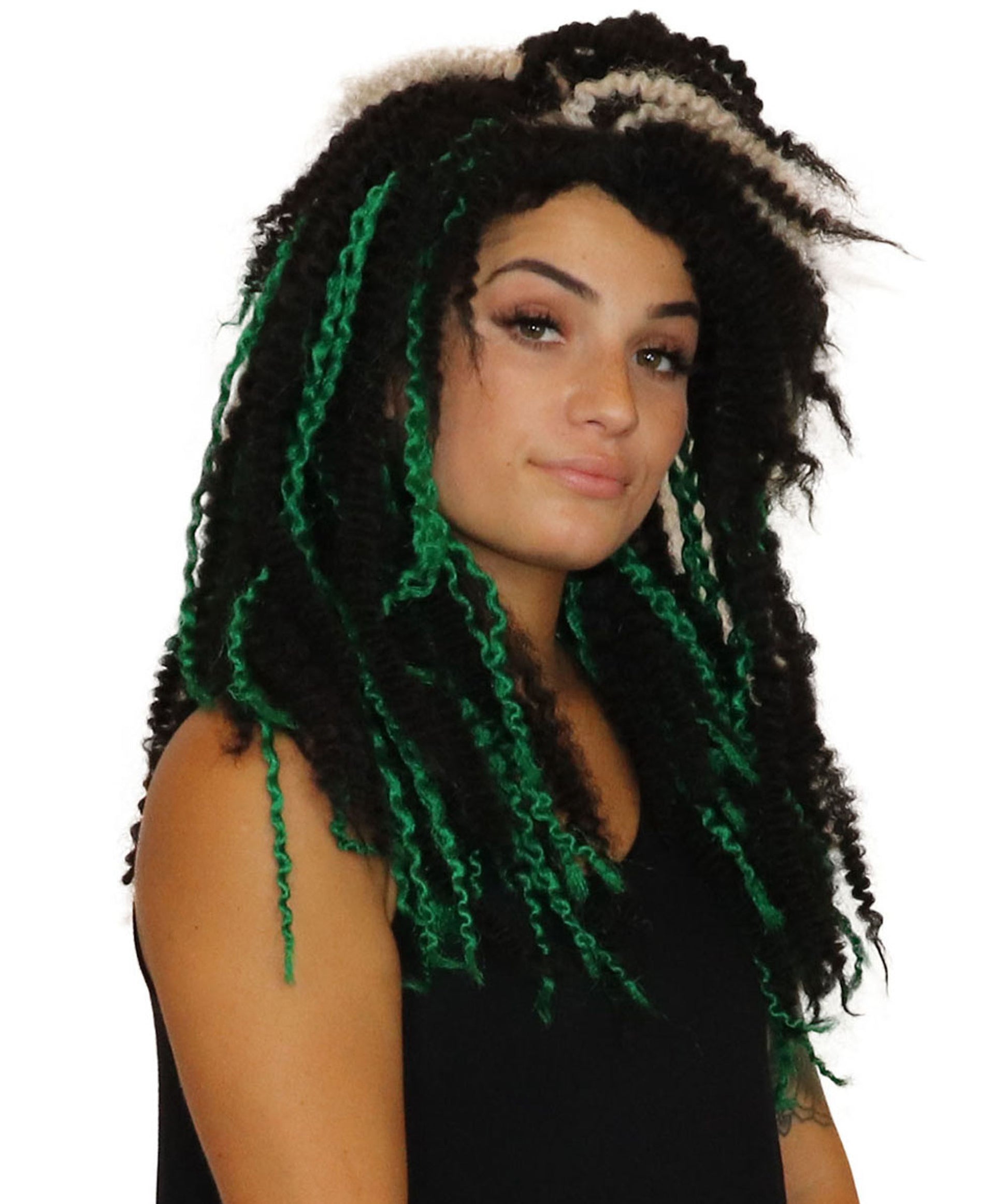 ウィメンズ ドレッドロック ゾンビ スワンプクイーン ブラック&グリーンウィッグ H-4703 プレミアム 通気性抜群 キャップレスキャップ
