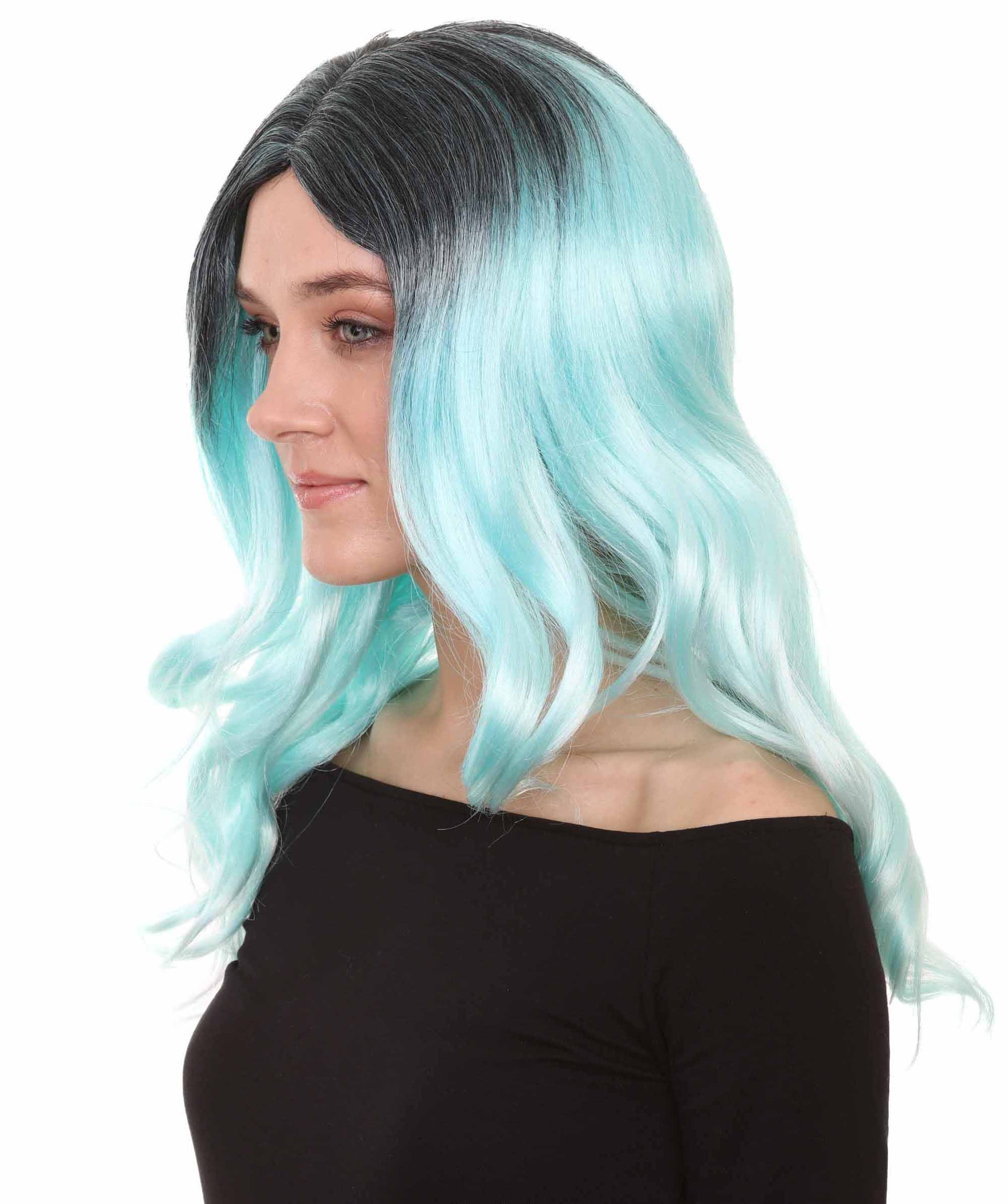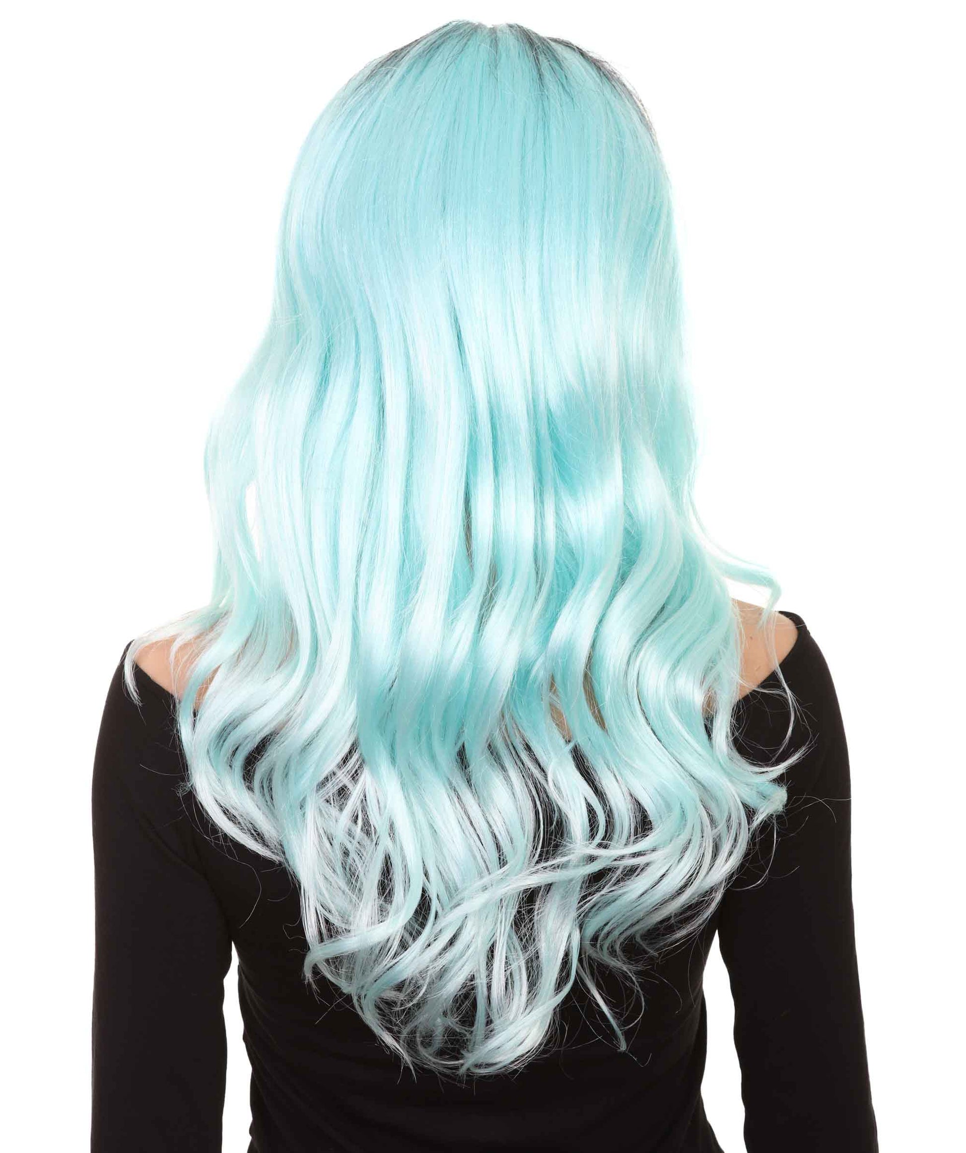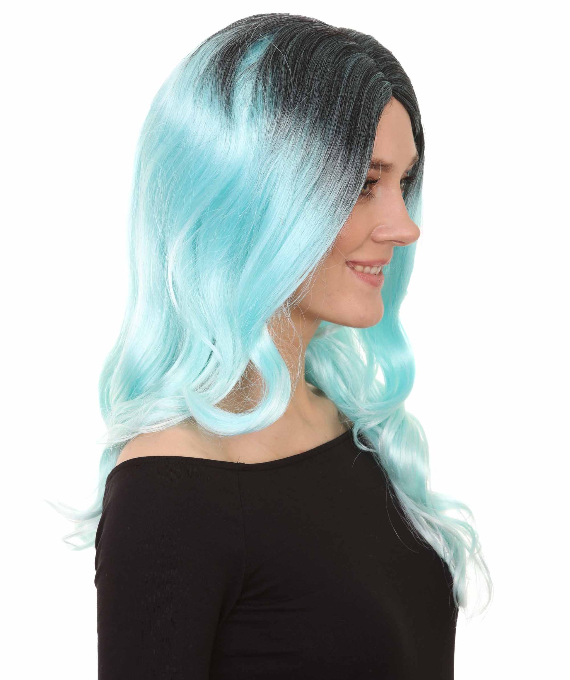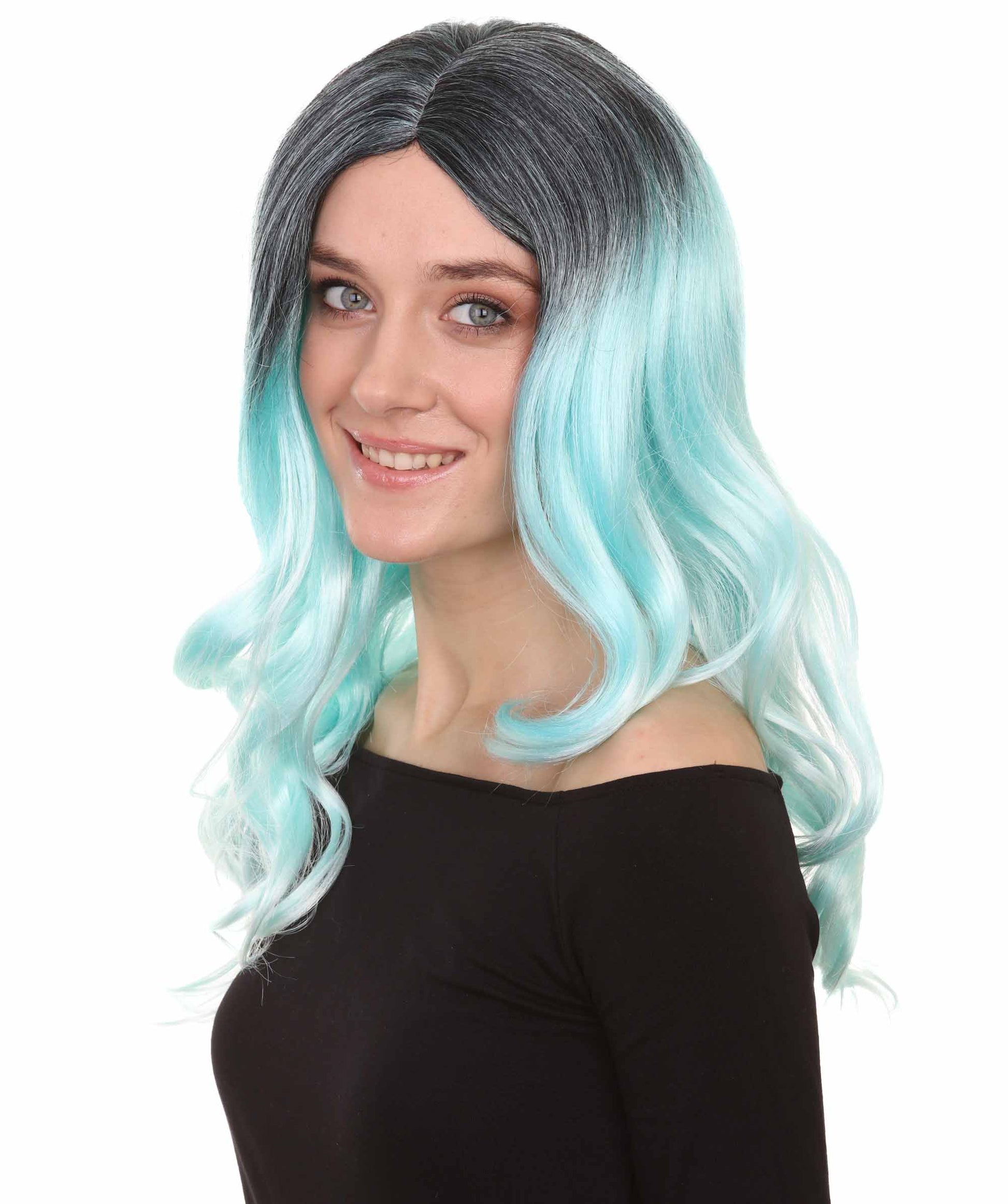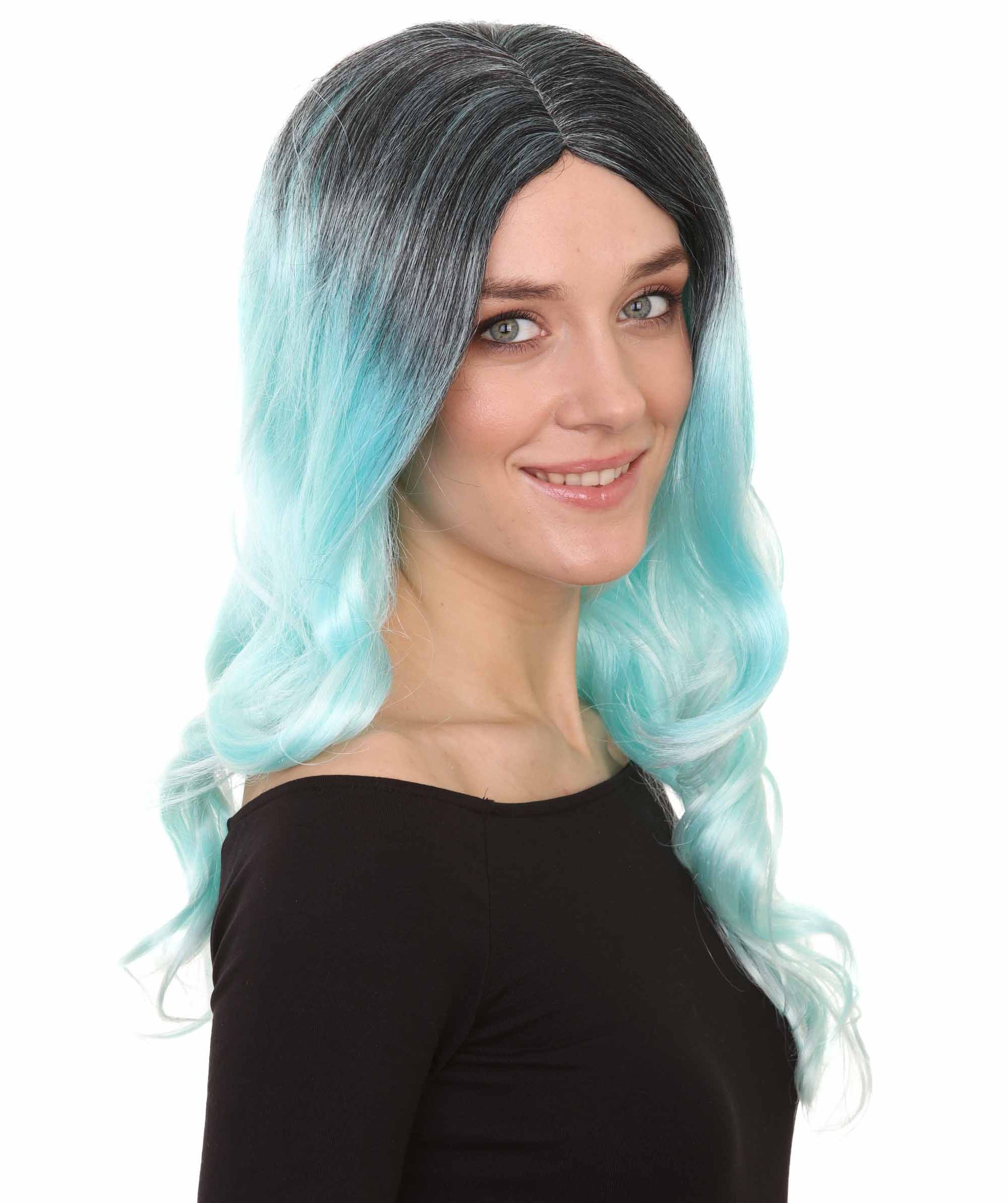 婦人用想像青かつら|長い波打った黒い空ハロウィンかつら|割増空気を通すCaplessなキャップH-421