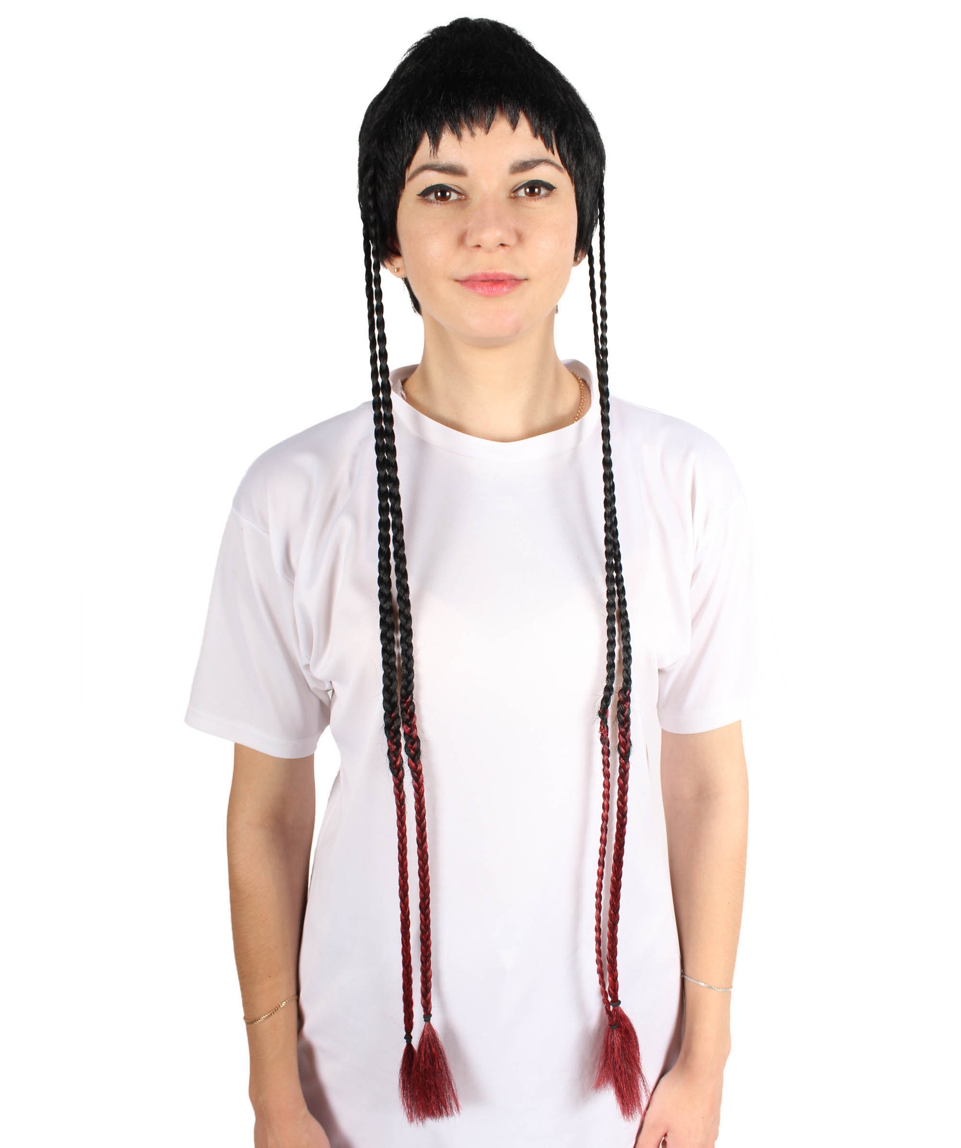 女性用H-5882 ロング ポニーテール ブラック&ワインレッド ドール ウィッグ ハロウィンに最適 難燃性合成ファイバー