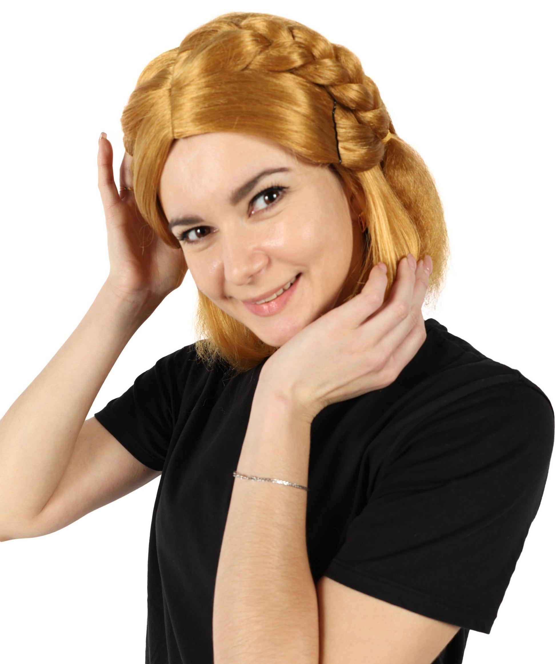 このボブ ウィッグは、有名なビデオ ゲームをベースにした有名なアニメ TV 番組の架空のキャラクターにインスパイアされています。架空のヒロインは美しい王女として知られており、悪魔に誘拐されます。