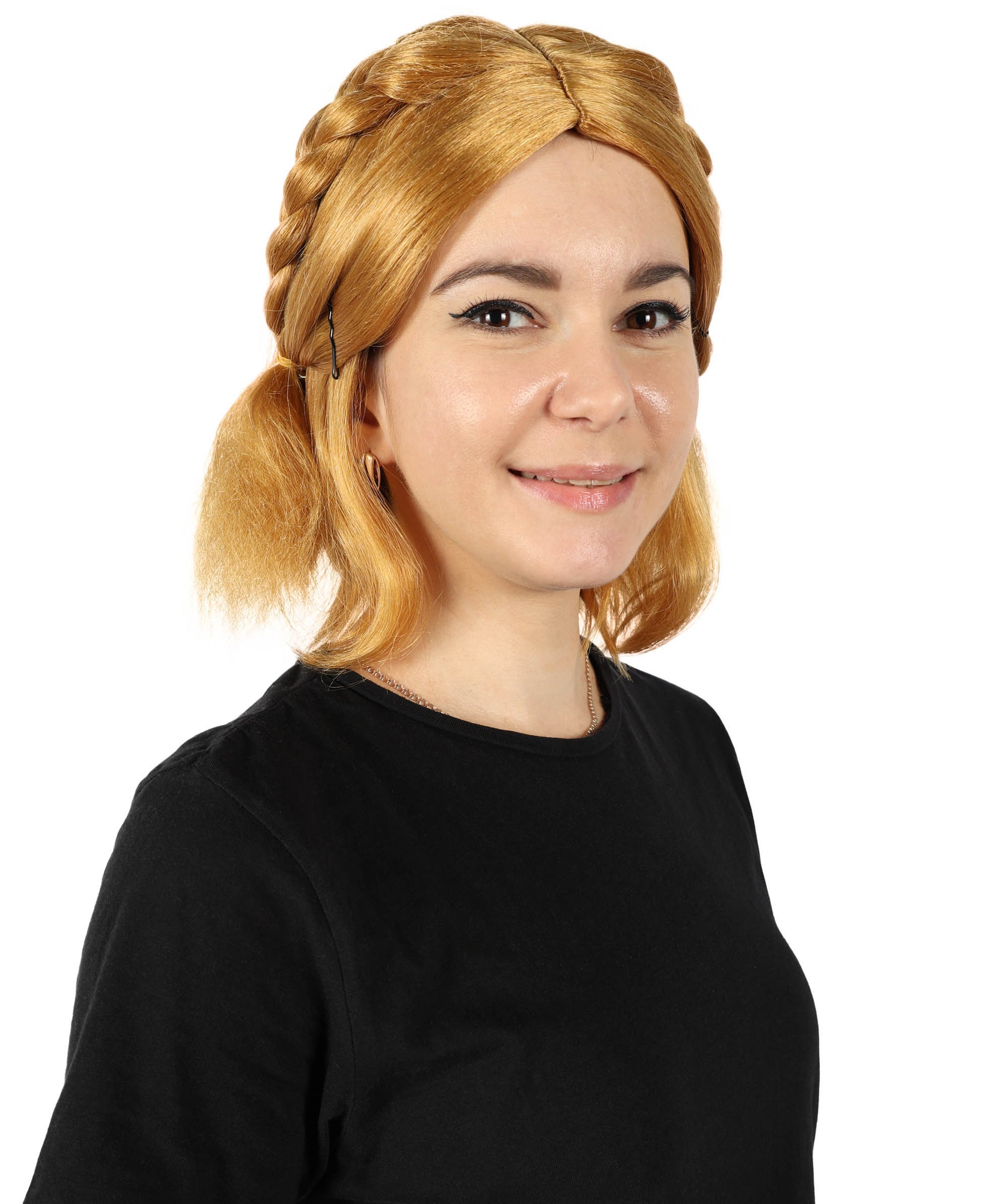 フロントに美しい編み込みヘアスタイルが施された、短いブロンドのボブ ウィッグです。当社のボブ ウィッグでドラマチックでエレガントなキャラクターを作るのは、全体的な衣装を引き立てるのでとても簡単です。