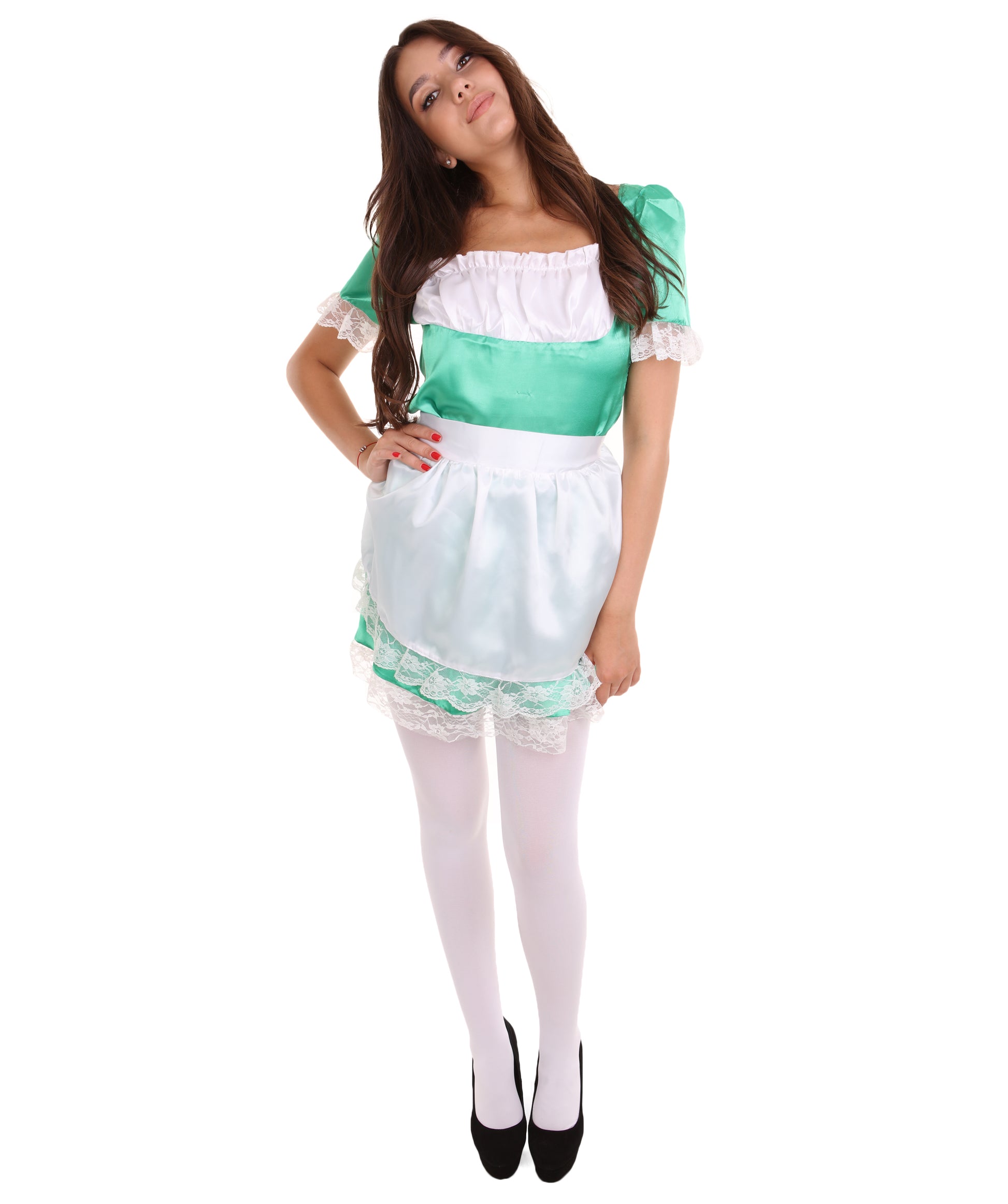 女性用 JCO-343_7 伝統的なメイド制服コスプレ グリーンコスチューム