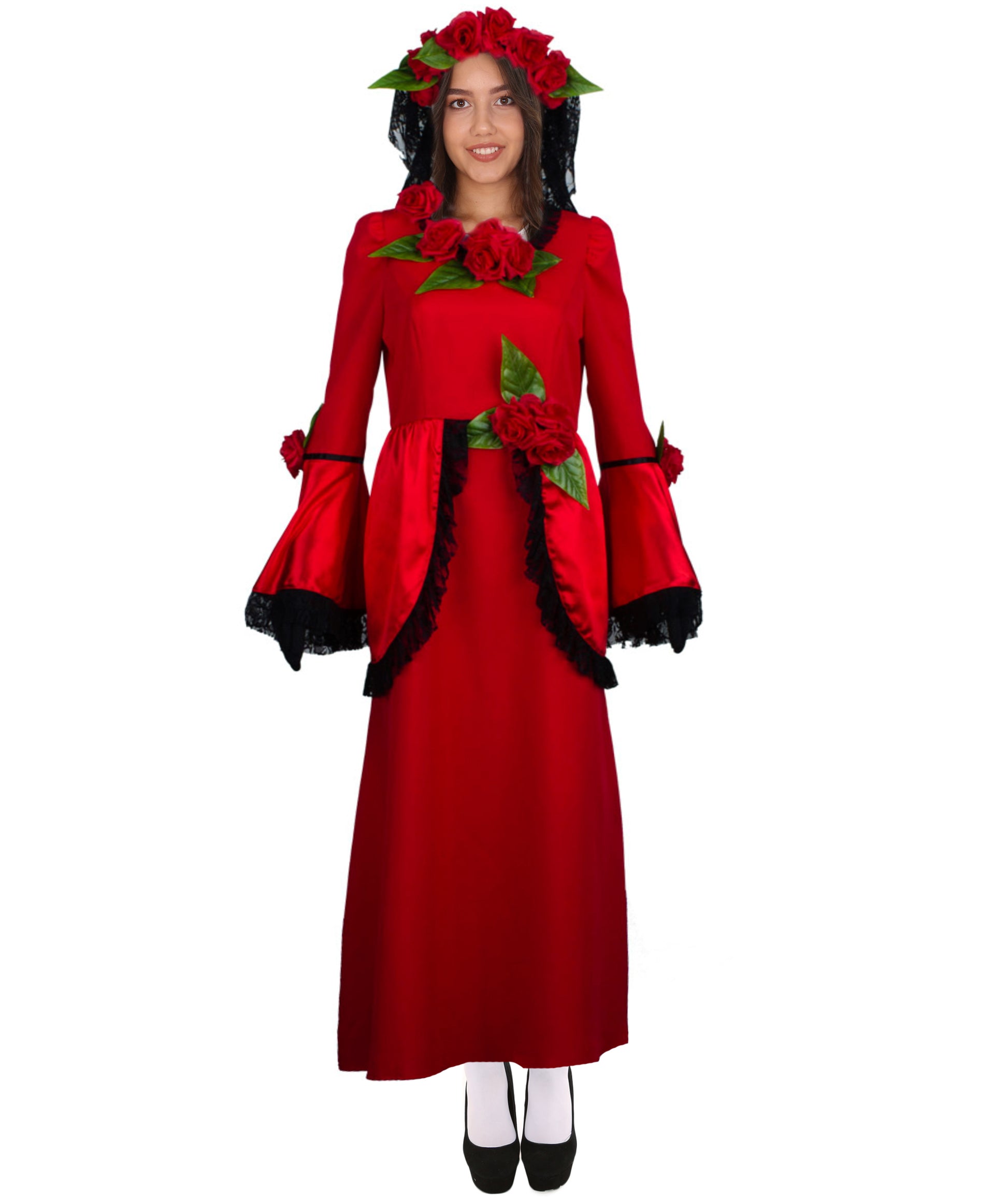 女性 JCP-104 のハロウィンコスプレアニメーションホラーセニョールブライドコスチューム 赤と黒の色、緑の葉付き