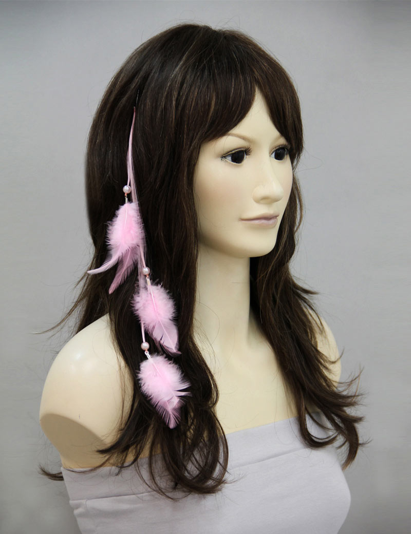 女性 W-1000 のおしゃれなベビーピンク フラフラフェザーキュートエクステンション ヘアアクセサリー 合成繊維