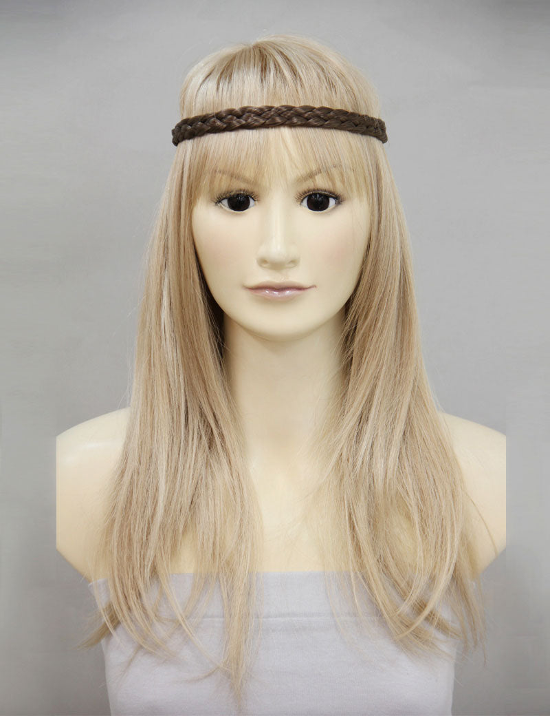 女性 W-8224A のおしゃれなアッシュブラウン 可愛いコンビネーション三つ編みヘッドバンド フラワーヘアアクセサリー 合成繊維