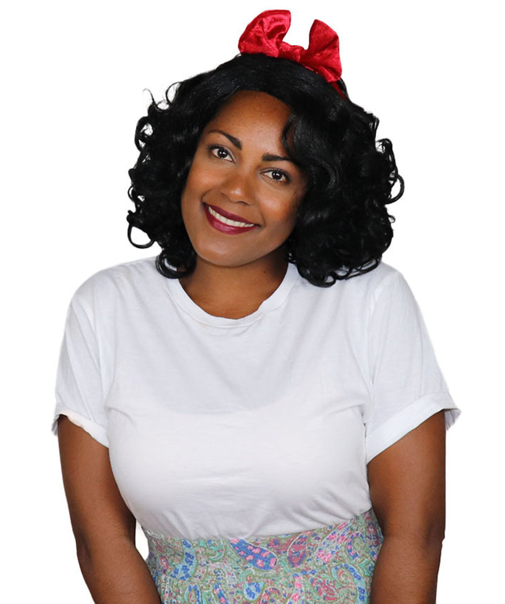 レック・イット・ラルフ2 プリンセス ブラックウィッグ 赤いリボン付き H-4688 TV/映画ウィッグ プレミアム通気性の良いキャップレスキャップ